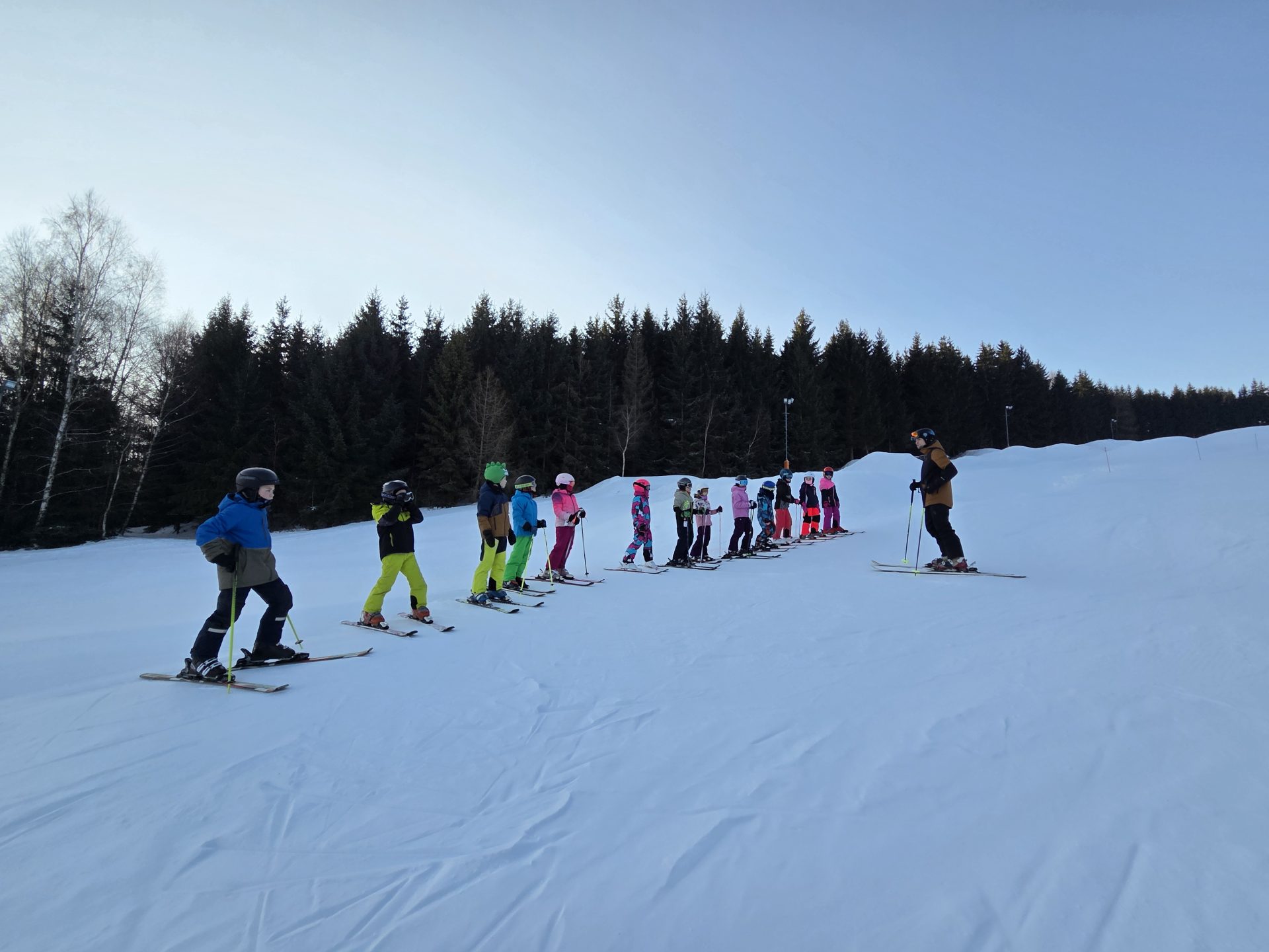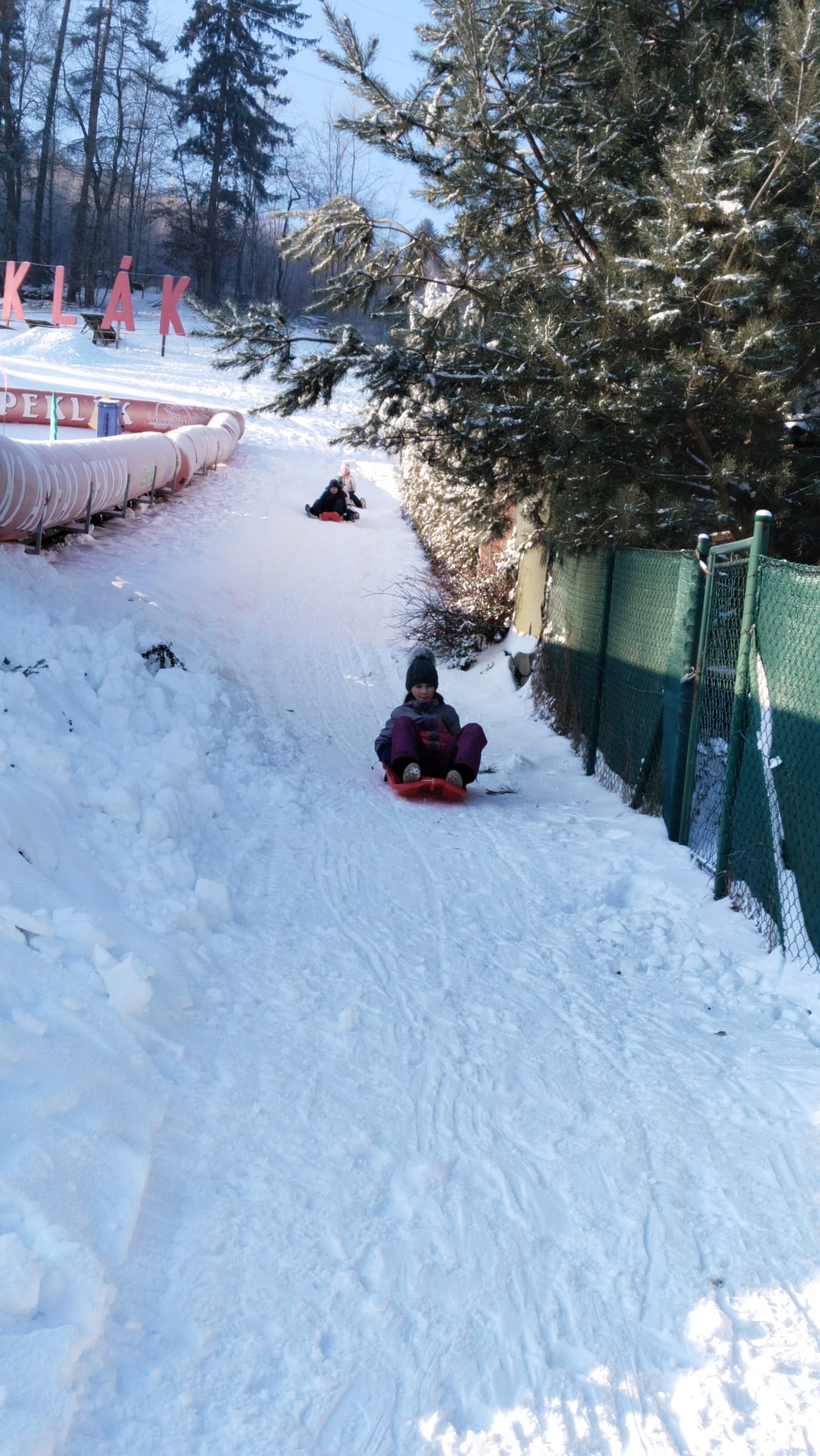 První lednový týden po vánočních prázdninách vyrazila 3. B na Peklák, kde byly ideální podmínky pro lyže i boby. Polovina žáků sjížděla kopec na lyžích a polovina žáků na bobech. Společnou přestávku jsme si udělali v bufetu, kde jsme se zahřáli čajem 🙂