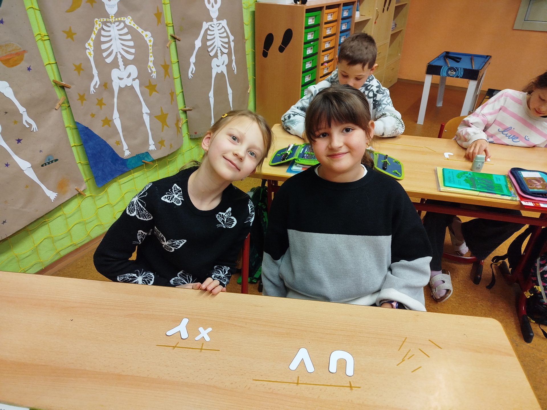 V předmětu Člověk a jeho svět objevujeme vše o lidském těle. Už víme, kde najdeme nejkratší a nejdelší kost, kolik kostí má kostra i spoustu dalších zajímavých informací. Ve skupinách s velkým nasazením skládáme lidskou kostru, kterou si pojmenujeme.