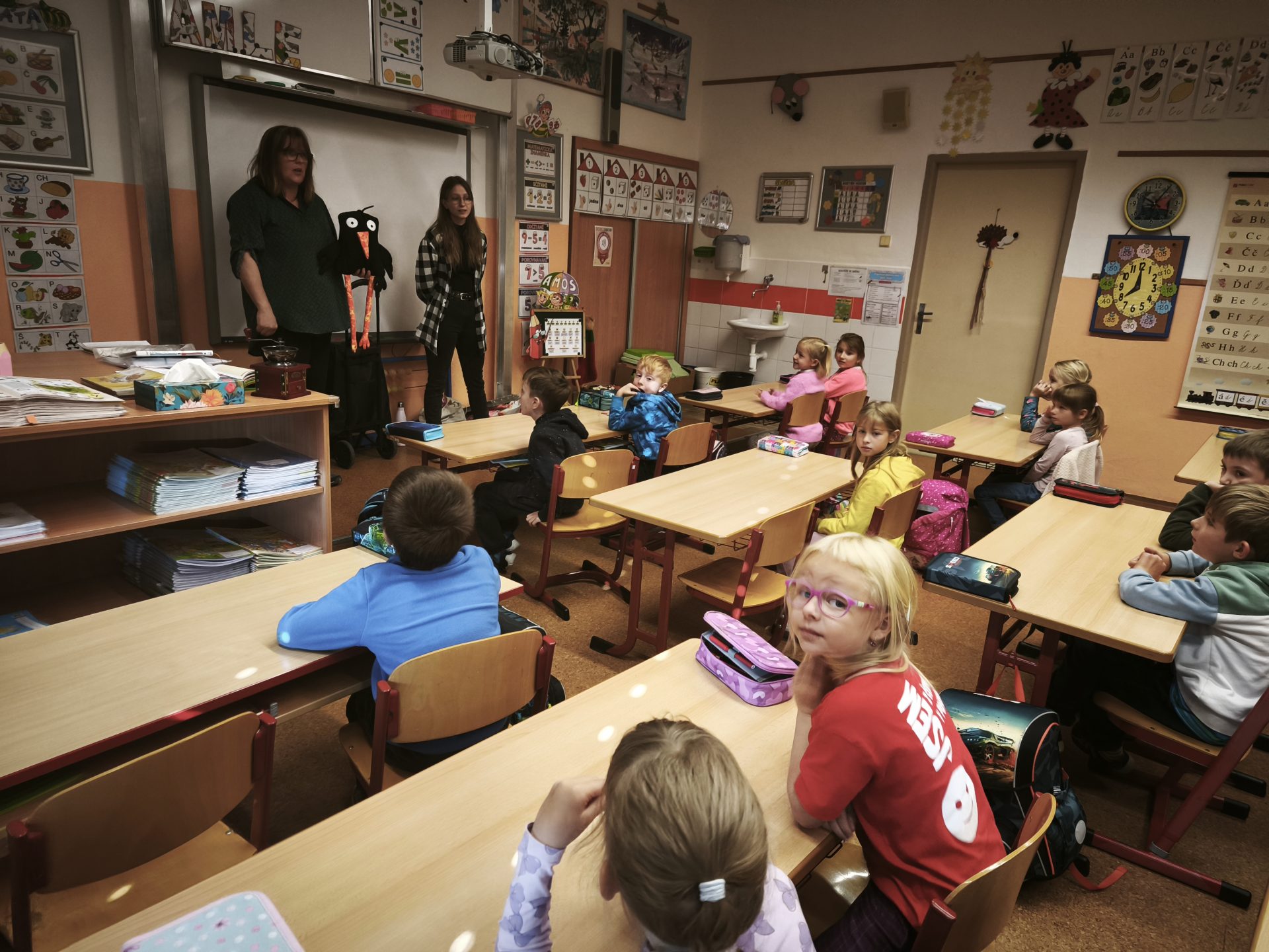 1. část – Návštěva knihovnic ve třídě – čtení, formou prožitku, o špačkovi knihomolovi, který neuměl létat, ale naučil se číst (Berne, J.: Kamil neumí lítat).