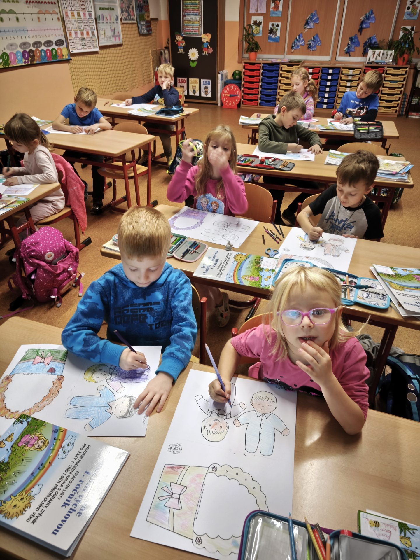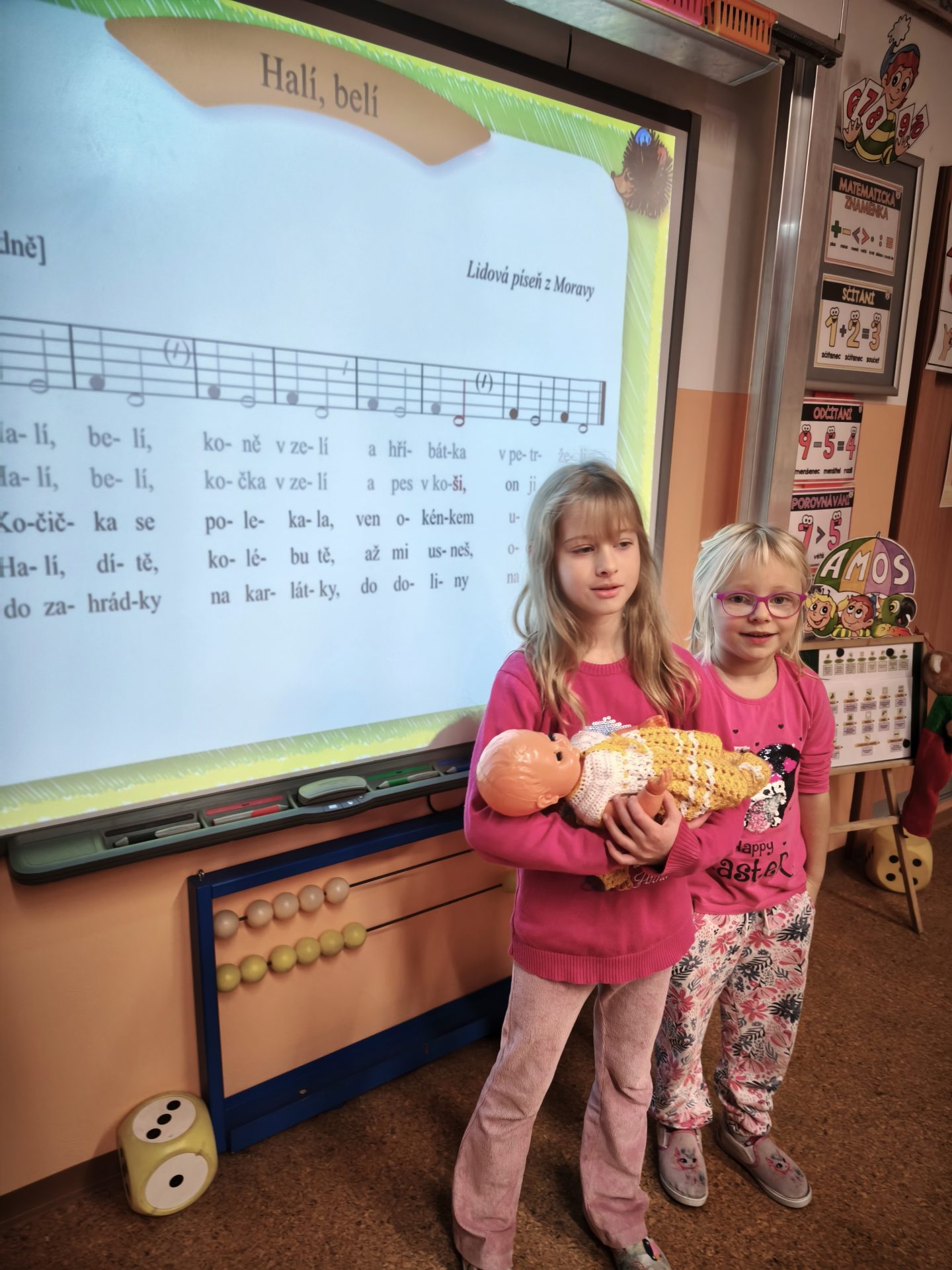 V listopadu jsme se v předmětu Člověk a jeho svět učili o rodině. Součástí bylo také téma – Starost rodiny o miminko. Využili jsme tedy mezipředmětové vztahy s hudební výchovou a vysvětlili si pojem ukolébavka. Jednu ukolébavku jsme se naučili a zazpívali ji našemu miminku (Aničce) ve třídě. Následovala výroba vlastního miminka a uložení do zavinovačky.