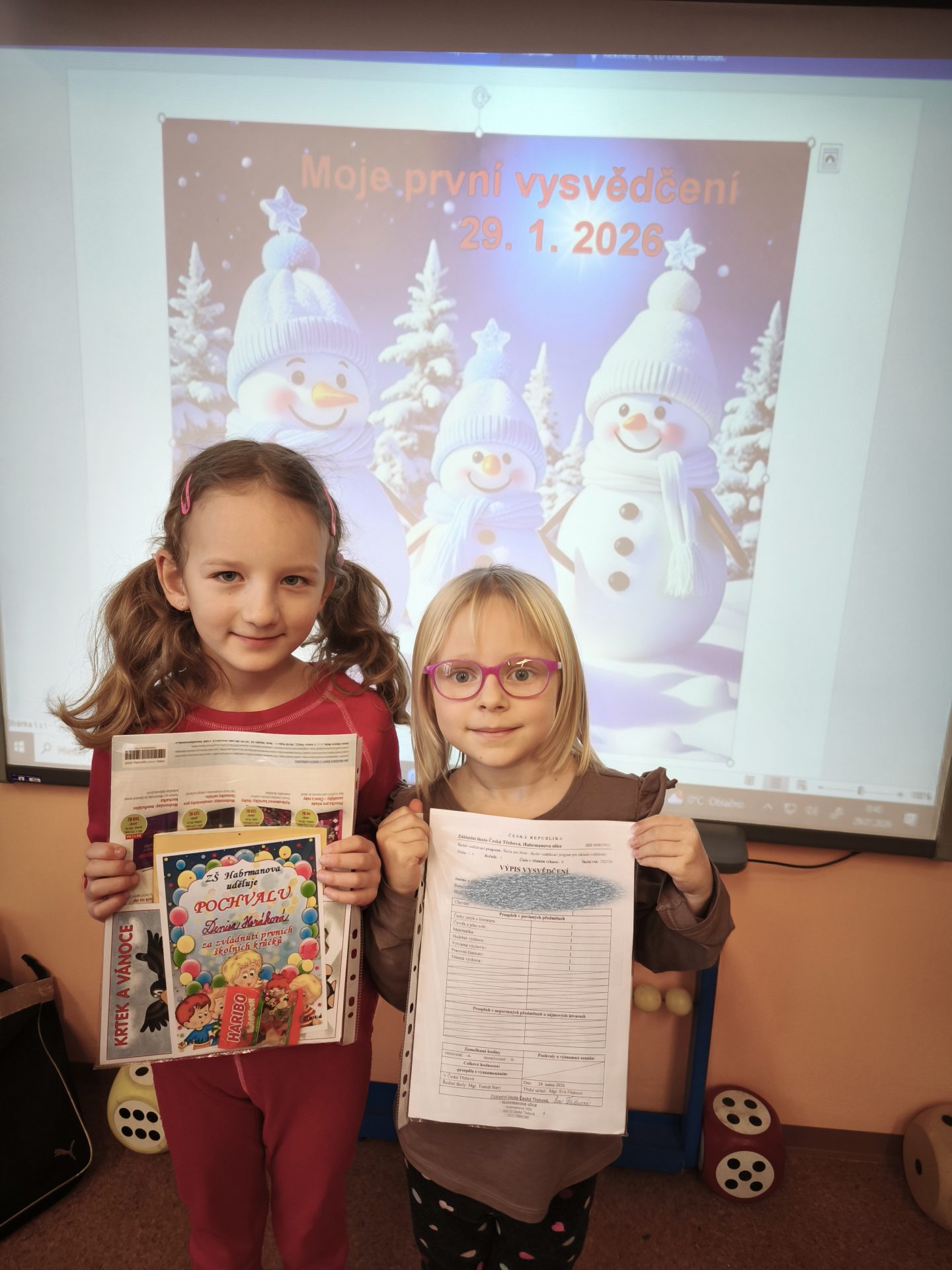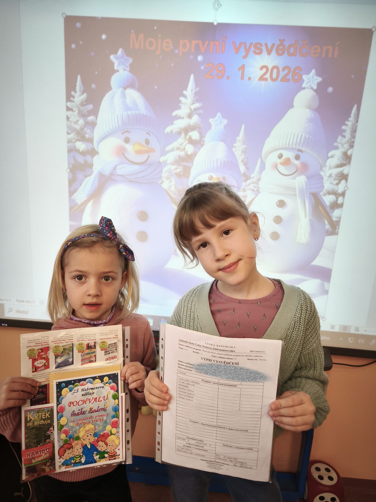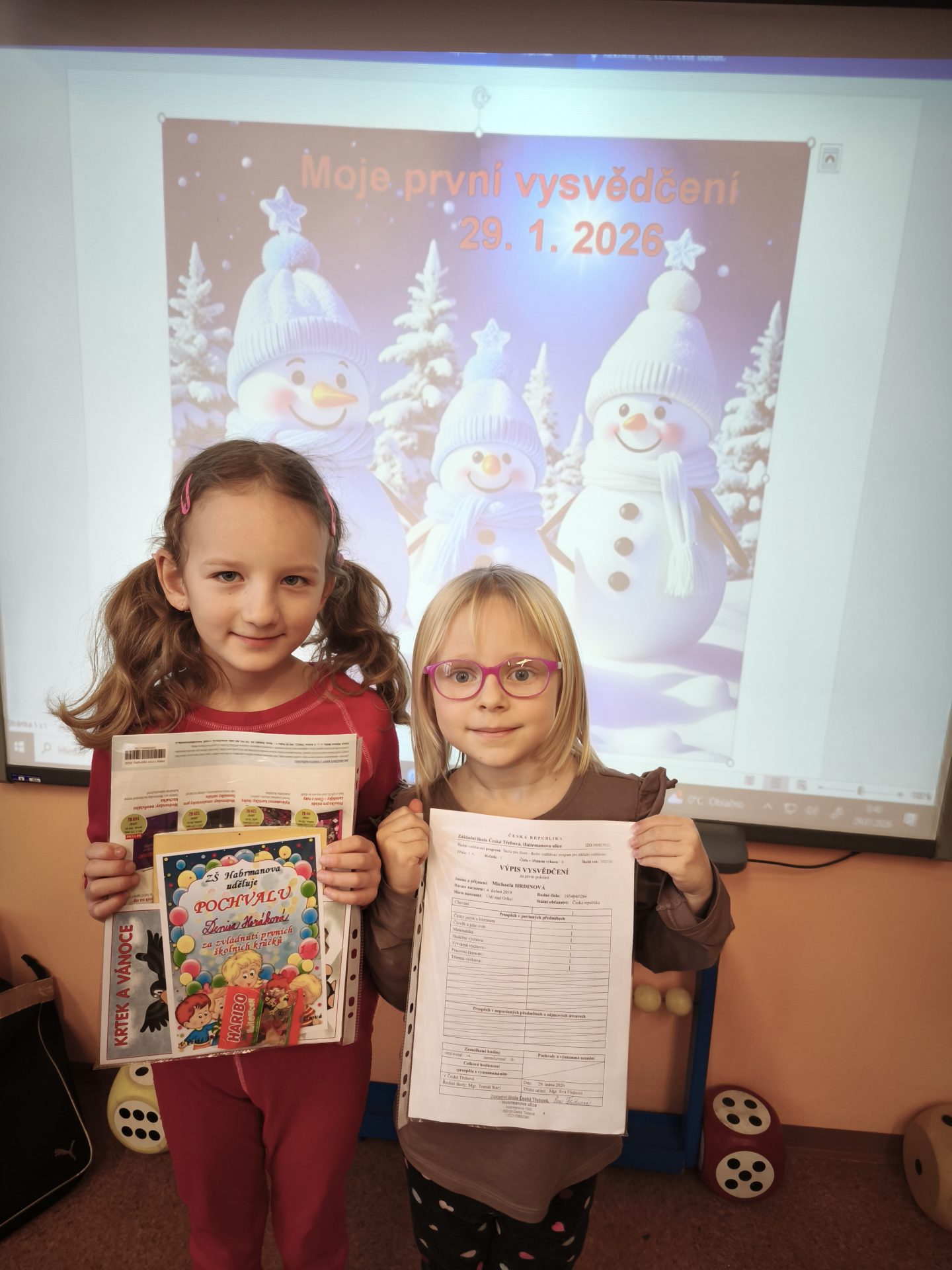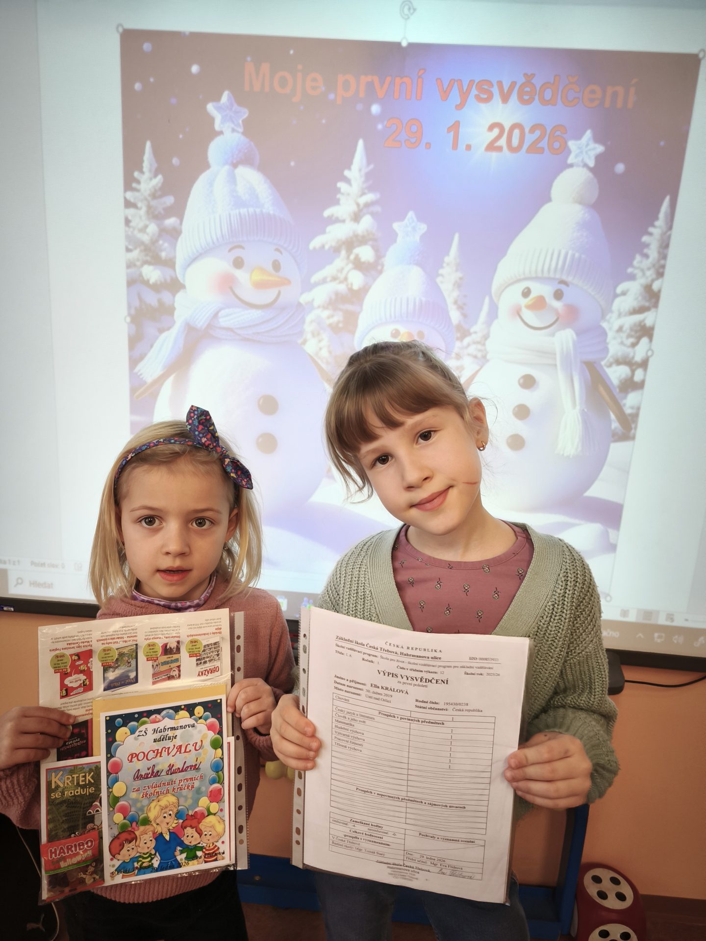 Celá třída 1. A  se moc těšila na čtvrtek 29. 1.  Přišla dlouho očekávaná a nejdůležitější chvíle  – slavnostní předání prvního vysvědčení. Všem prvňáčkům gratulujeme k zvládnutí prvních školních krůčků a do druhého pololetí přejeme mnoho dalších úspěchů! Eva Flídrová a Ivana Ondráčková