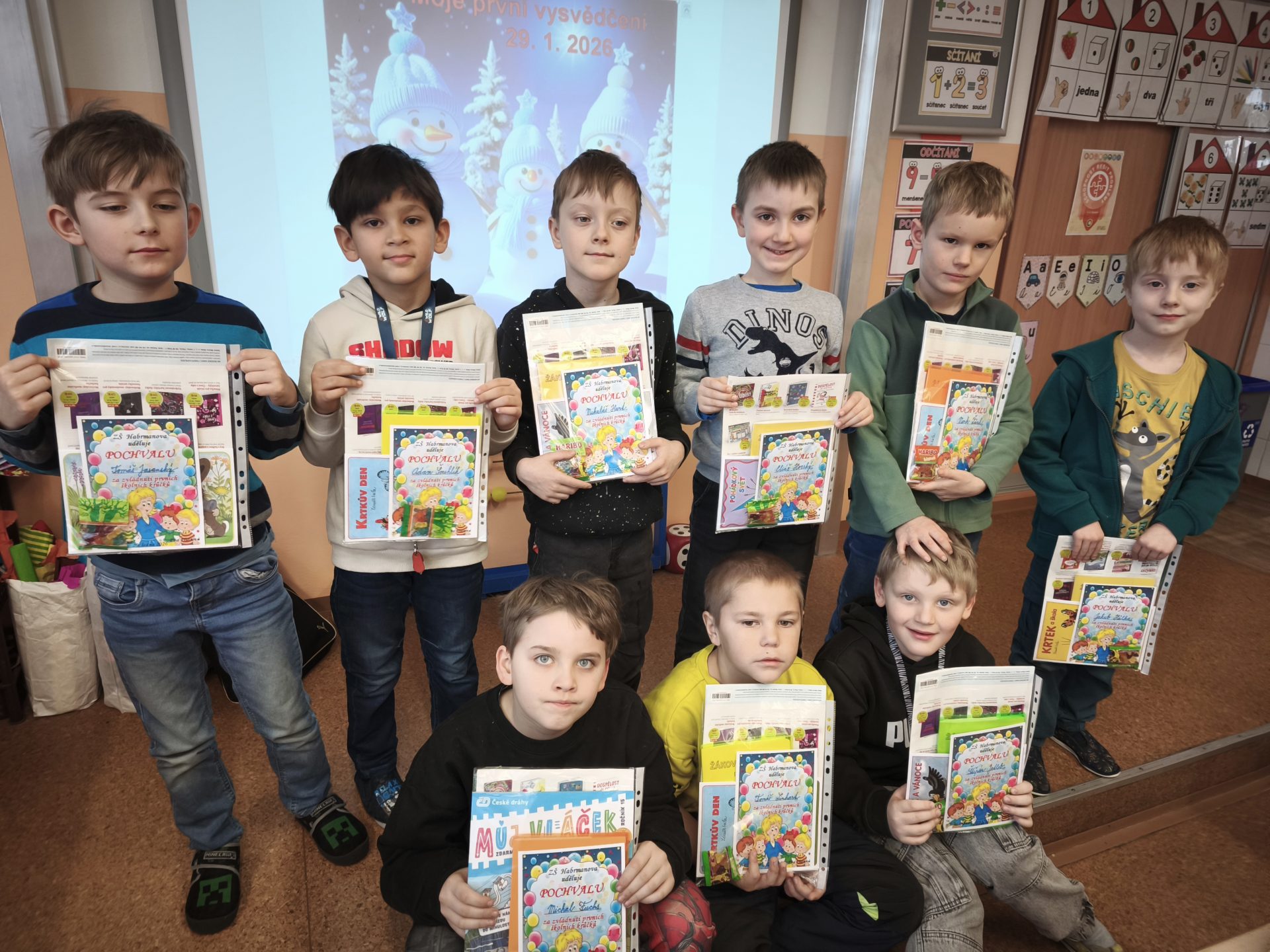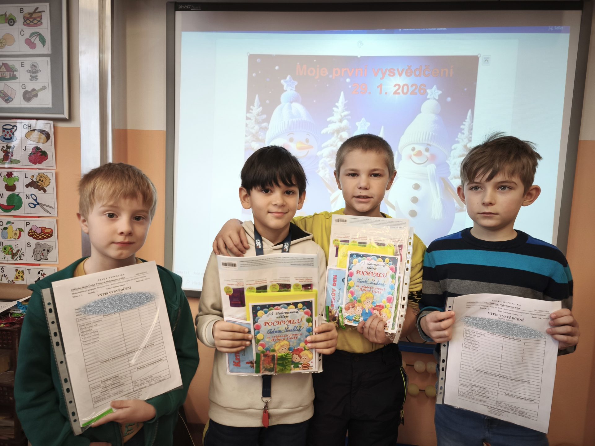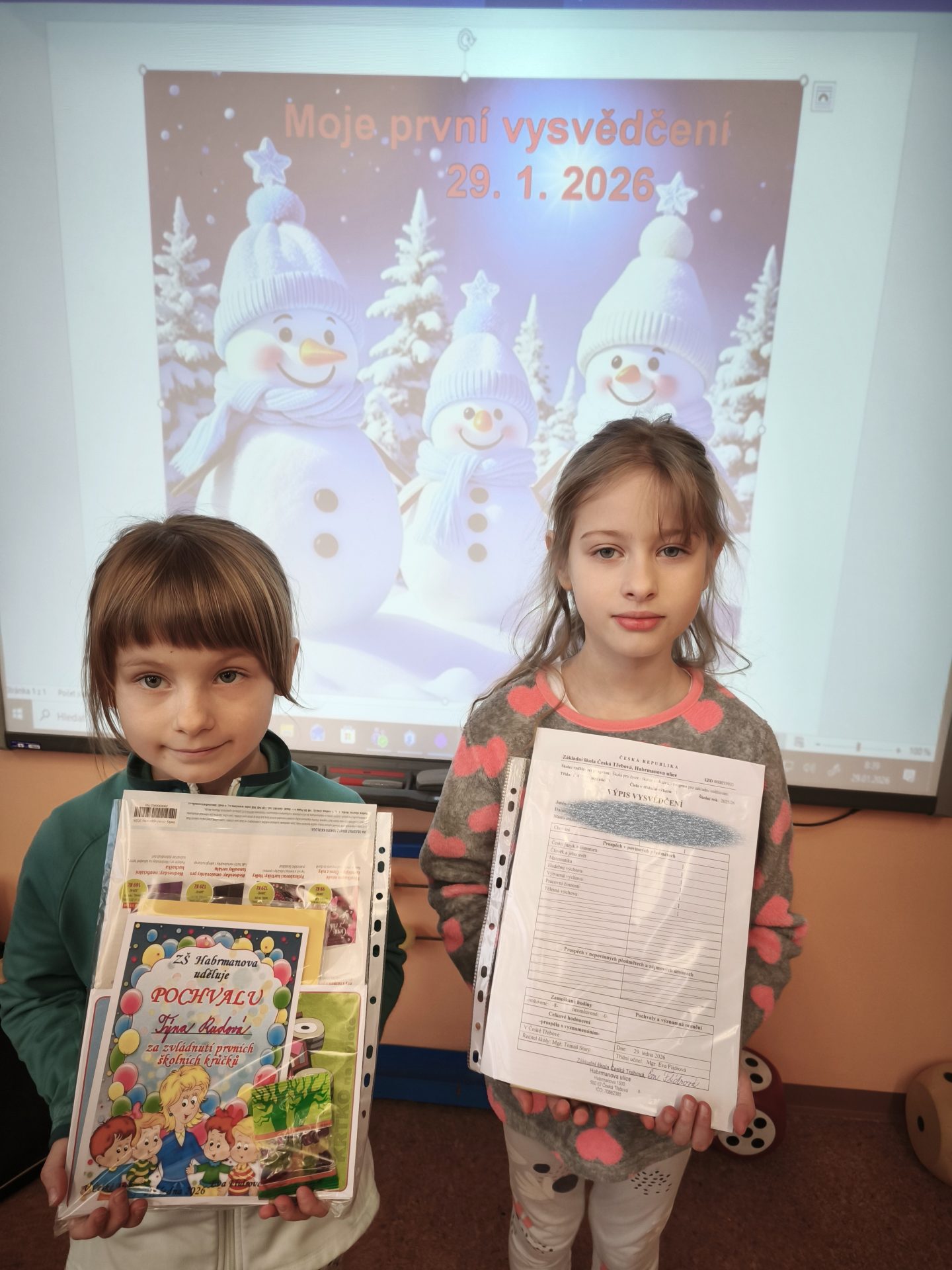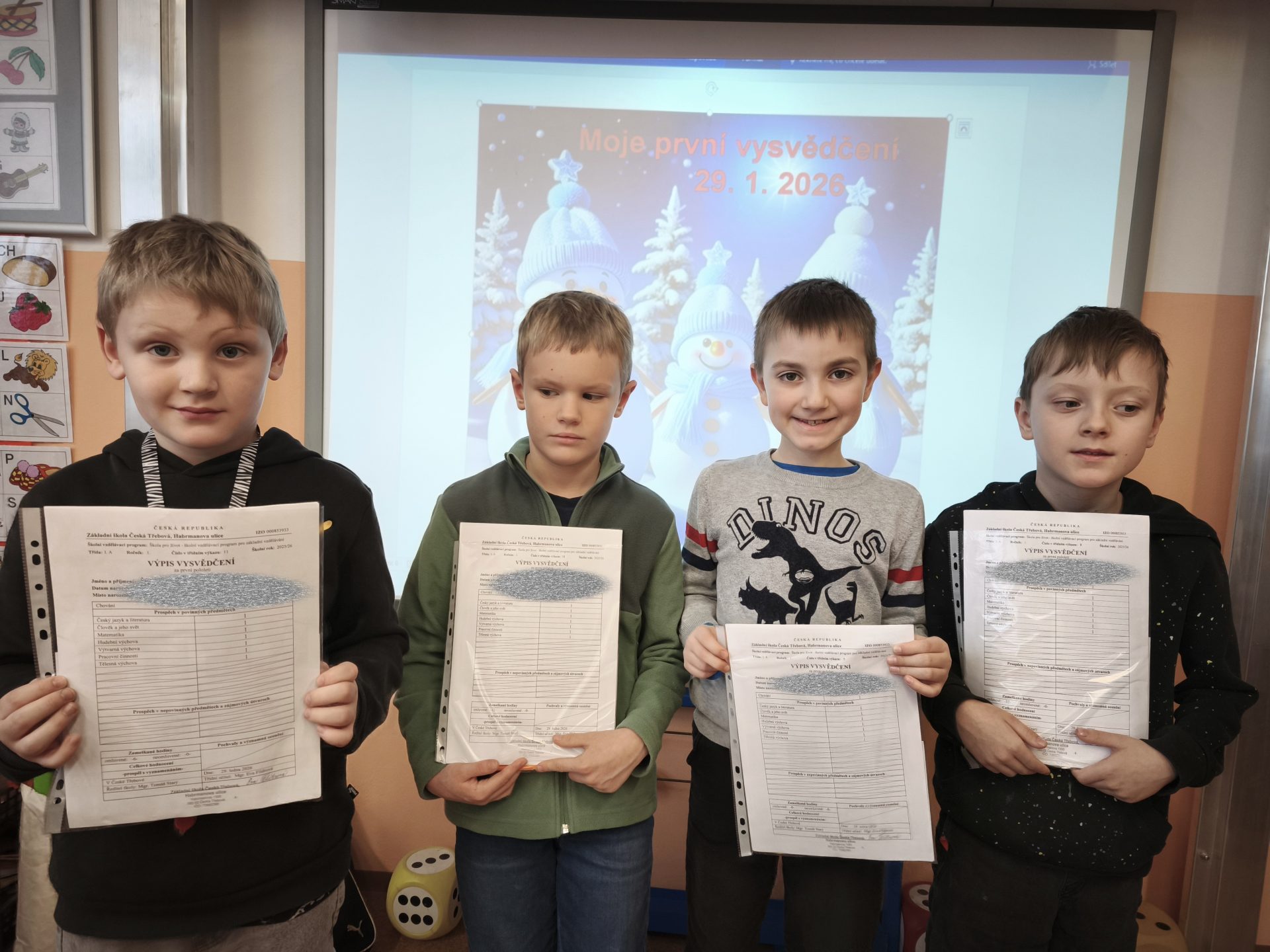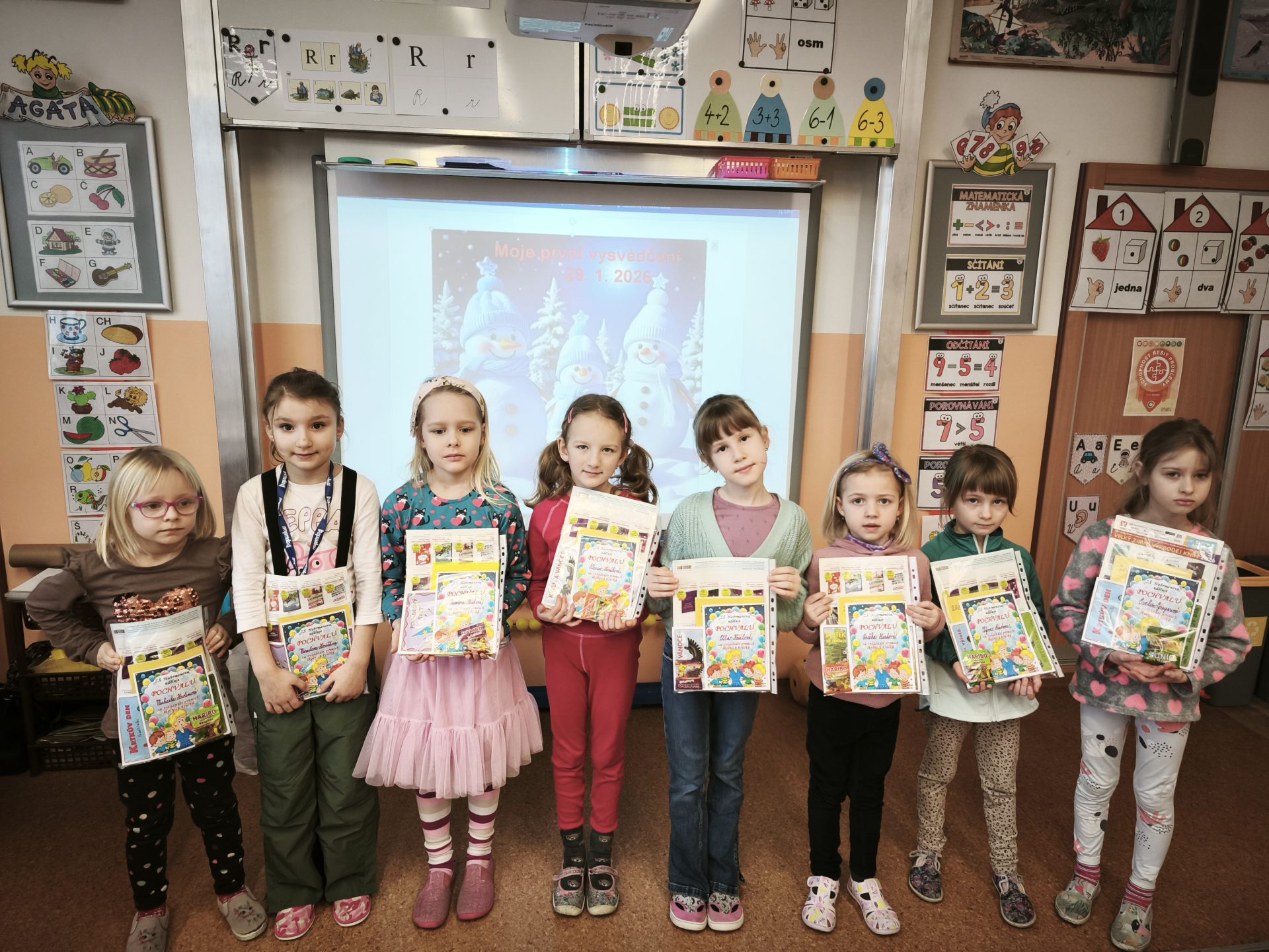 Celá třída 1. A  se moc těšila na čtvrtek 29. 1.  Přišla dlouho očekávaná a nejdůležitější chvíle  – slavnostní předání prvního vysvědčení. Všem prvňáčkům gratulujeme k zvládnutí prvních školních krůčků a do druhého pololetí přejeme mnoho dalších úspěchů! Eva Flídrová a Ivana Ondráčková