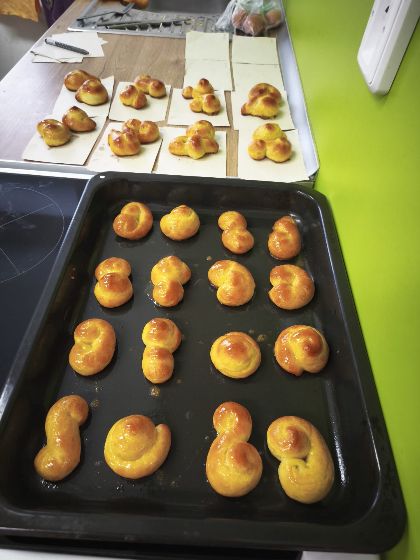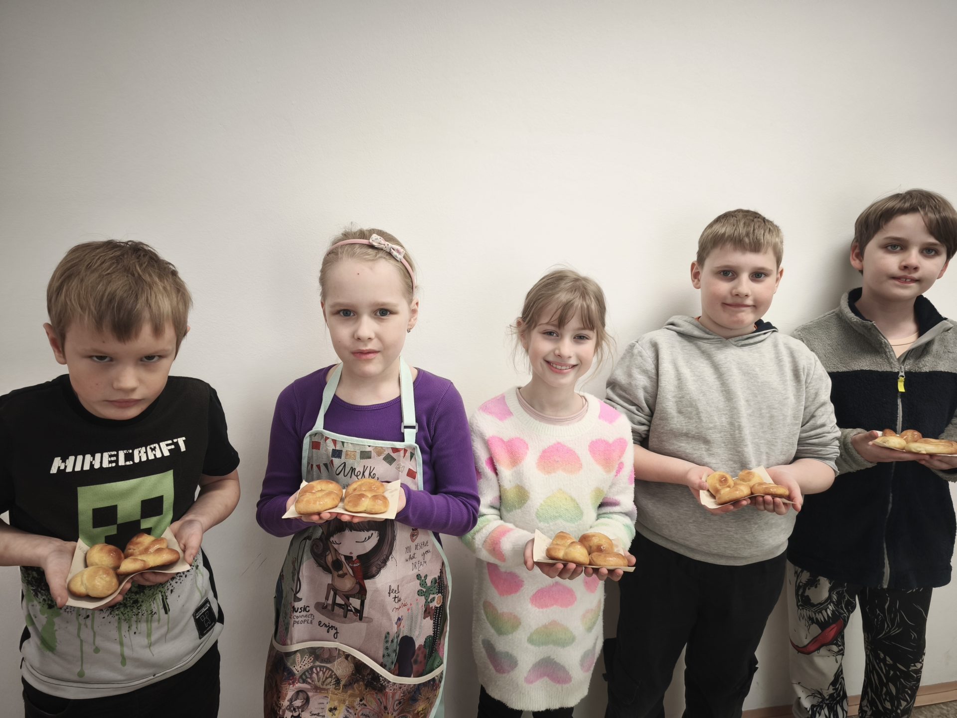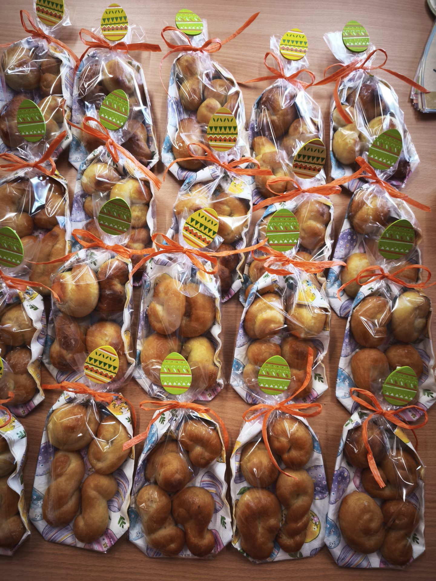 Na Zelený čtvrtek je zvykem podávat takzvané jidáše, což je sladké pečivo symbolizující provaz, na kterém se oběsil zrádce Jidáš. A tak jsme si je ve škole společně upekli. Moc nás to bavilo!!!