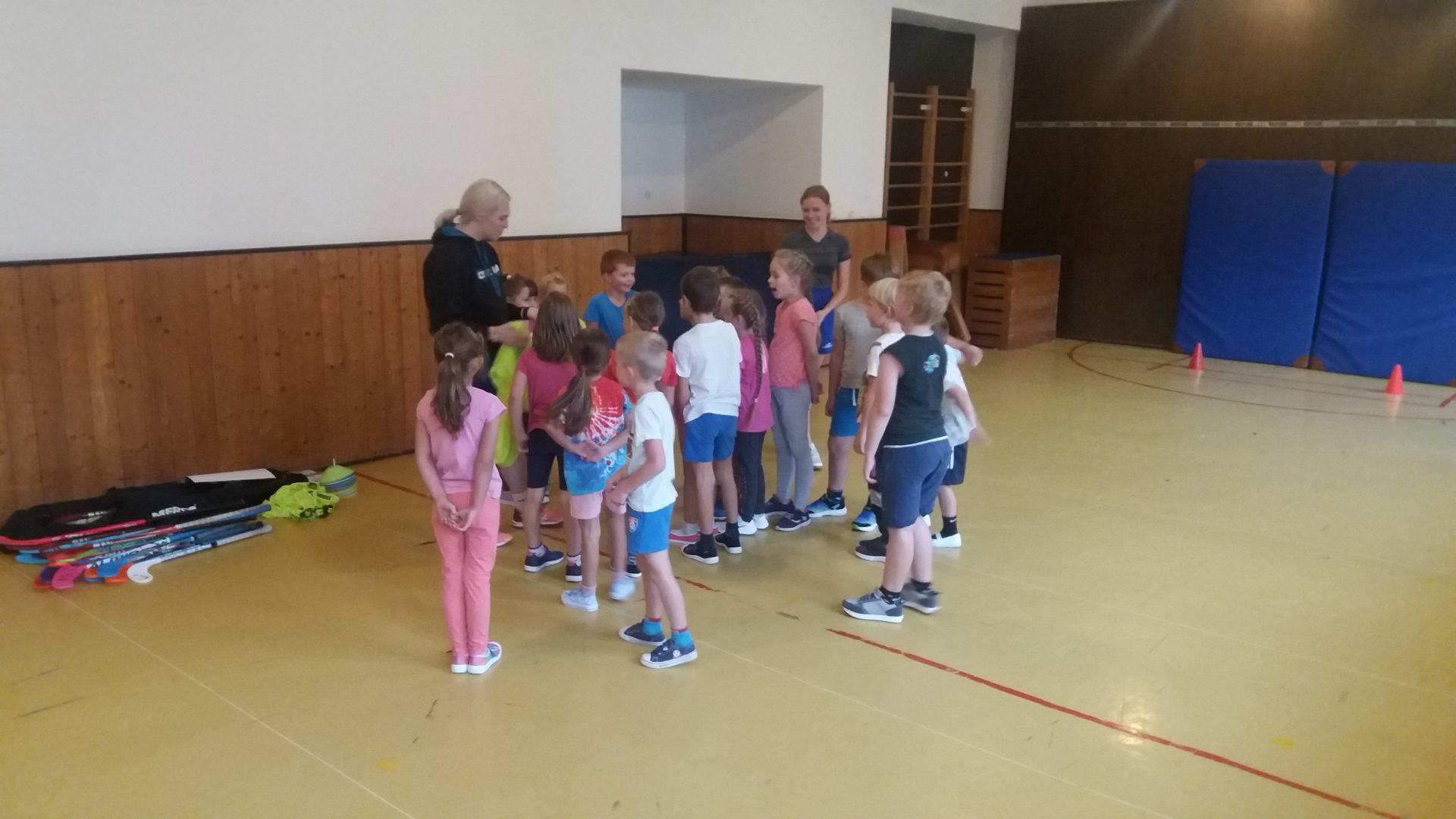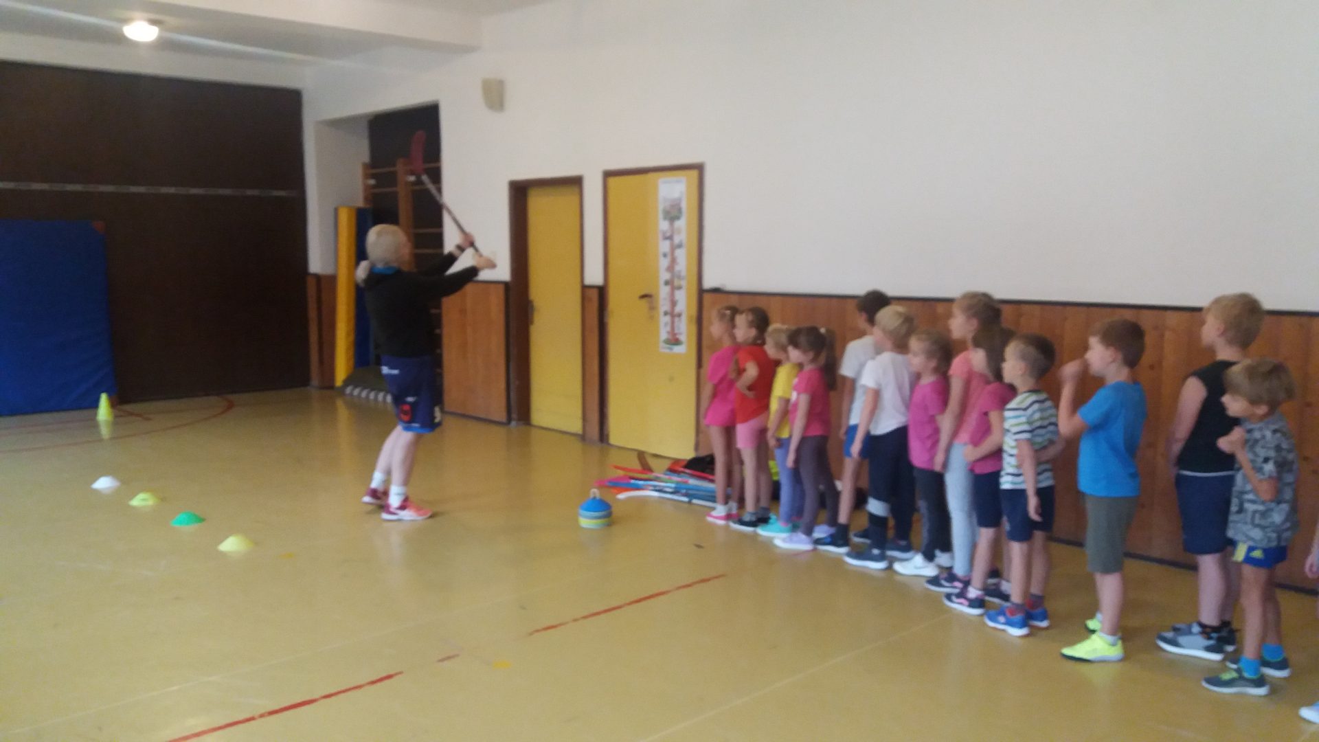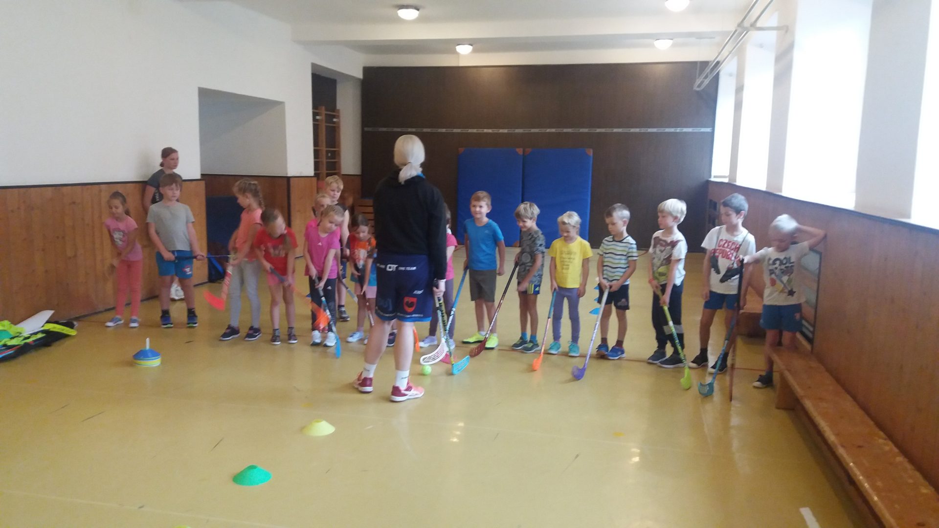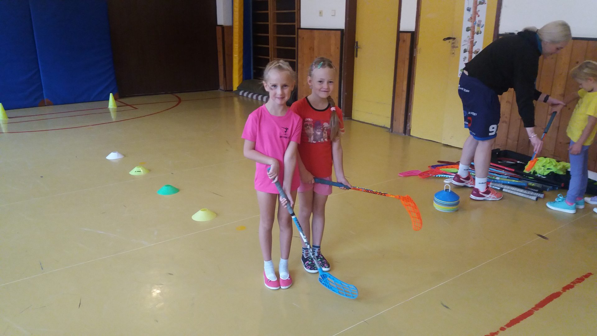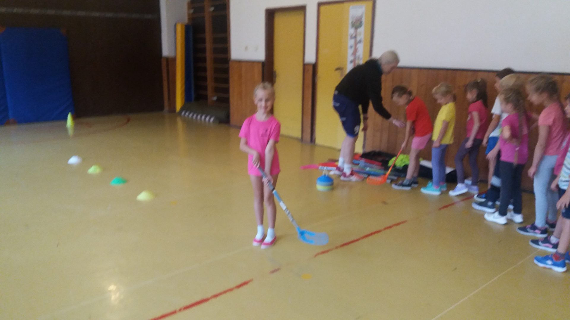 zdravíme Vás sportovně. Do naší tělocvičny za námi přišly slečny z florbalového oddílu, aby nám ukázaly, jak se tento sport hraje. Vyzkoušeli jsme si střílení na bránu s hokejkou. Někteří z nás jsme byli moc šikovní.