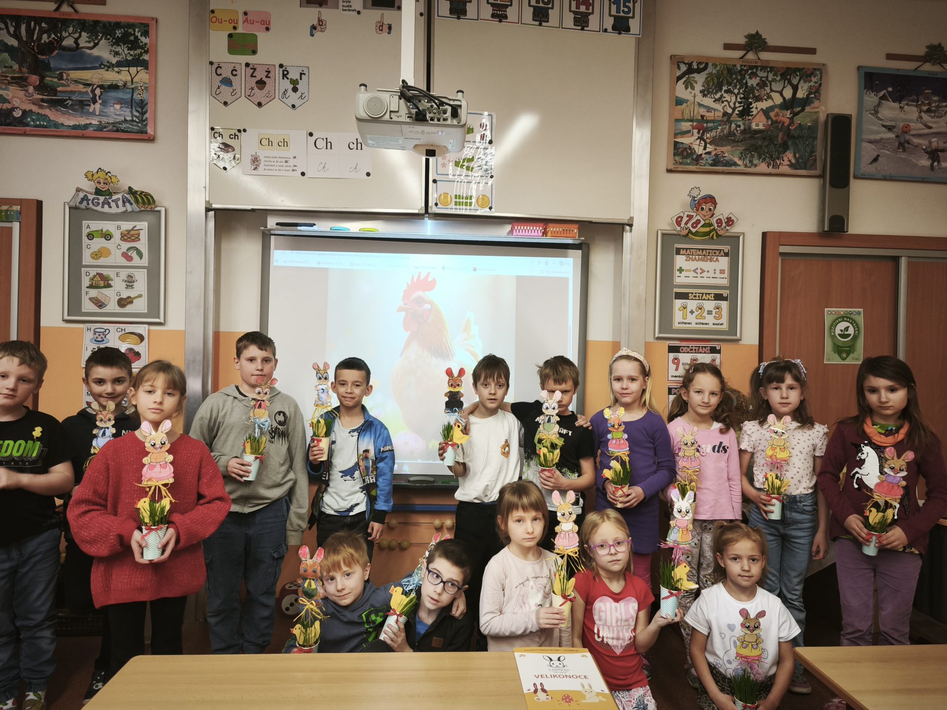 Ve škole jsme si vyrobili několik velikonočních dekorací – osení se zajíčkem a kuřátkem, malovaná vajíčka, slepičku a přáníčko. Krásné Velikonoce!!!