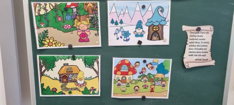 Je květen. Venku ale často prší a je zima. V 1. B vědí proč tomu tak je. Ráno je čekal ve třídě vzkaz od skřítka Zimníka. Ten unesl Jarní vílu a ukryl ji neznámo kam. Naši prvňáčci spojili své síly, vílu vypatráli a ještě před koncem poslední hodiny se mraky rozplynuly a ukázalo se nám  zase sluníčko.