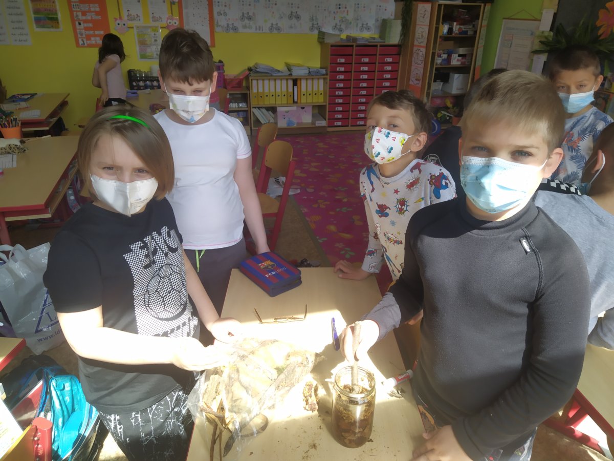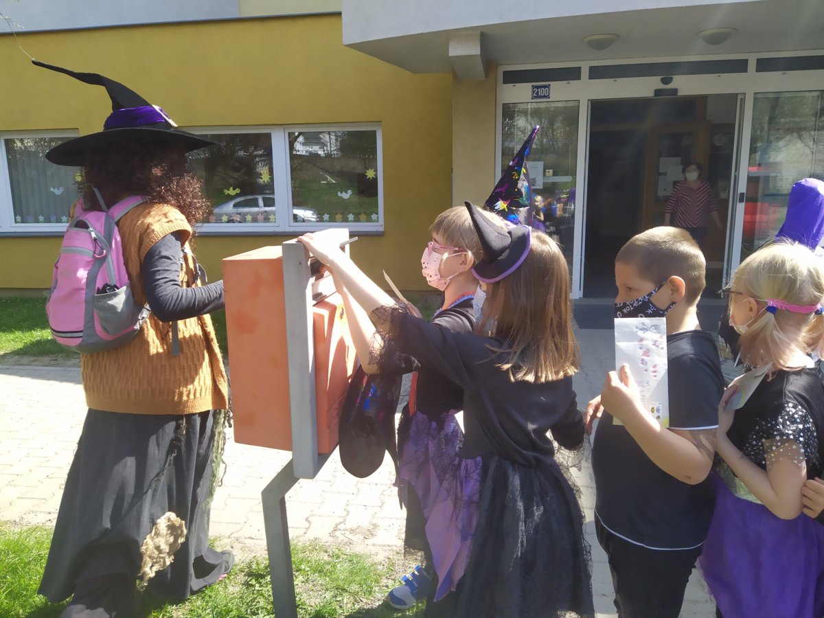 30. duben – neobyčejný školní den. Den plný jarního kouzlení, dobré nálady, plnění netradičních úkolů. Lentilkové kouzlo ve třídě a pak hned sluncem zalitou školní zahradu. Poznáváme jarní květiny, pozorujeme pupeny na keřích a stromech, společnost nám dělají kosi, pěnkavy, sýkorky a kavky. Hrajeme hry a sbíráme suroviny na výrobu kouzelných lektvarů. Lektvary Lásky, Moudrosti, Zdraví, Kamarádství – tak ty jsme společně uvařili. A protože se blíží svátek našich maminek, napsali jsem jim kouzelná psaníčka. Jsme velcí šikulové – dokázali jsme nadepsat obálky, nalepit známky, najít poštovní schránku. A teď už dopisy míří k našim maminkám.