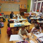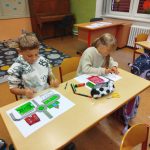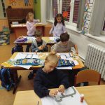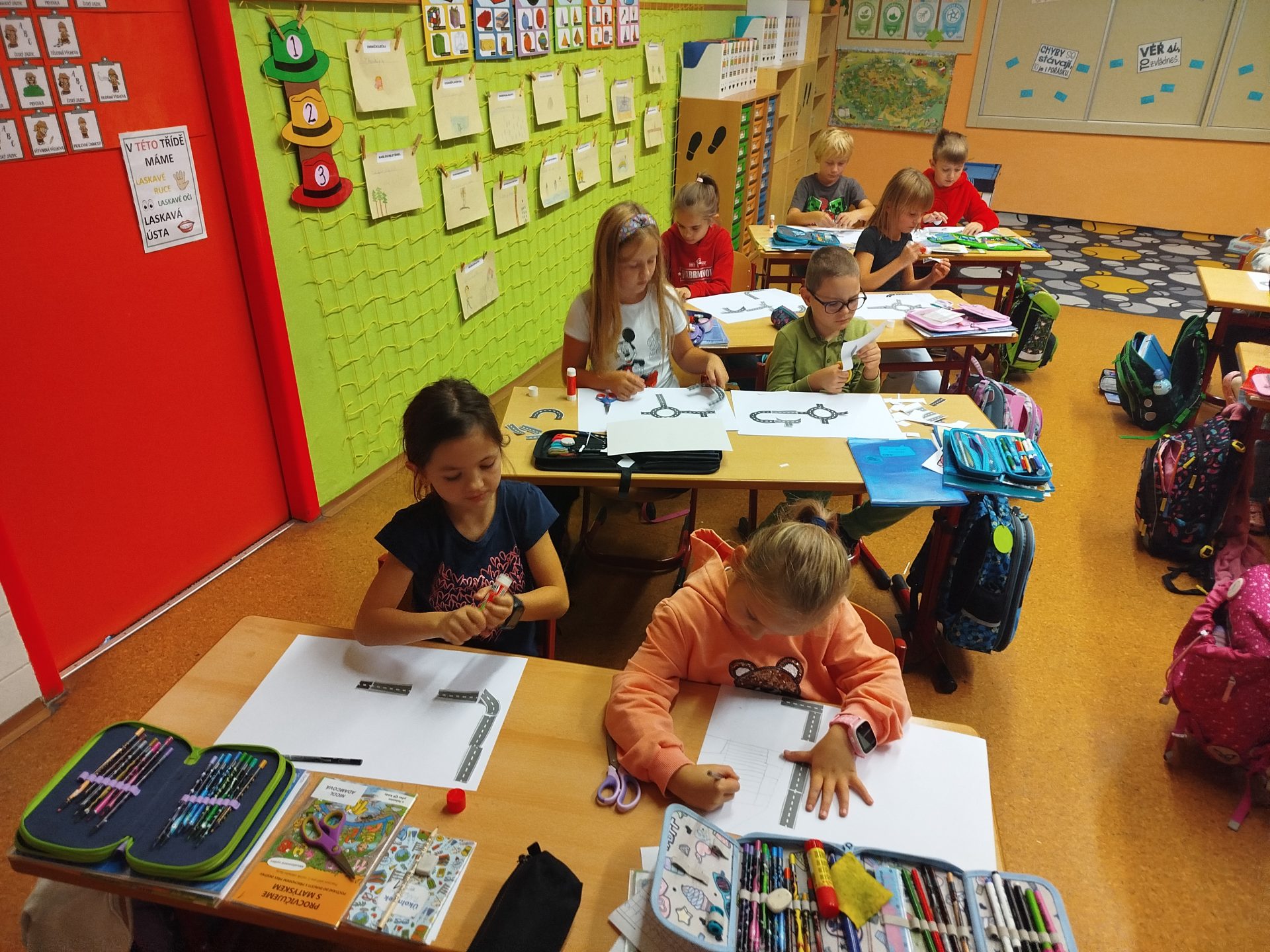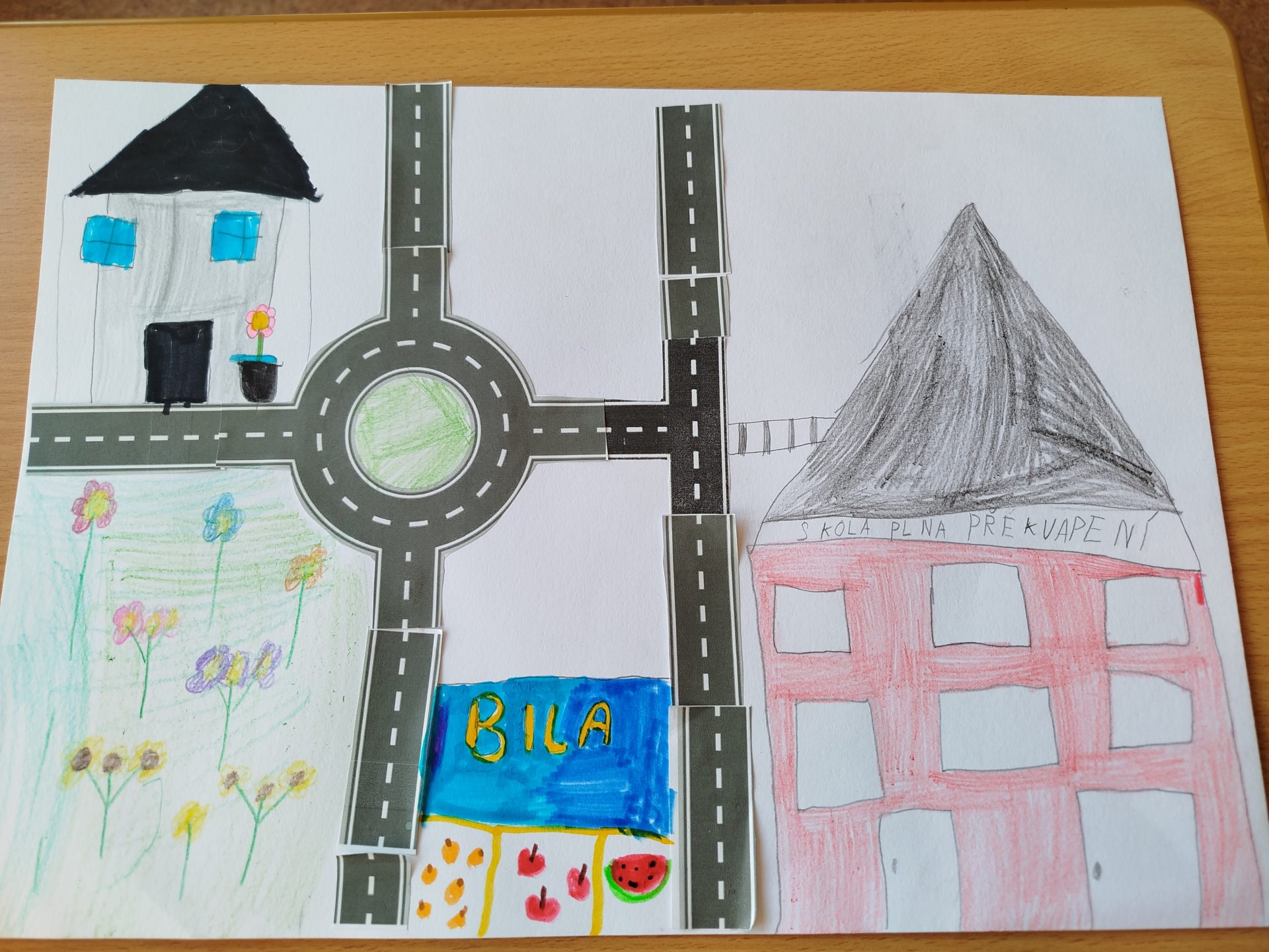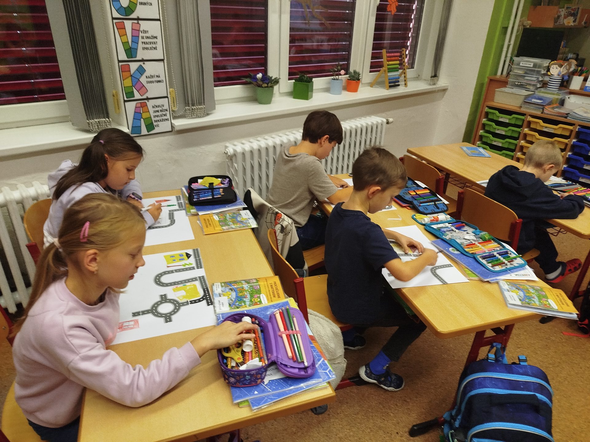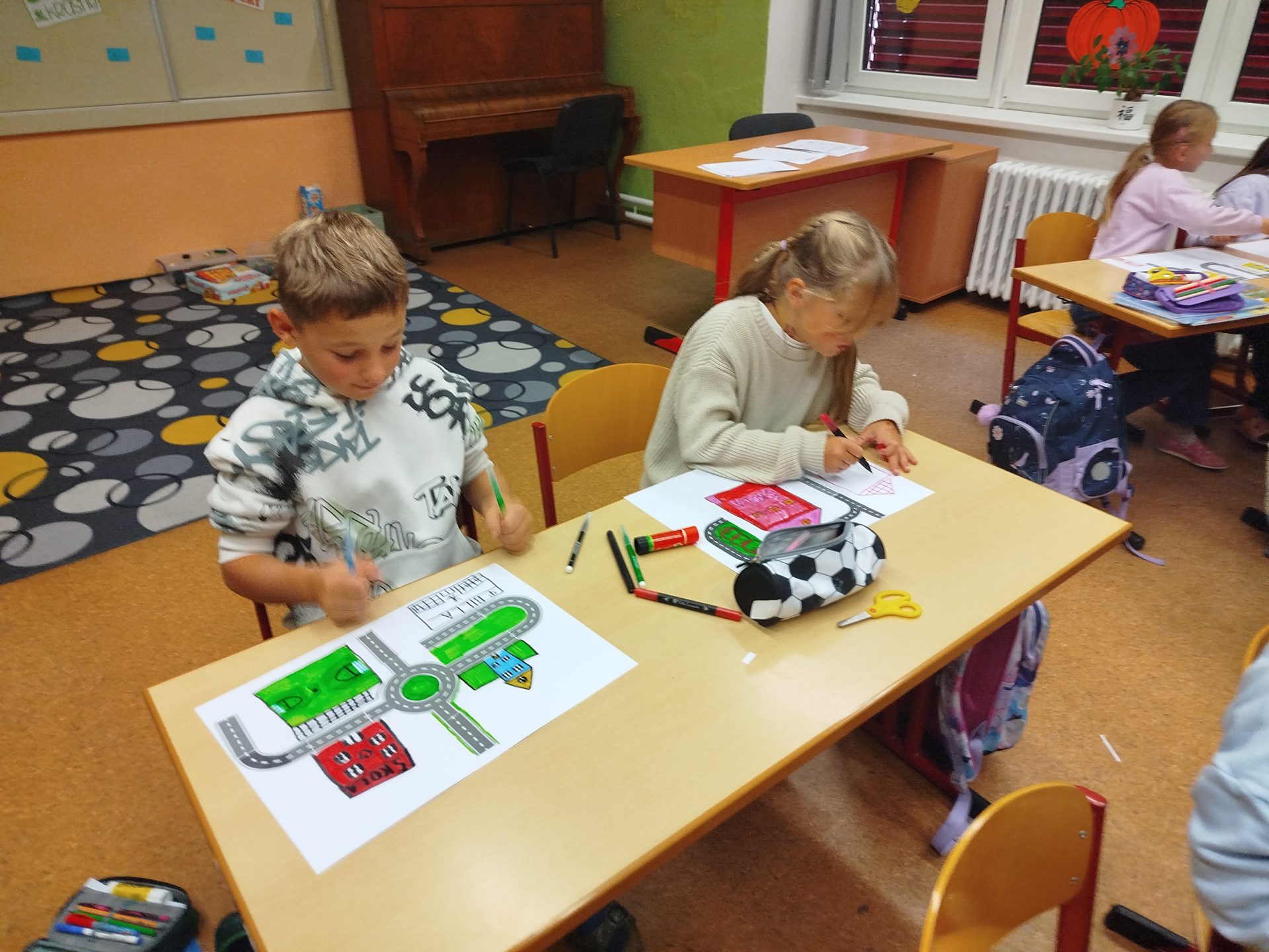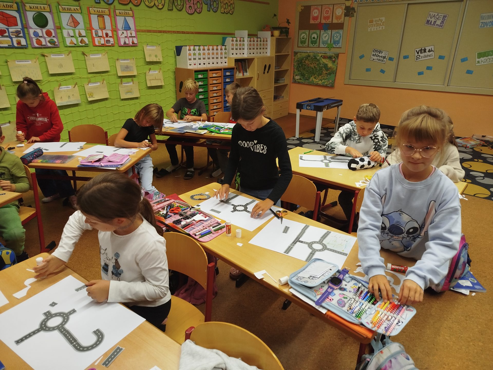 V předmětu Člověk a jeho svět jsme dokončili téma „Cesta do školy“. Děti pracovaly na přibližném plánu cesty z domova k budově školy. S nadšením stříhaly,