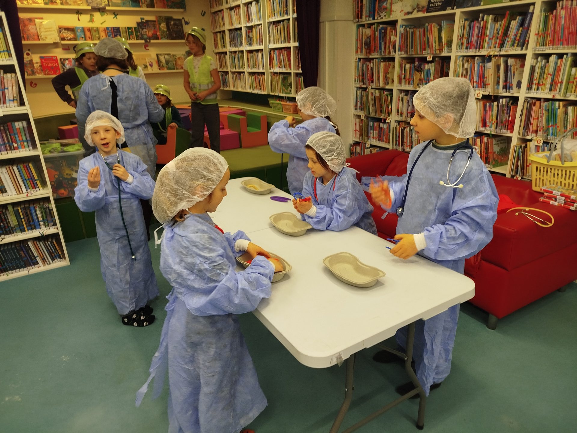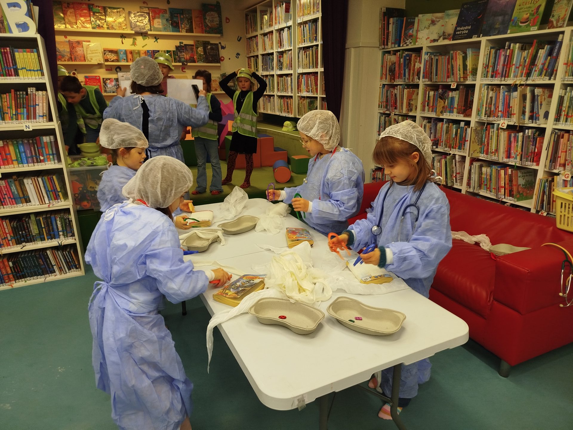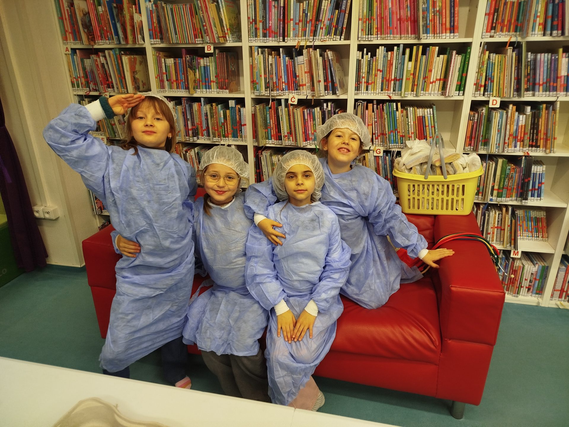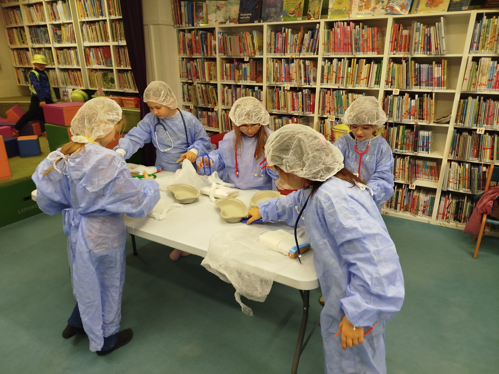 V pondělí 2. března jsme si užili krásný interaktivní program „Ten dělá to a ten zas tohle“ v Městské knihovně. Děti si vyzkoušely různá povolání. Zachraňovaly knihy před bacily, hasily oheň, pekly koláče a stavěly zeď.