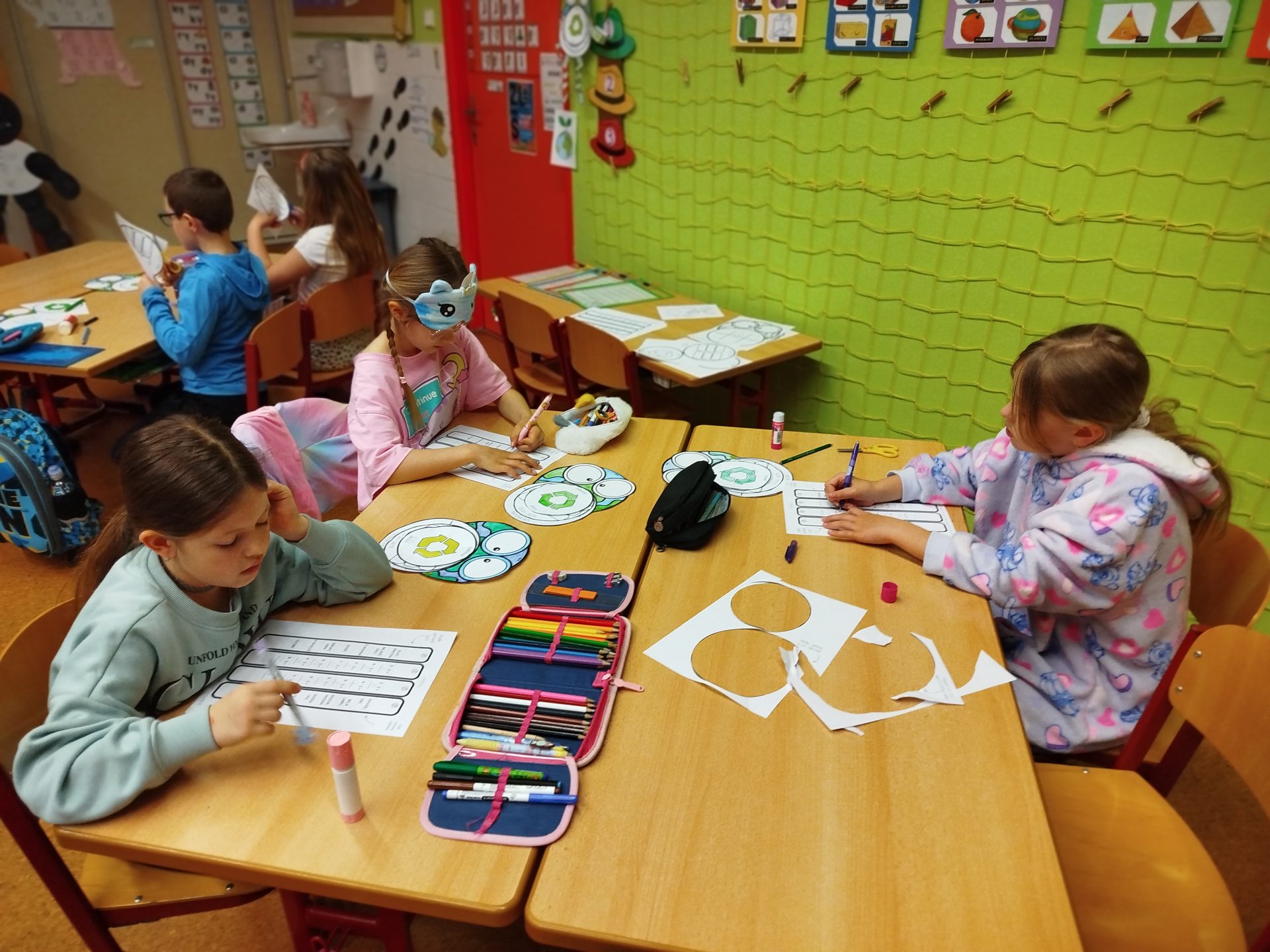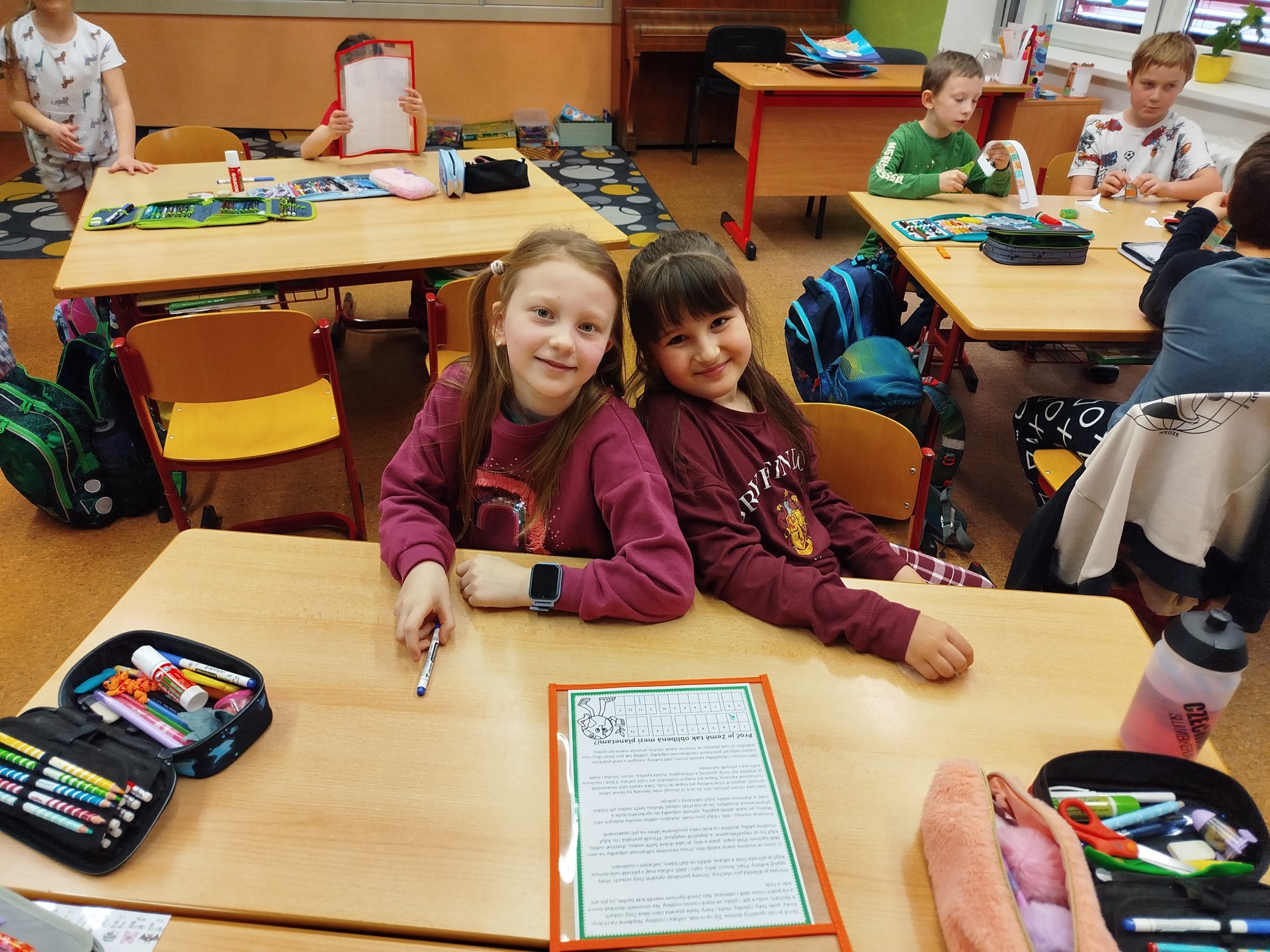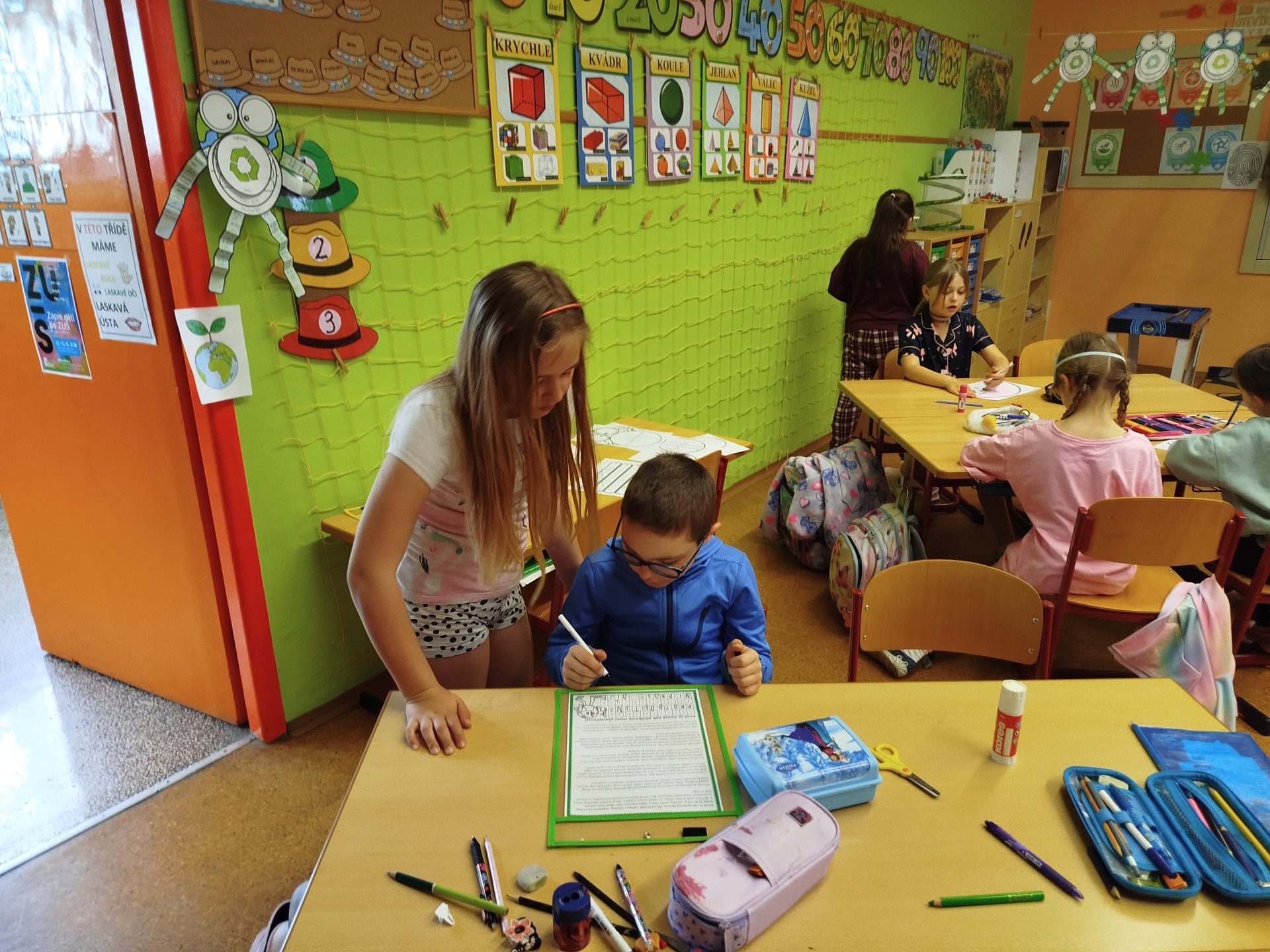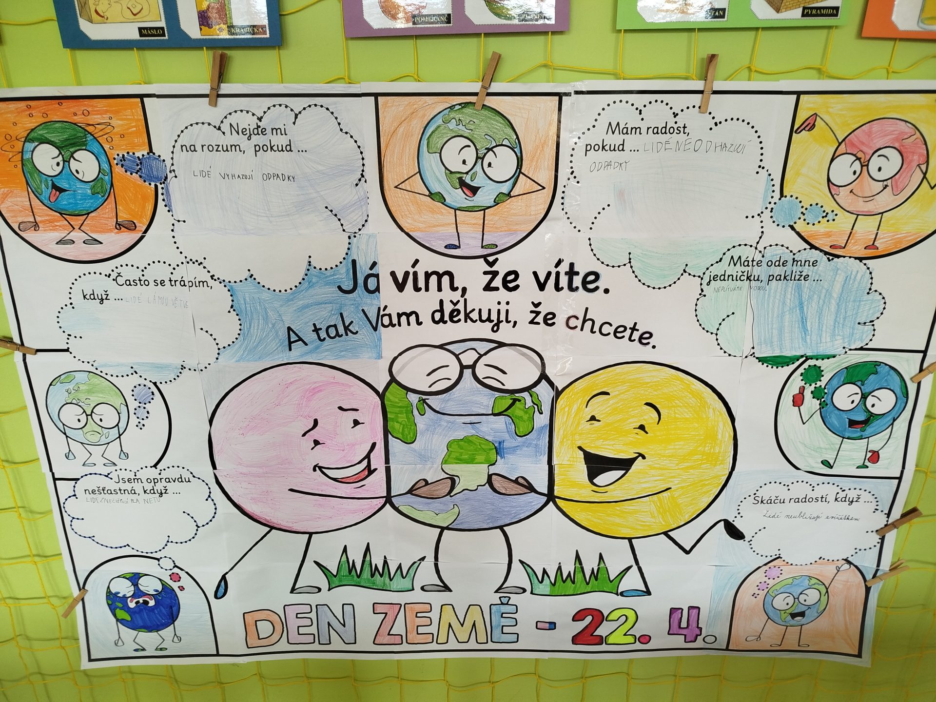 Týden jsme zakončili projektovým dnem – DEN ZEMĚ. Děti si přečetly dopis od planety Země, dozvěděly se nové informace a přemýšlely, co se planetě líbí a co jí ubližuje. Svoje myšlenky napsaly do bublin kooperativního obrazu. Také si vyrobily „Planeťáka“, prošly si stezku a vyluštily křížovku 🙂