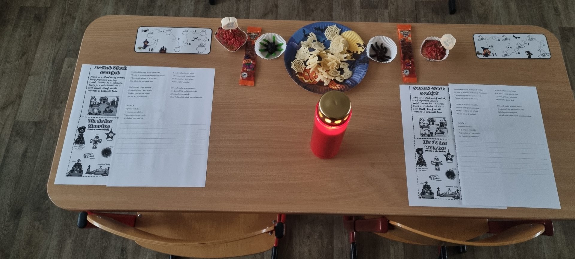 1.11. jsme měli projektový den. V tento den jsme se seznámili s tím, jak vzpomínají na zesnulé u nás a ve světě. Děti napsaly krásné vzkazy zesnulým a každý zapálil svíčku. Naučili jsme se dvě krátké básničky – jednu o Dušičkách a jednu anglickou o Halloweenu. Na závěr jsme si řekli, jak slaví Día de los Muertos v Mexiku a pustili si pohádku Coco.