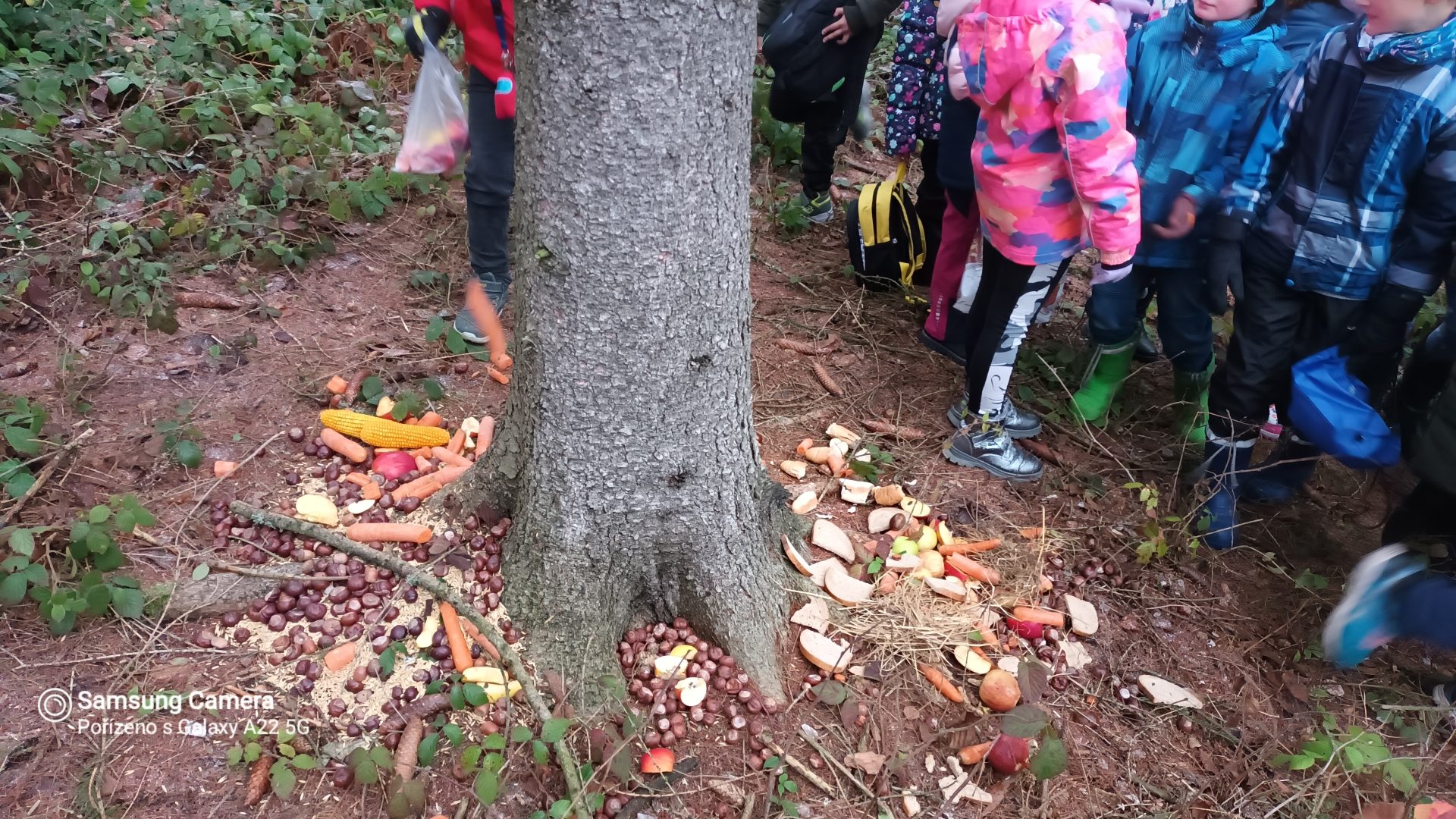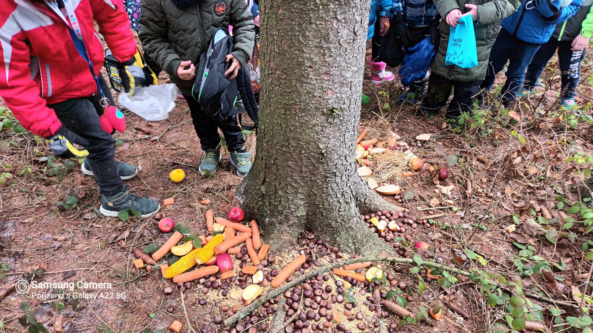 vánoční svátky se kvapem blíží a my nezapomínáme  ani na zvířátka. Celý podzim jsme pilně sbírali kaštany a jiné plody. Jako v loni jsme se vydali k nejbližšímu lesu nad Jelenicí
