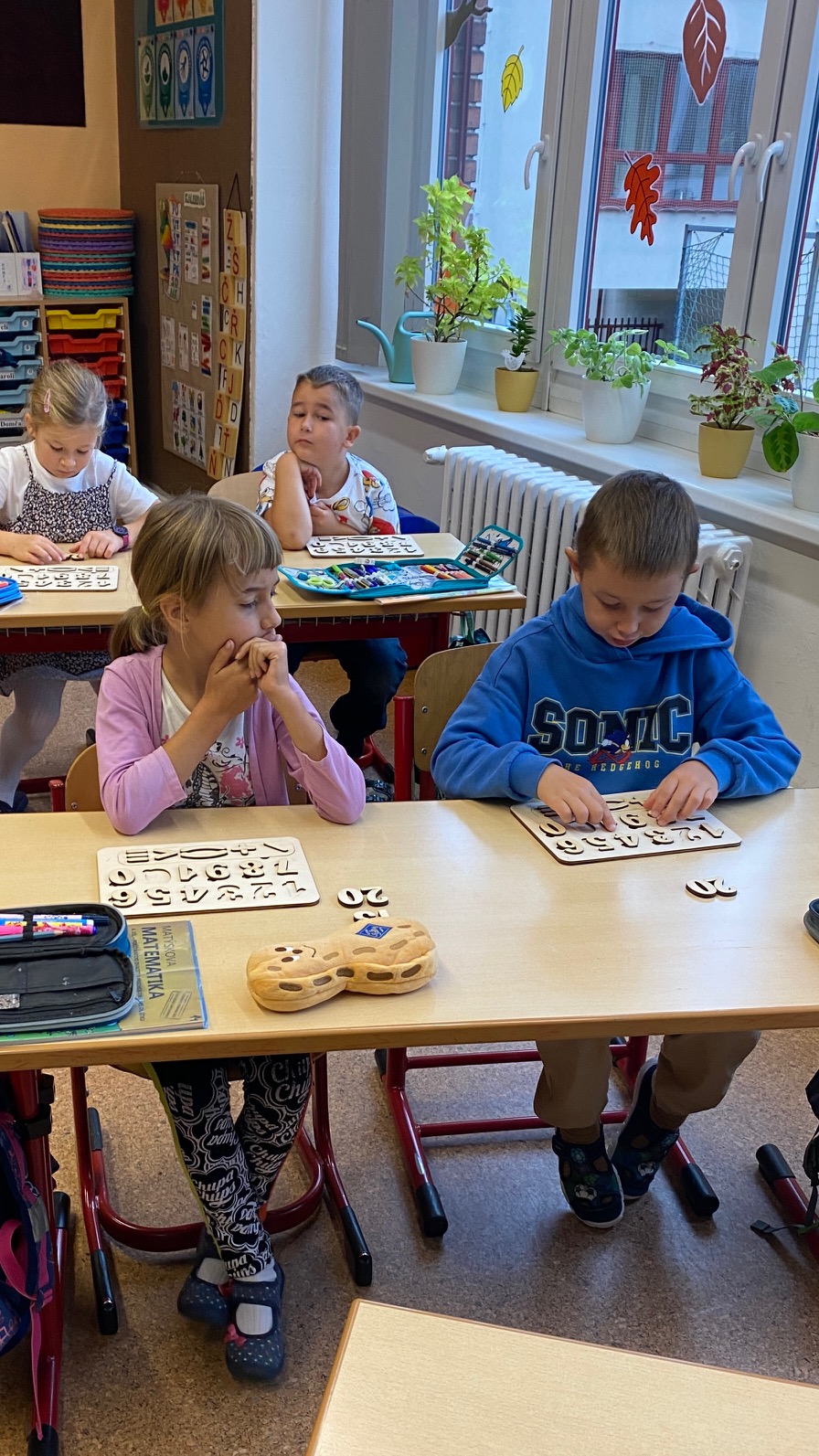 Během září jsme si zopakovali učivo 1. třídy a postupně se učíme věcem novým. V českém jazyce je to především abeceda, řádíme písmena a slova, spolupracujeme ve skupinkách. V matematice dopočítáváme do 10, zabýváme se desítkami a jednotkami, určujeme čas, poznáváme geometrické tvary a tělesa. V tělesné výchově jsme si vyzkoušeli v rámci Testování Olympijského víceboje (15.9.) několik disciplín – skok z místa, předklon, sedy-lehy, běh 60m, běh 500m, člunkový běh, postoj čápa a hod míčem. Také se věnujeme kooperativním i soutěžním hrám. V prvouce se učíme o podzimu a proměnách v přírodě, což jsme si vyzkoušeli i různými technikami ve výtvarné výchově.