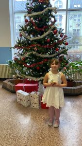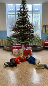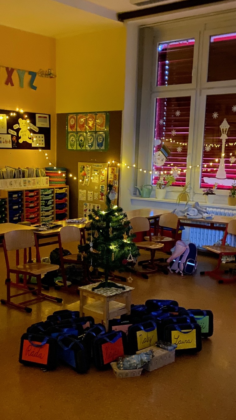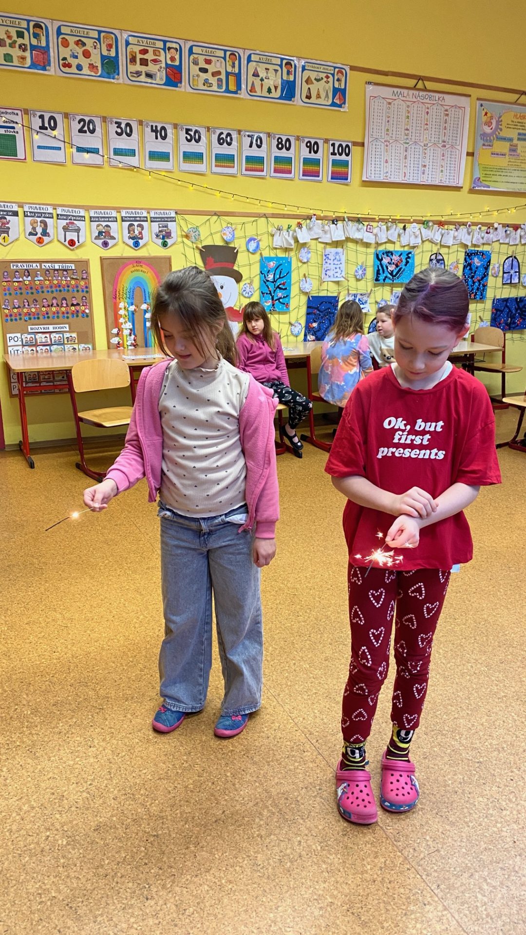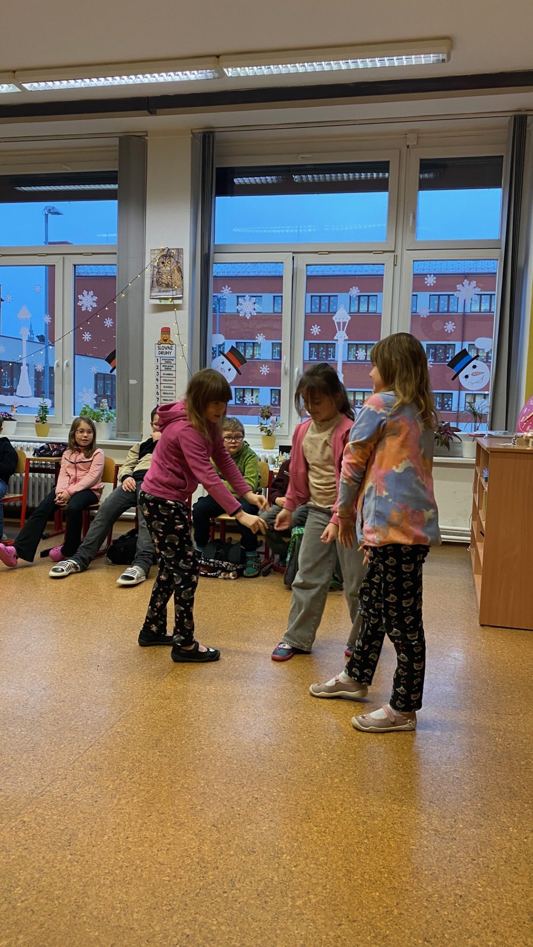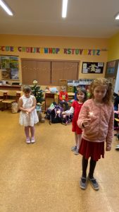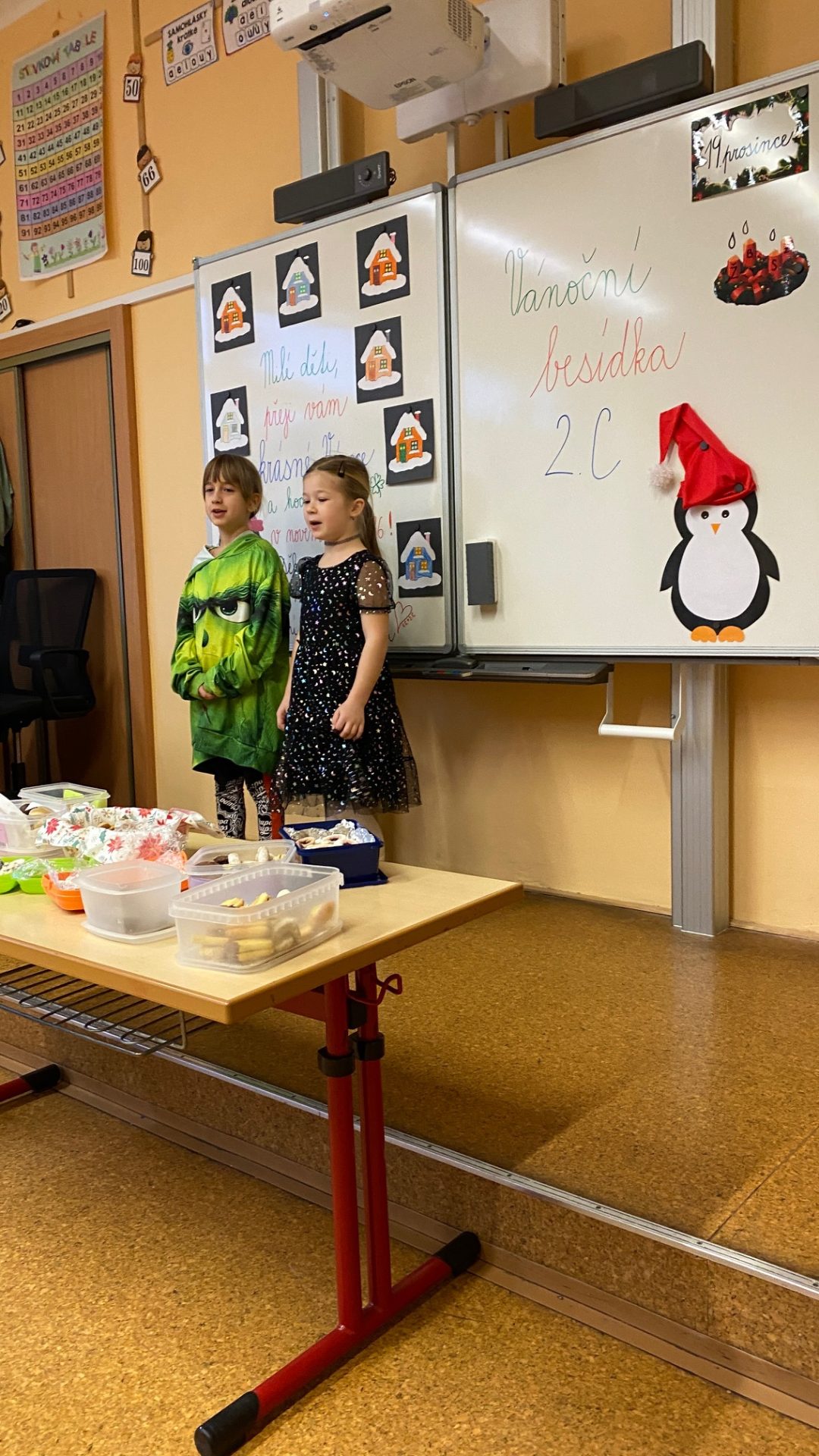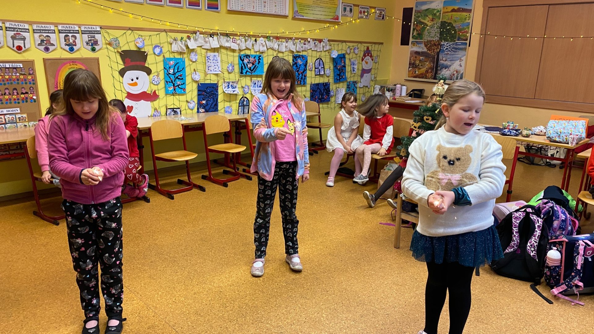 V pátek 19. prosince měl příchod do třídy své kouzlo – třída se od předchozího dne proměnila a voněla Vánoci, cukrovím a my jsme si mohli sednout do kruhu, dnes tu s námi byla také nová paní učitelka. Besídku jsme společně zahájili prskavkami a poté následovala vystoupení žáků. Někteří žáci nám zahráli koledy na klávesy, někdo zazpíval sám či ve dvojici, také jsme měli možnost vidět taneční vystoupení. Všechny výkony si zasloužily potlesk. V další části besídky probíhalo poznávání českých tradic a zvyků, hádání pohádek podle písniček a hledání pohádkových dvojic. Po lovení rybek a skupinkových fotkách už následovalo rozdávání dárečků, pod stromečkem na každého čekalo nějaké překvapení včetně společných dárků do třídy. Děti s paní asistentkou a paní vychovatelkou připravily paní učitelce krásná překvapení, loučili jsme se se slovy díků a milých přání – popřáli jsme si také krásné Vánoce a celé prázdniny. V lednu v novém roce se bude těšit na děti nová paní učitelka.