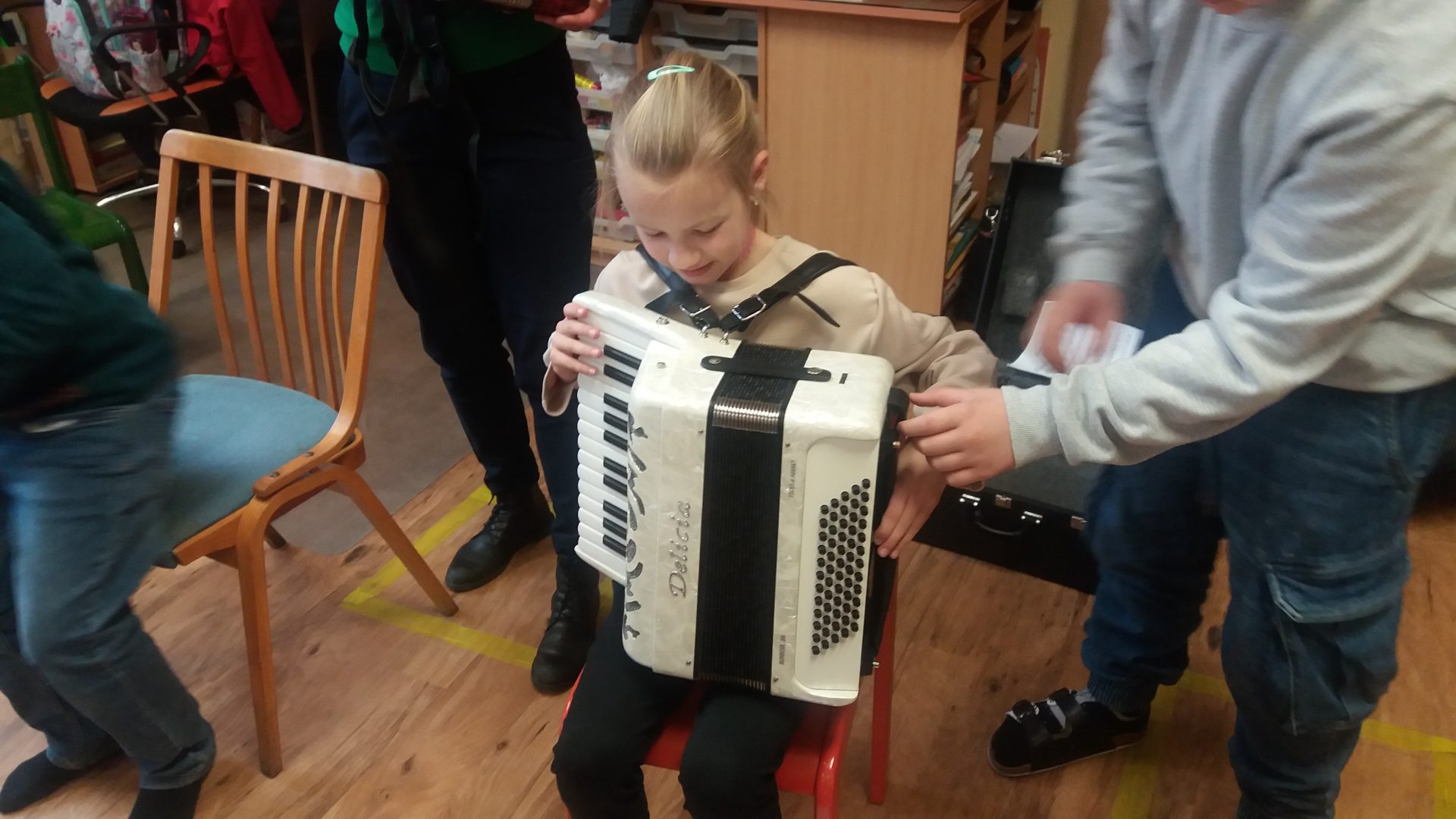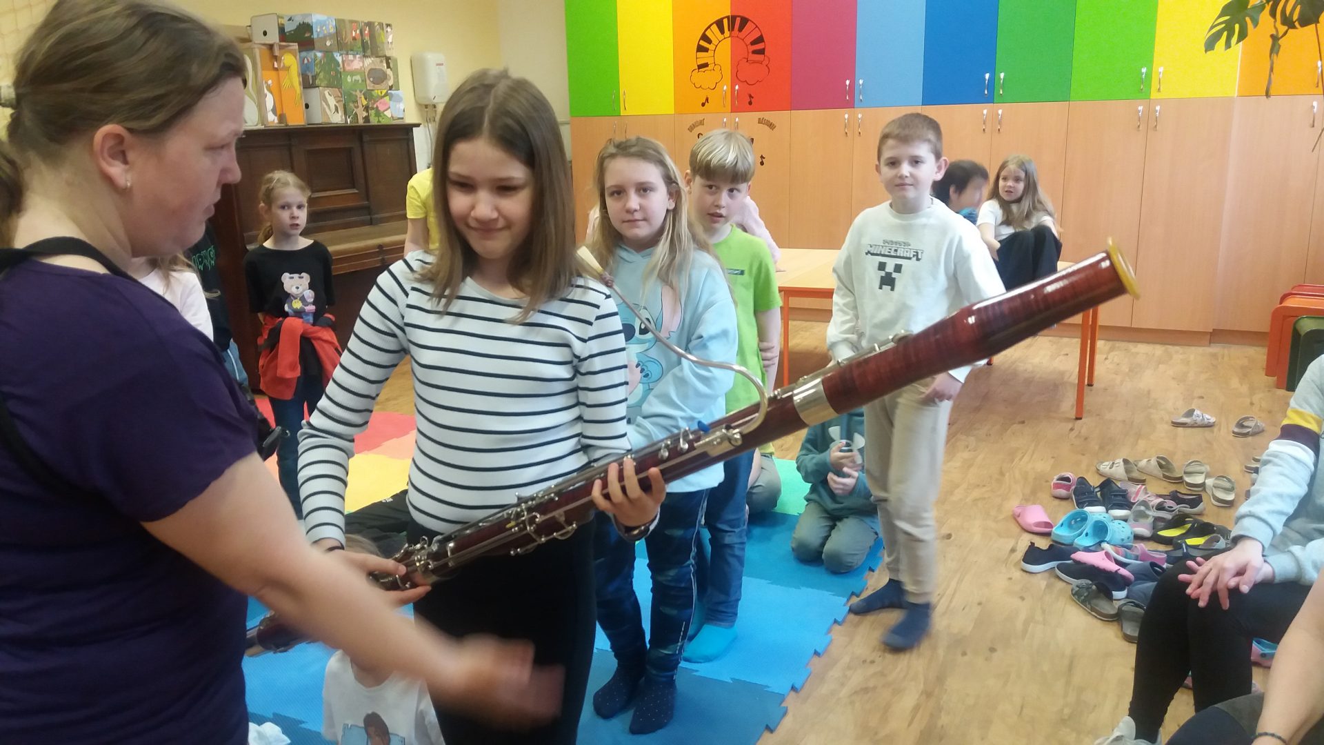 tóny nám zahrál fagot i hoboj. Zajímavé byly různé velikosti fléten. Na závěr jsme si mohli zahrát na akordeon a housle. V galerii se můžete podívat na zajímavé setkání s hudebními nástroji.