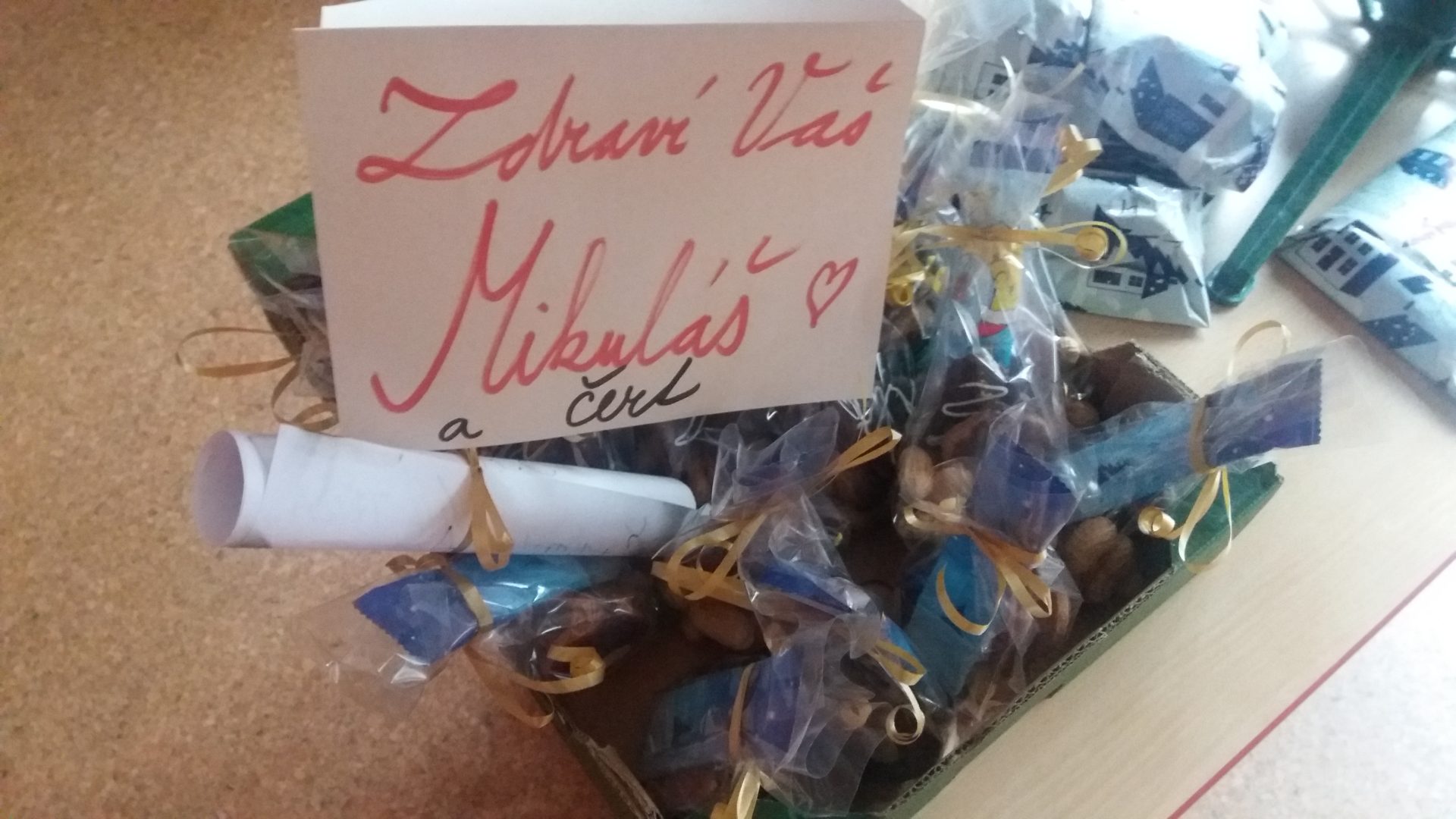 Paní učitelka nám přečetla Pekelnou listinu hříchů. Byla tam i pochvala, že jsme celkem hodná a slušná třída. Mikuláš pro všechny připravil pěkný balíček. Někteří se do něj hned pustili.
