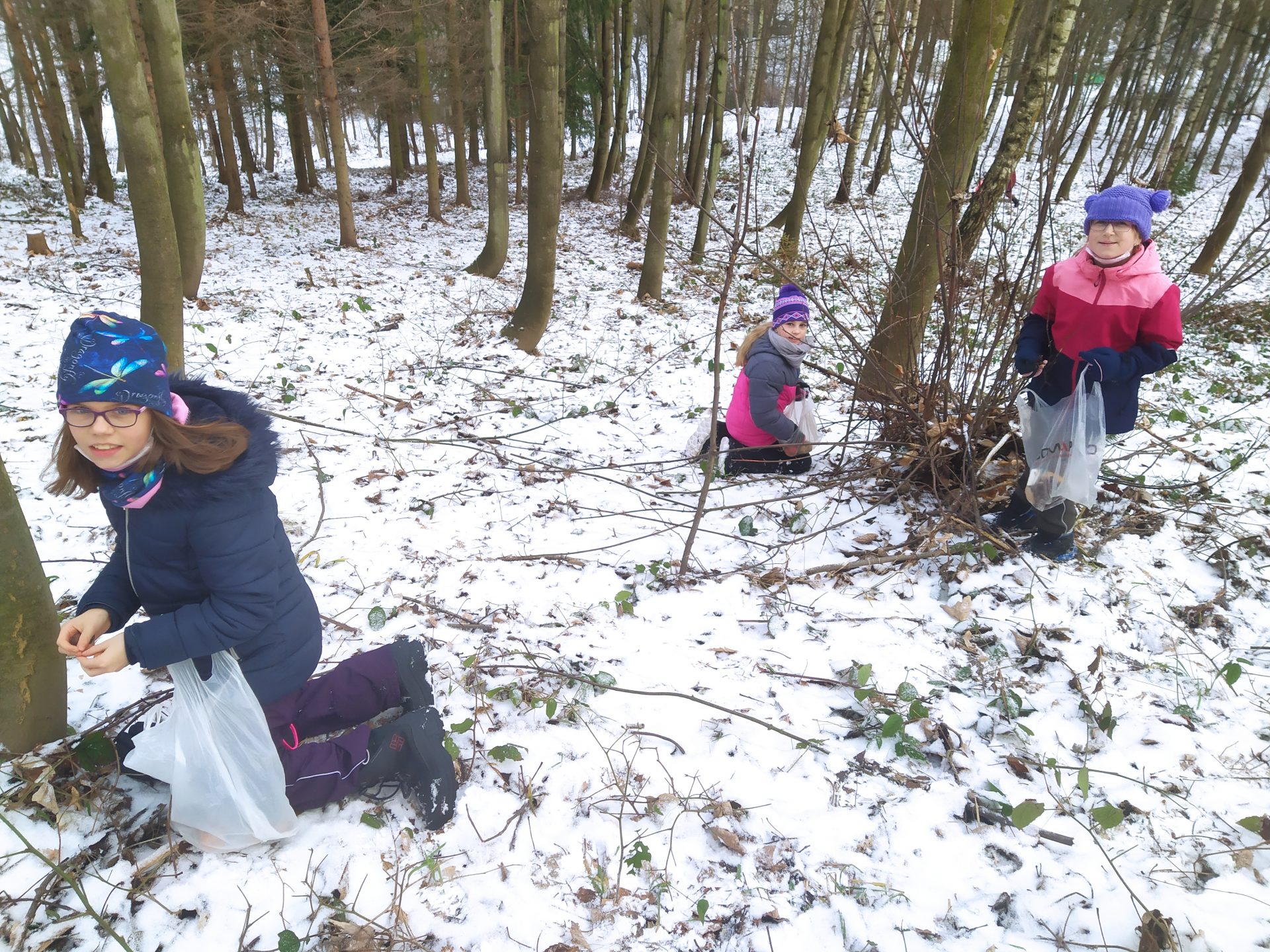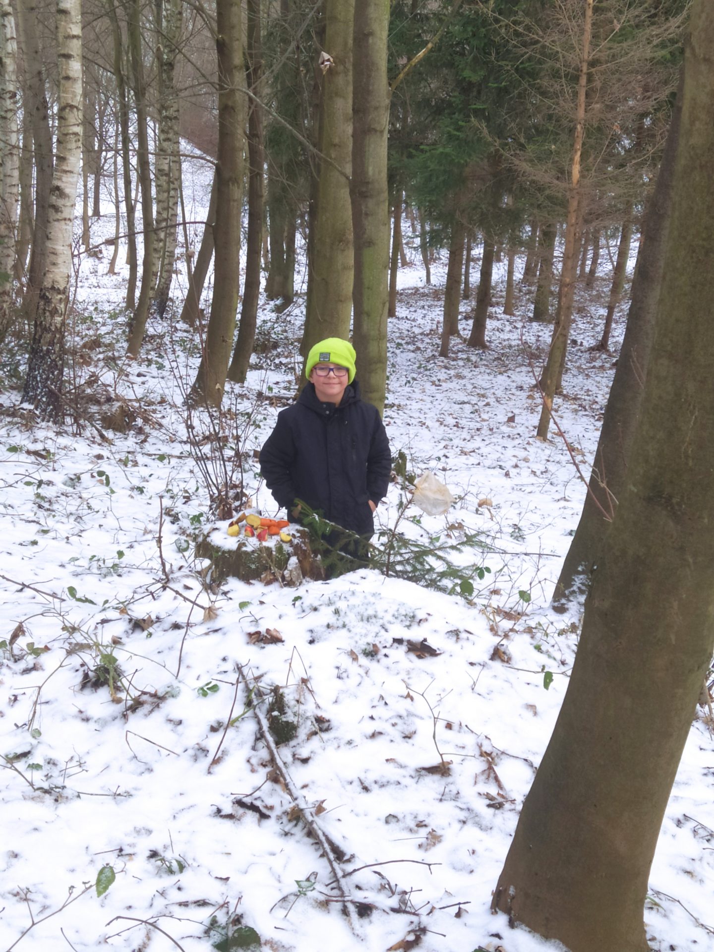 Chodíte do lesa krmit zvířata? A víte, jak správně na to? My jsme si o správném zimním jídelníčku lesních živočichů přečetli na internetu. Nosit do krmelce i volně na zem můžeme všechny usušené trávy a byliny, sušené maliní a podobně. Zvířátkům nevadí ani vlhké a promoklé seno, jen musíme dávat pozor na zaplísnění. Kaštany, žaludy, bukvice, obilí, kukuřice, hrách, to jsou další laskominy. Ale pozor – z obilí je pro přikrmování vhodný pouze oves! Vystoupali jsme na Robův kopec nad parkem Javorka a pečlivě naservírovali dobroty pro štědrovečerní hostinu.