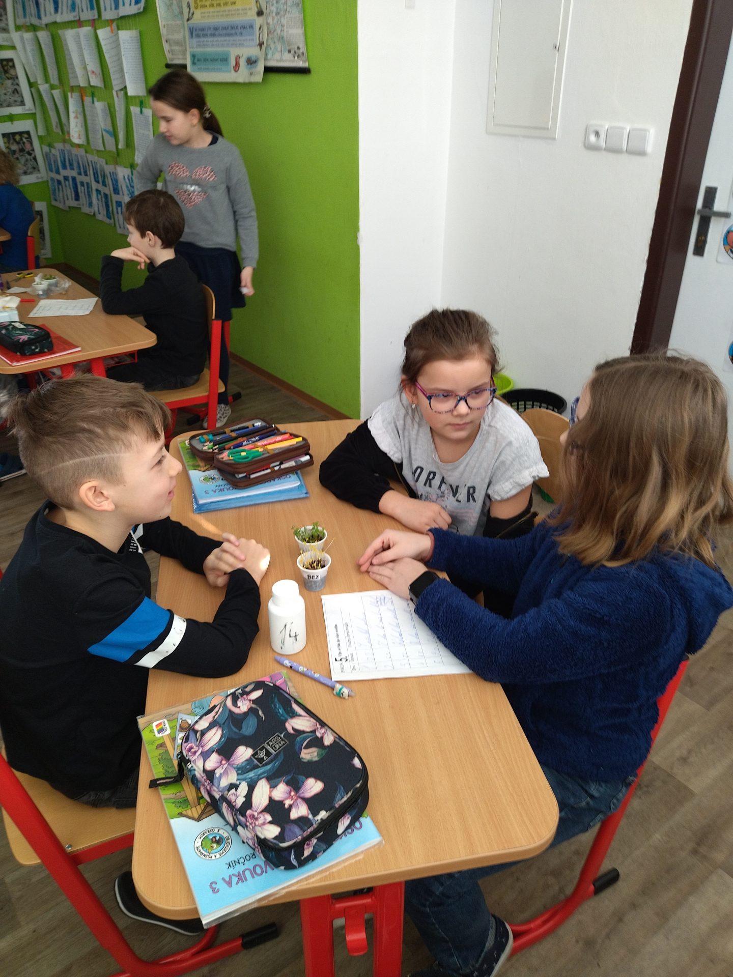 Tento týden byl v naší třídě nabitý. Nejenže jsme byli bruslit a navštívili jsme program městské knihovny ,,Ten dělá to a ten zas ono“, ale celý týden jsme se starali o semena řeřichy. Každá skupina měla na starosti dva kelímky se semínky. Zkoumali jsme, jak se budou vyvíjet rostliny , které mají zajištěné základní podmínky života a jak se budou vyvíjet rostliny bez základních podmínek života, tedy s a bez vody, s a bez půdy, s a bez vzduchu, s a bez světla či semínka v teple v porovnání se semínky bez tepla. Pozorování vývoje rostlin skupiny zaznamenávaly na záznamový arch a dne 10. 2. jednotlivé skupiny odprezentovaly výsledek vývoje rostlin. Co myslíte, které vyrostli a jak? Jen jeden pokus se nám nezdařil. Rostlinu bez vzduchu jsme dali do sáčku, ale i tak se tam vzduch dostával a sáček nám vlastně udělal miniskleník. Rostliny v něm byly výrazně větší než bez sáčku. I to je vlastně poučení :). R. Kulhavá