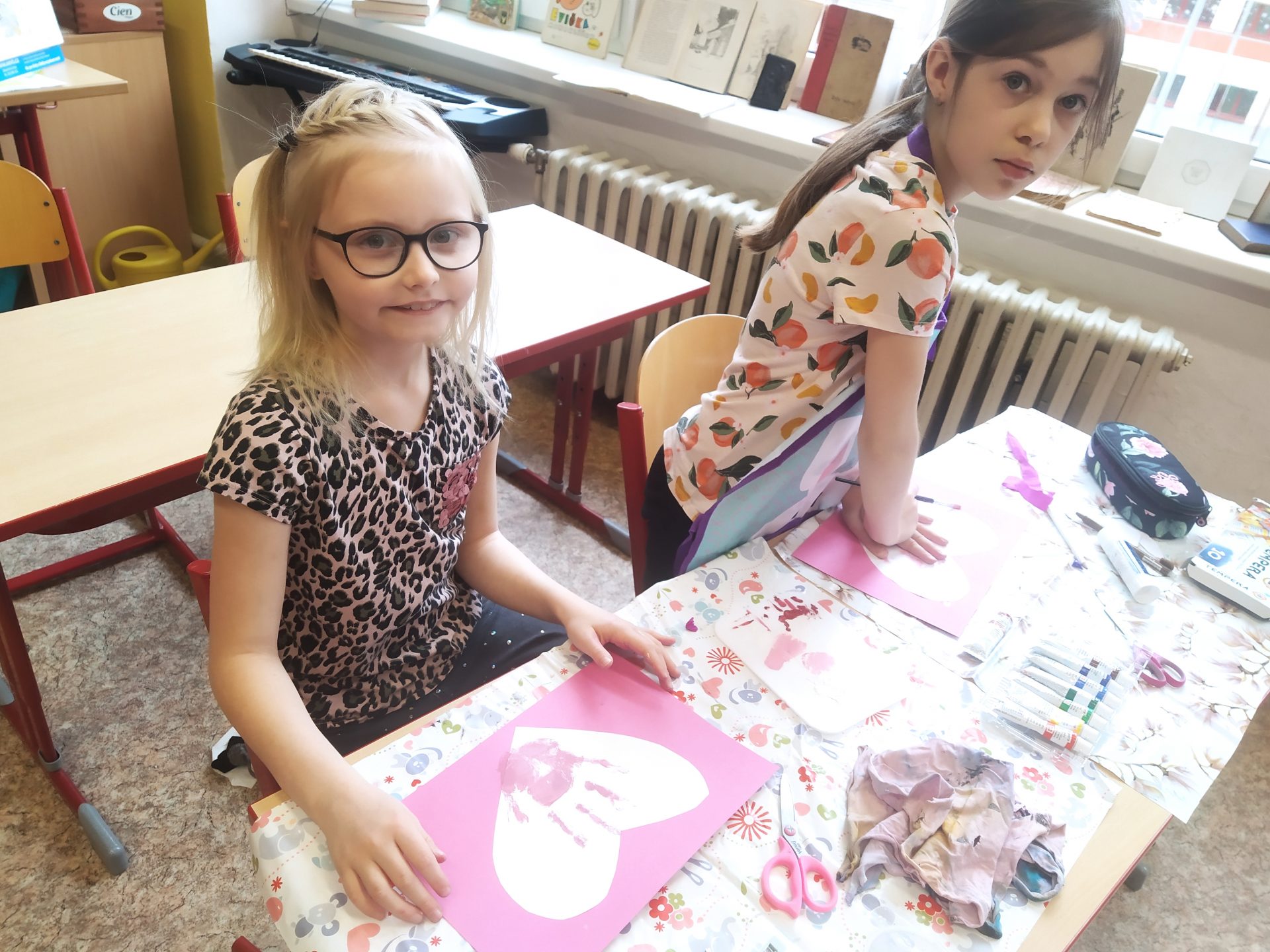 My jsme při výtvarné výchově a pracovních činnostech vyráběli valentýnská přáníčka a darujeme je z lásky těm, které máme rádi.