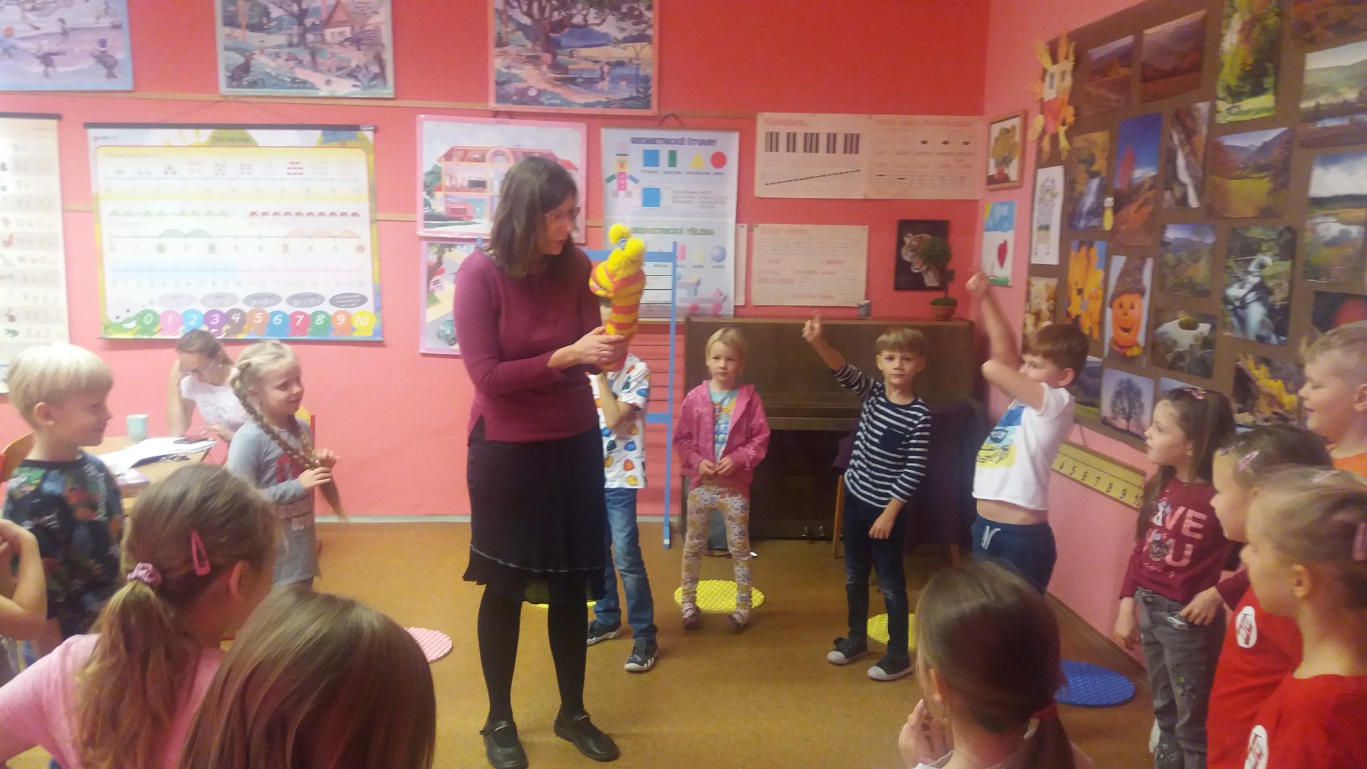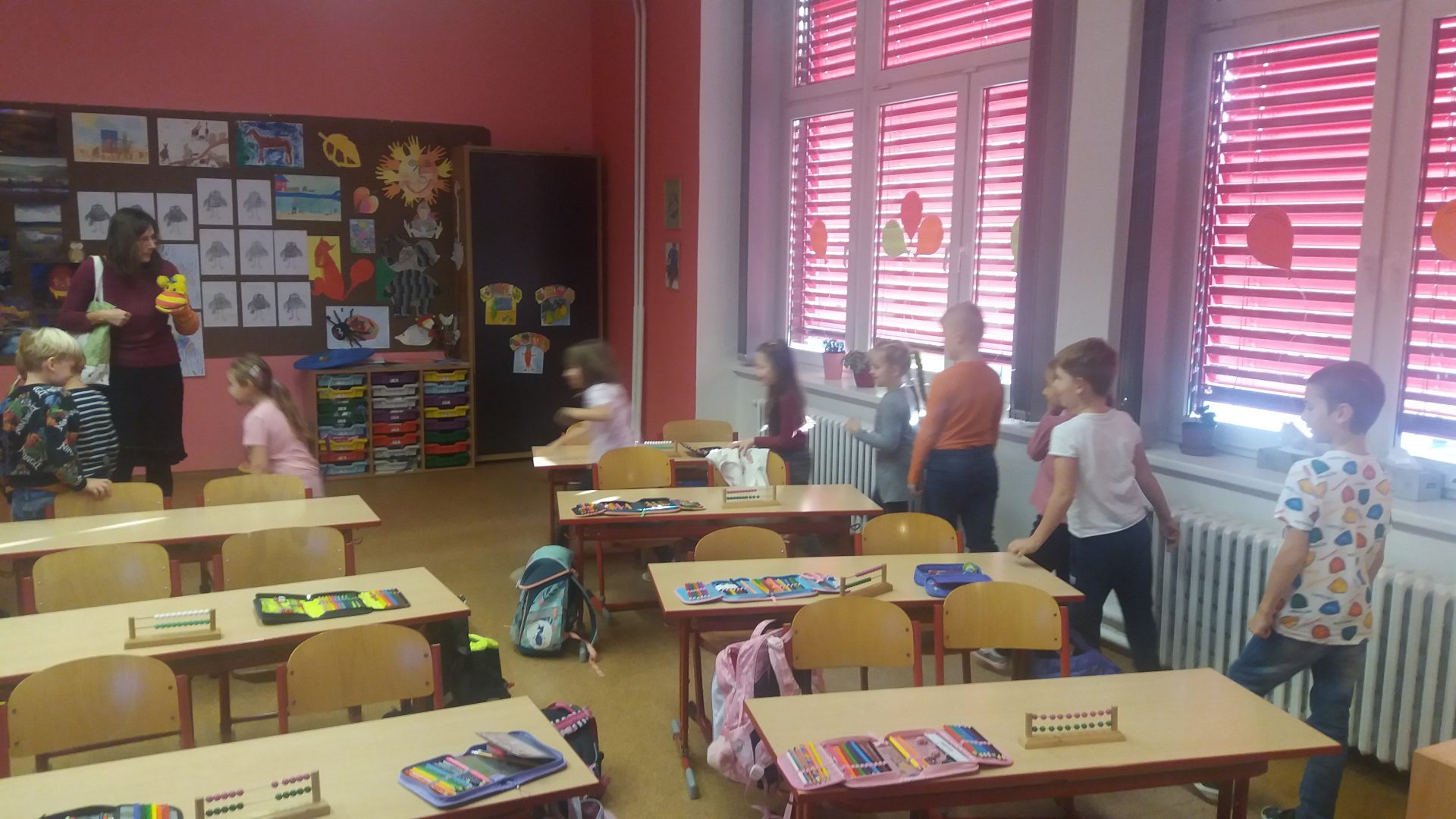 zdravíme  vás v listopadu. V úterý 7.11. k nám přišla do třídy návštěva. Paní učitelka s maňáskem ponožky. Měla ještě další zajímavé věci, jako krásnou truhlu s pokladem. Každý z nás dostal barevný lístek s truhlou a s nápisem – Přátelé má, kdo přátelsky se chová. Hráli jsme všichni hry s kamarády, pomáhali jsme si a byli na sebe hodní. Paní učitelka nás pochválila. V galerii se můžete podívat, jak jsme si dvě hodiny zajímavého povídání a her užili.