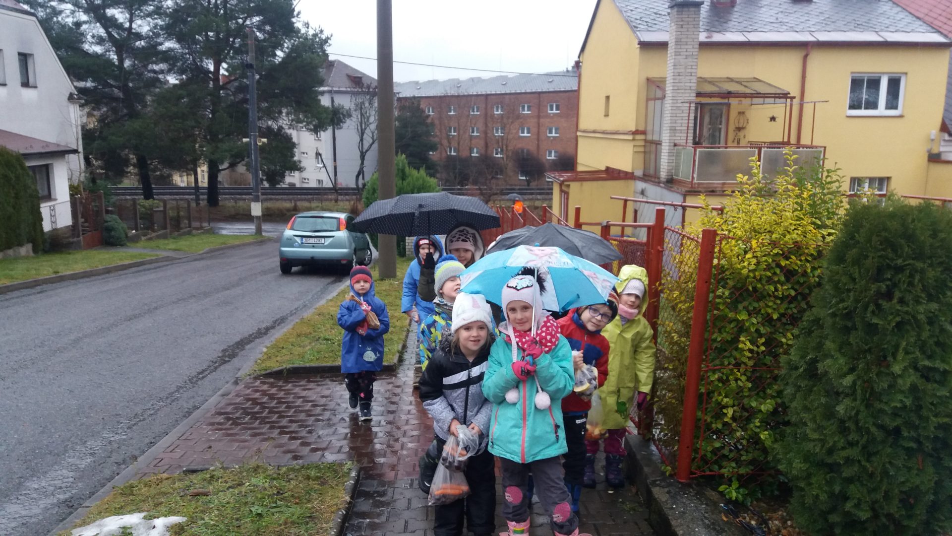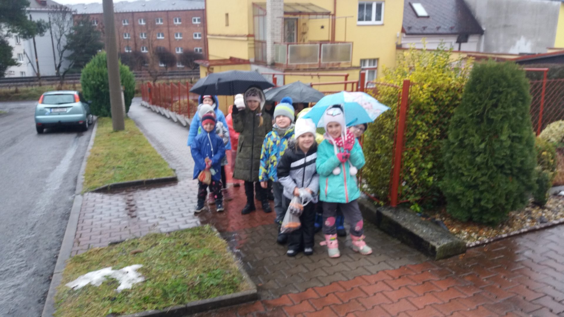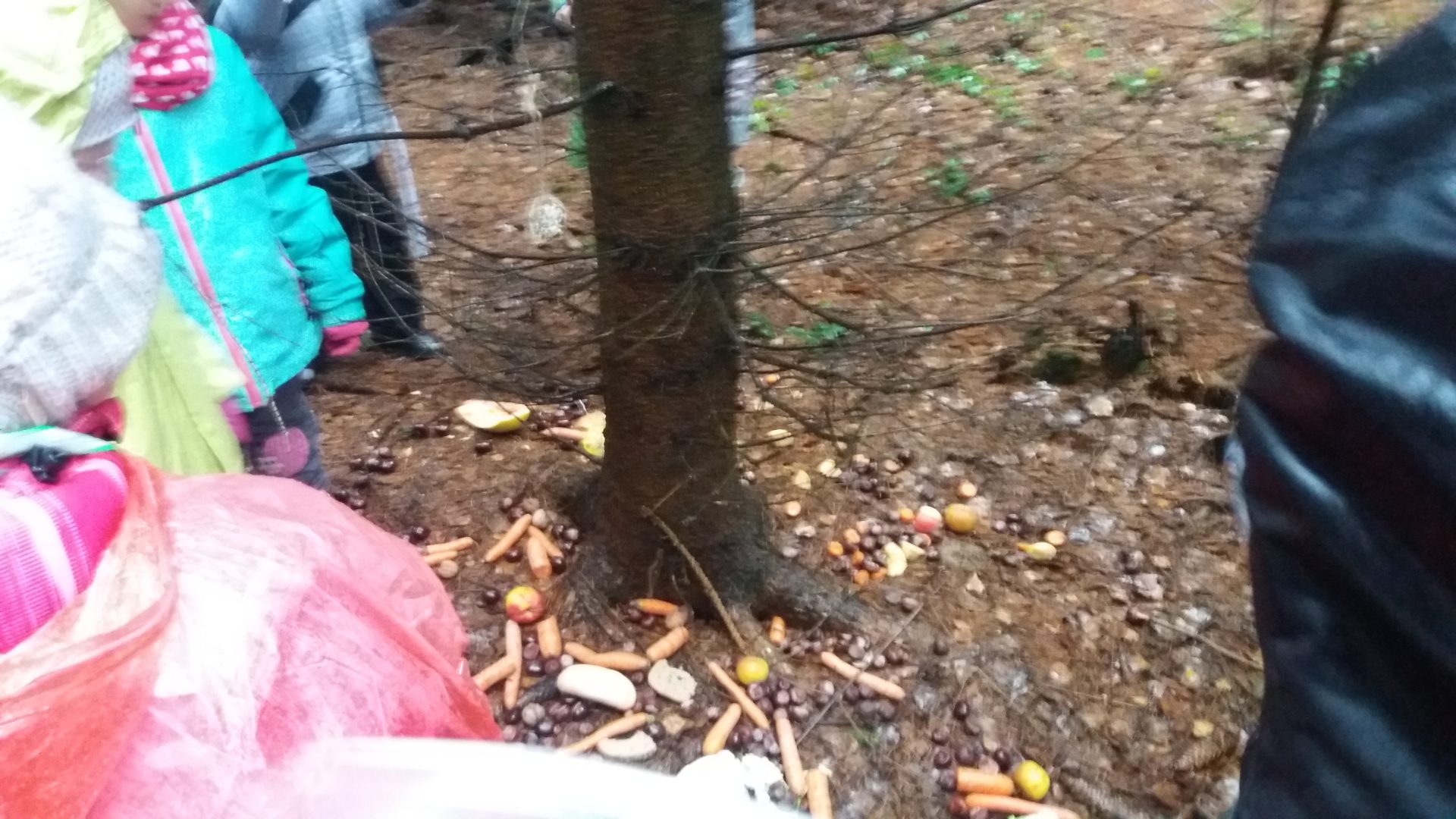 všichni jsme se moc těšili na vycházku do lesa. Počasí nám nepřálo, ale stálo to za to. Škoda, že nemůžeme vidět zvířátka hodovat na naší nadílce. Kolem smrku jsme nasypali kaštany, mrkev, jablíčka a zeleninu. Snad jim bude vše chutnat. O vánočních prázdninách se můžeme s rodinou jít podívat, zda už všechno zvířátka spořádala. Při zpáteční cestě jsme měli krásný výhled na město, škoda že nebylo zasněžené.