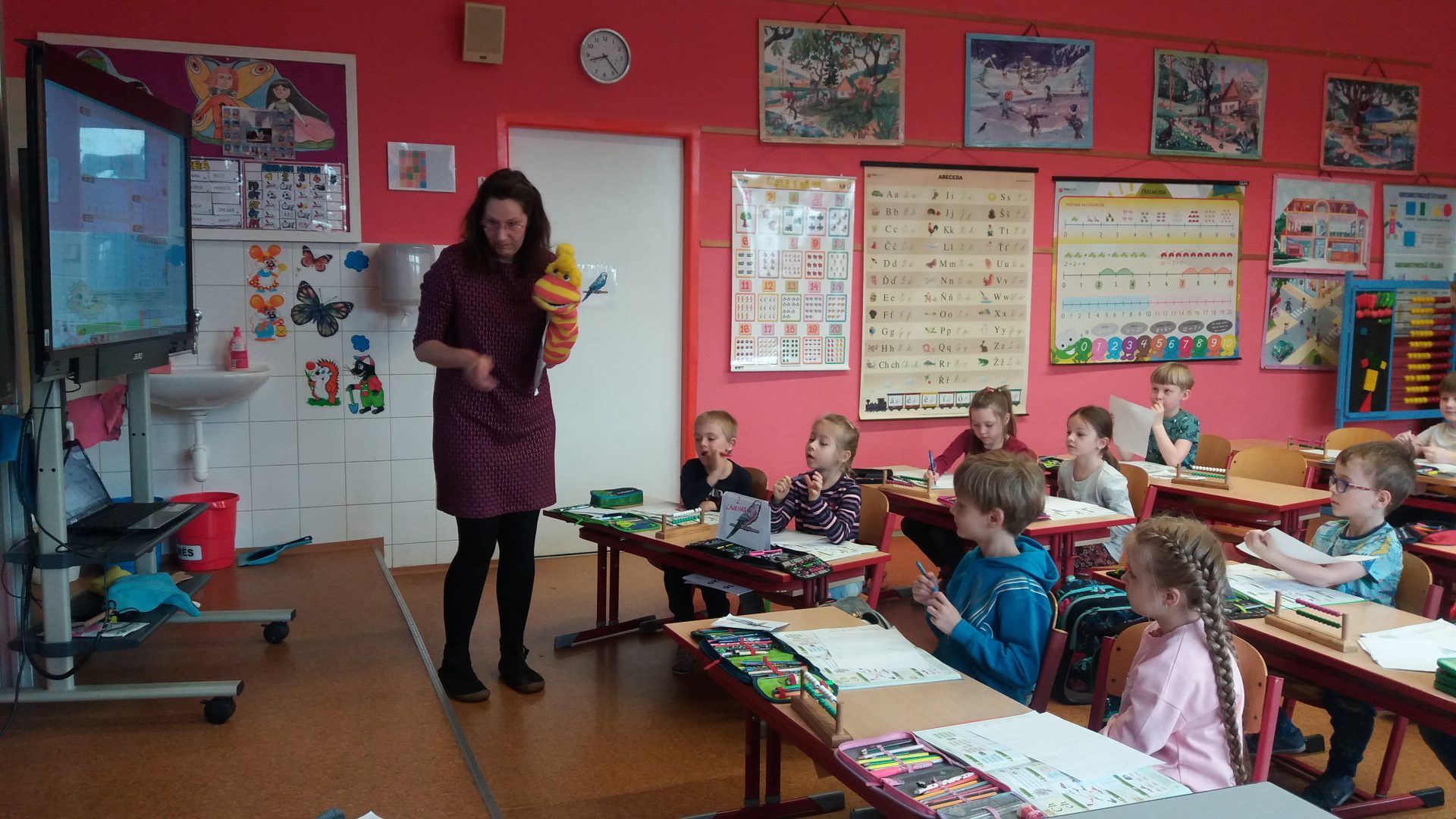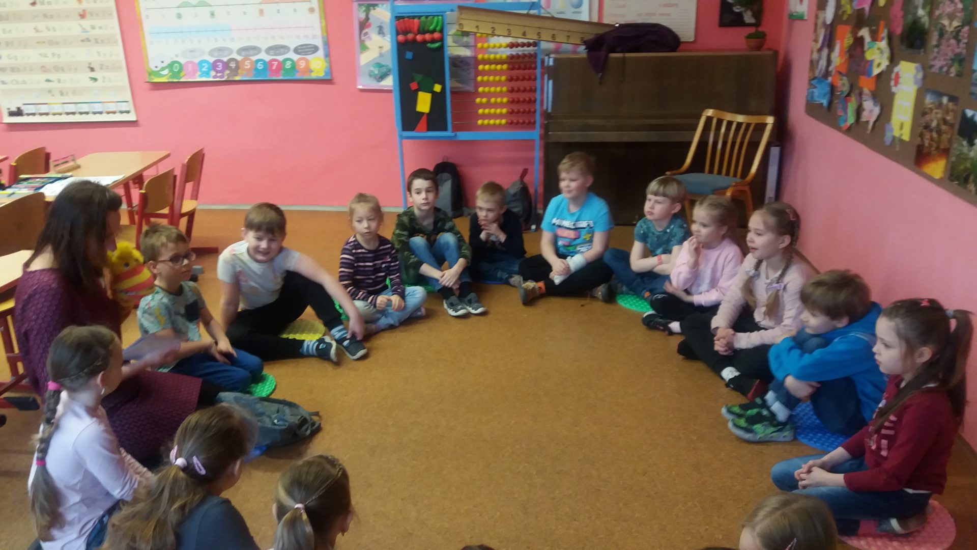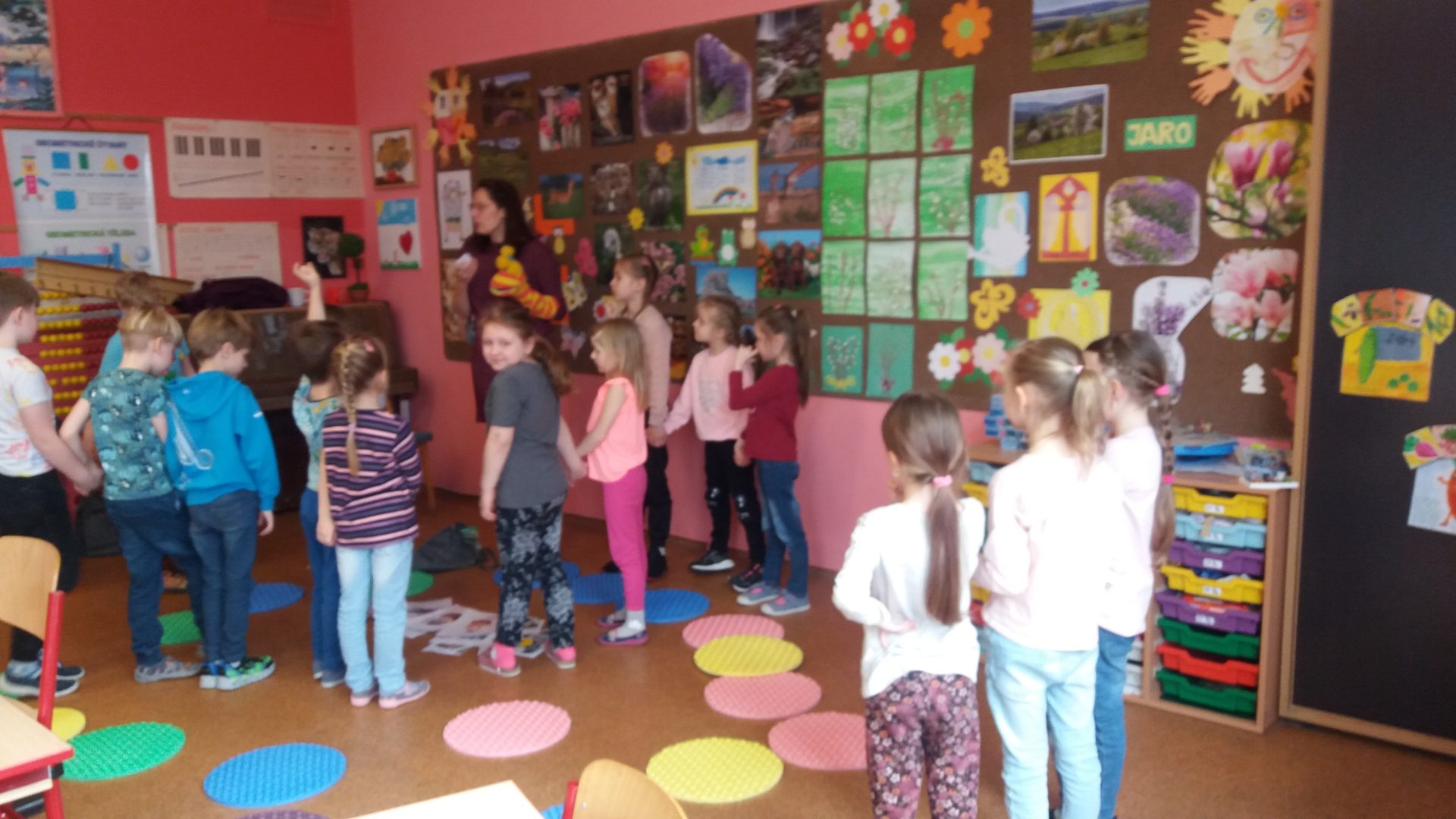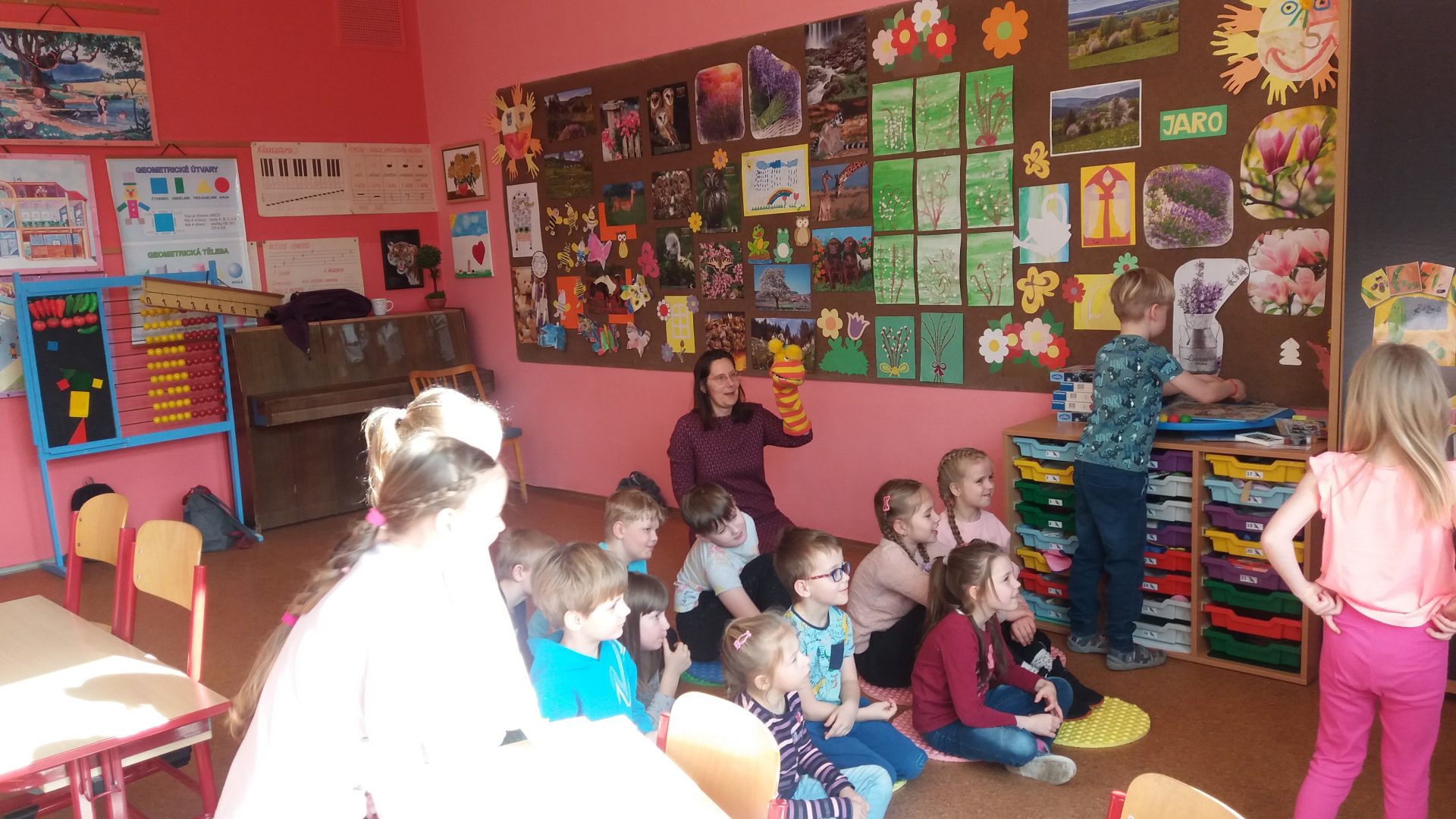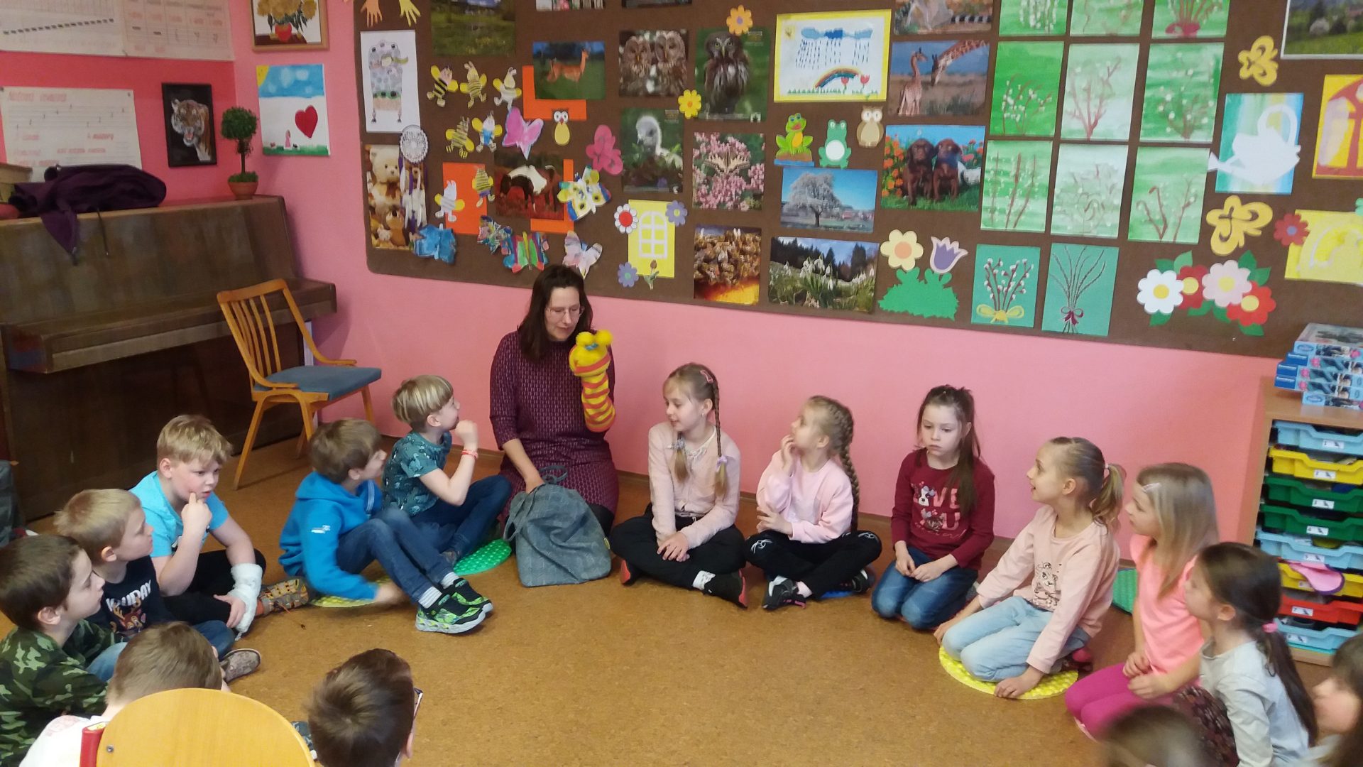 zdravíme vás v předvelikonočním týdnu. Všichni se těšíme na Velikonoce a také se na ně připravujeme. Opět k nám zavítala milá návštěva. Paní učitelka s ponožkou. Ponožka mluvila a dokonce i zlobila. Povídali jsme si a hráli různé aktivity. Zažili jsme opravdu cestu za pokladem s dobrodružstvím na hranicích. Museli jsme paní učitelce pomáhat usměrňovat zlobivou ponožku, která nedodržovala pravidla hry a nereagovala na naše ne. Ne znamená ne! Hodně jsme se poučili ve společenských hrách a situacích.
