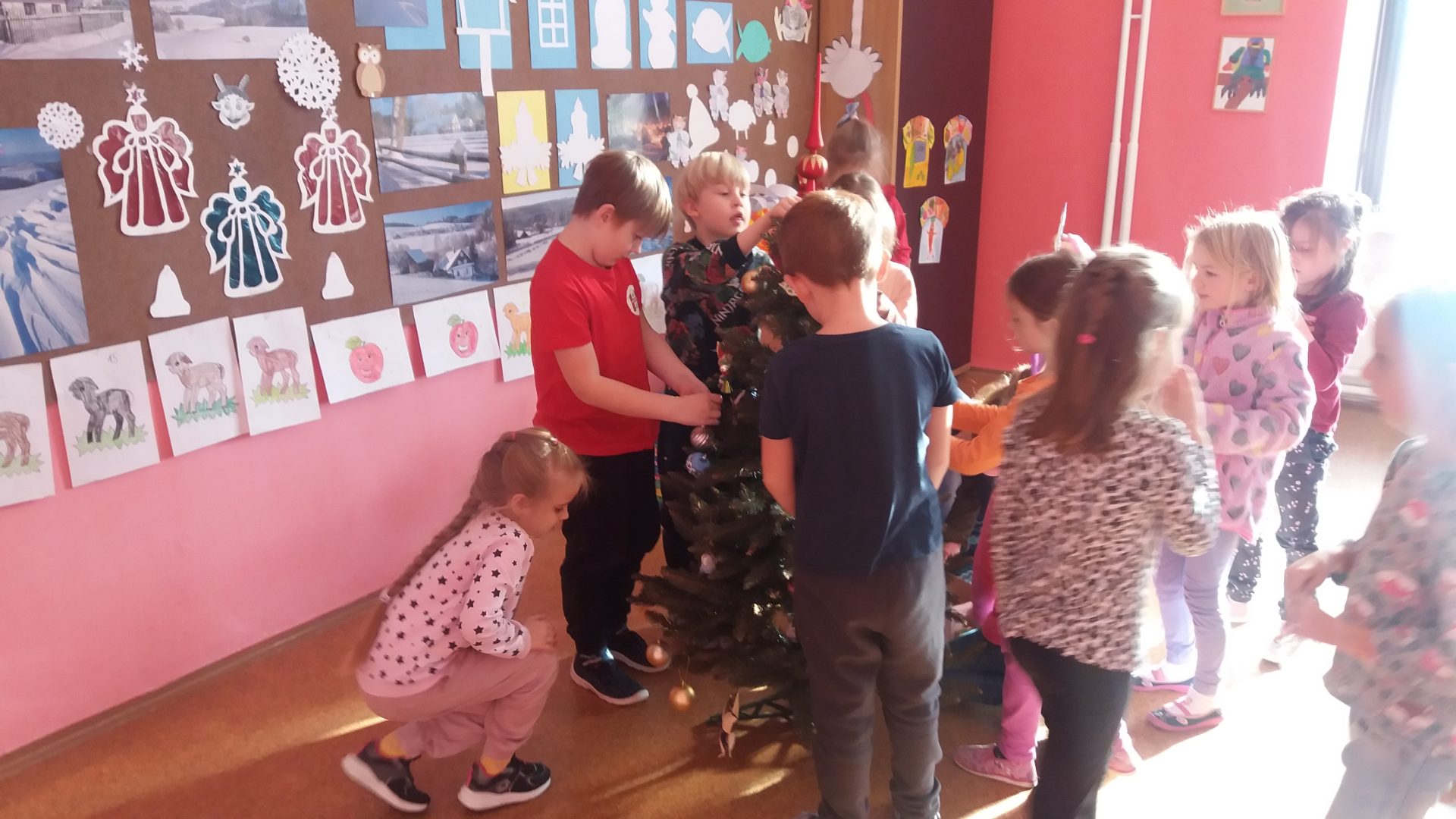 ozdobili a zazpívali si u zdobení známe lidové koledy. Je moc krásný a s dárečky bude ještě krásnější. Jsem zvědaví, kolik dárečků pod ním najdeme. Dopis s přáním jsme už nakreslili a snažíme se být hodní ve škole. Doma budeme rodičům pomáhat s úklidem a pečením cukroví.