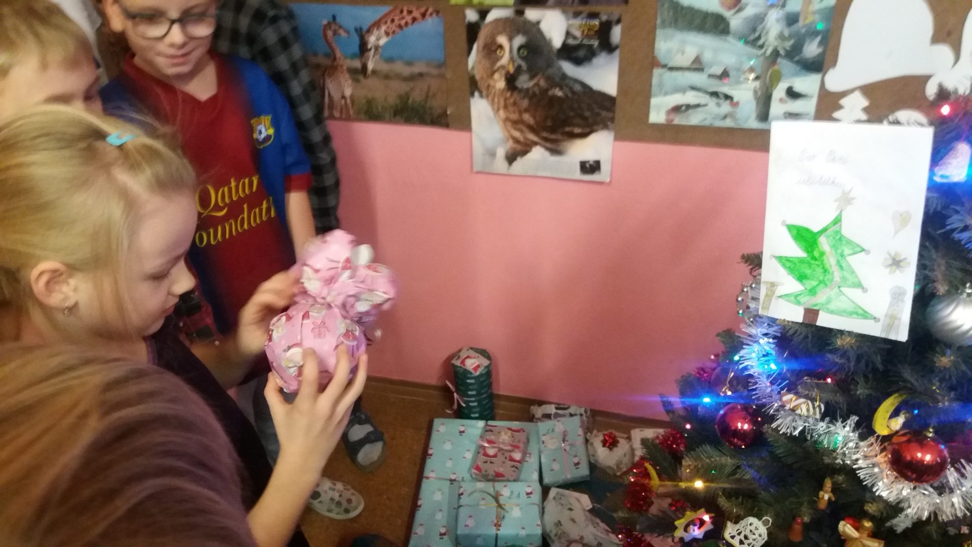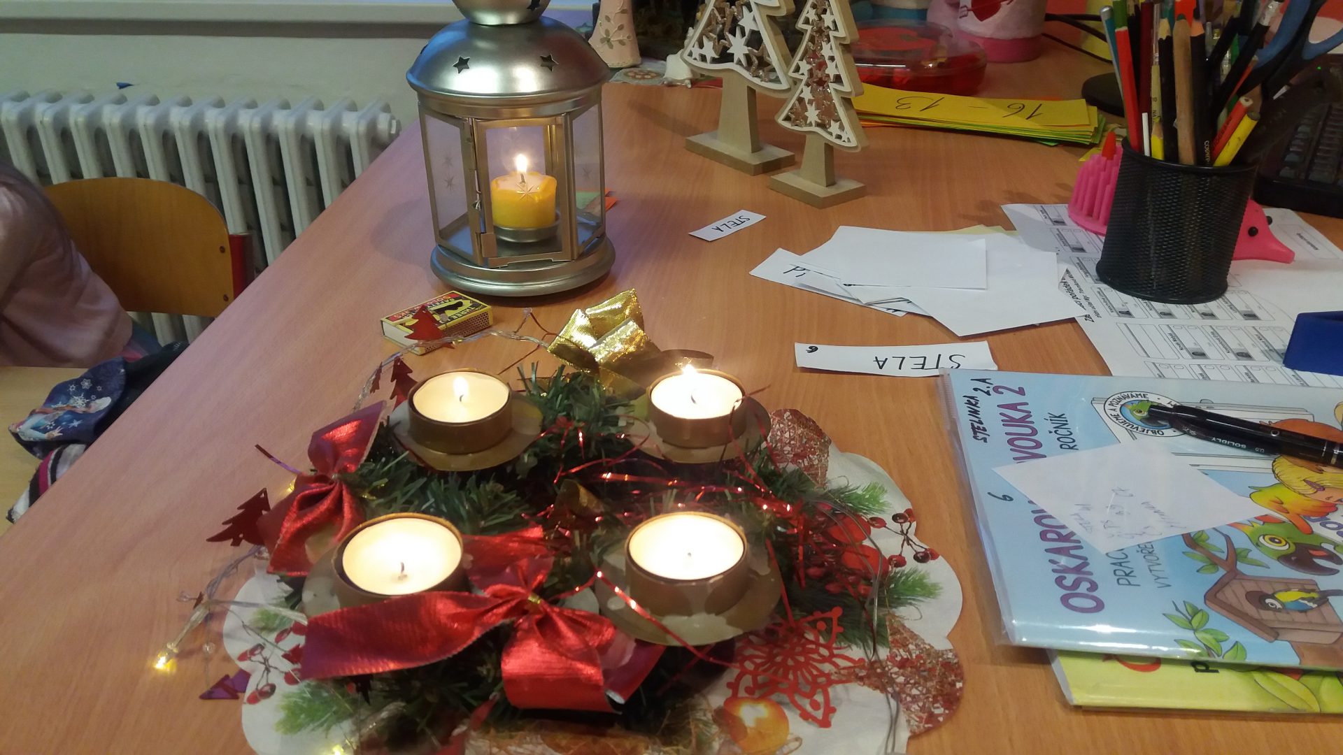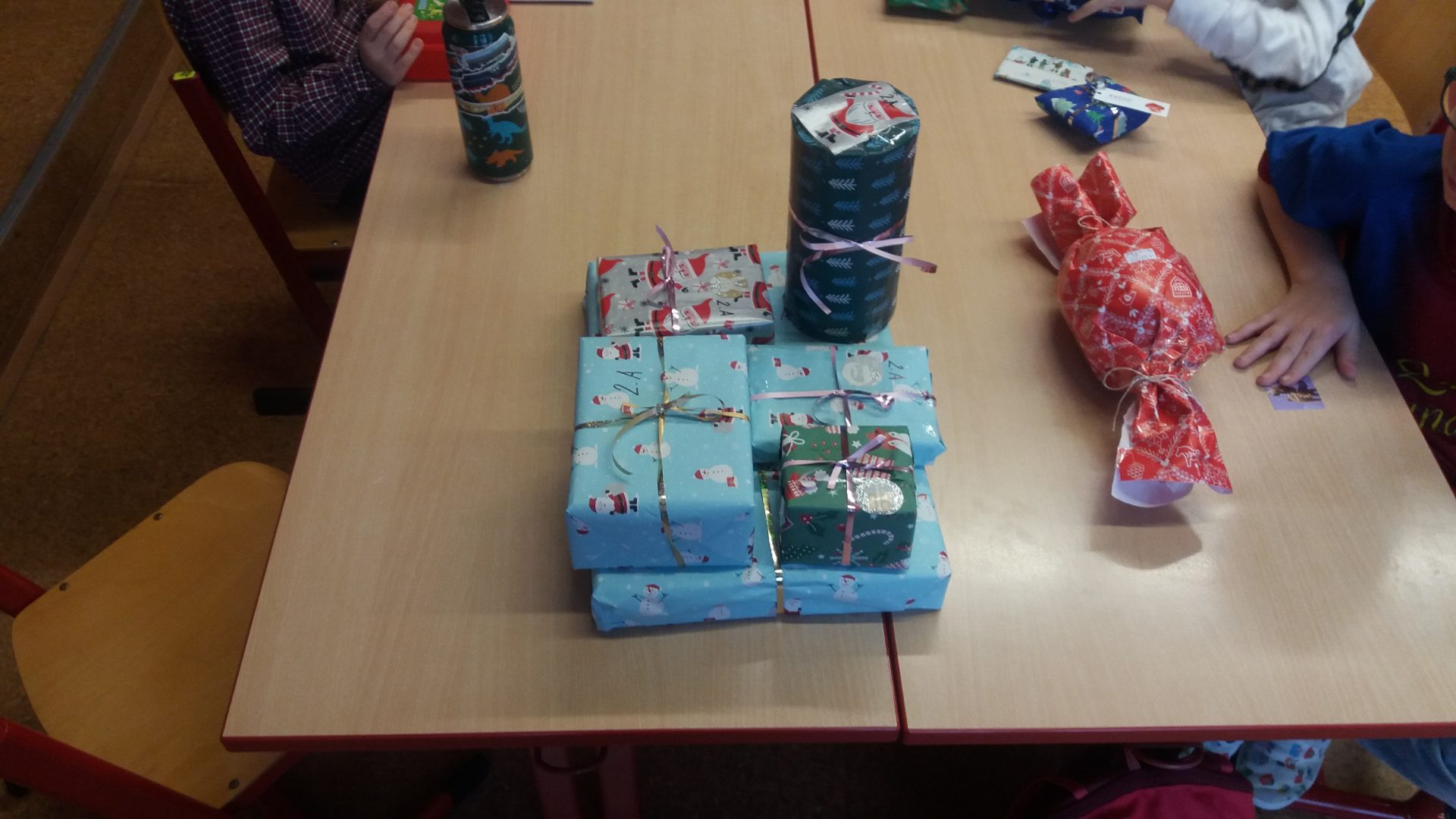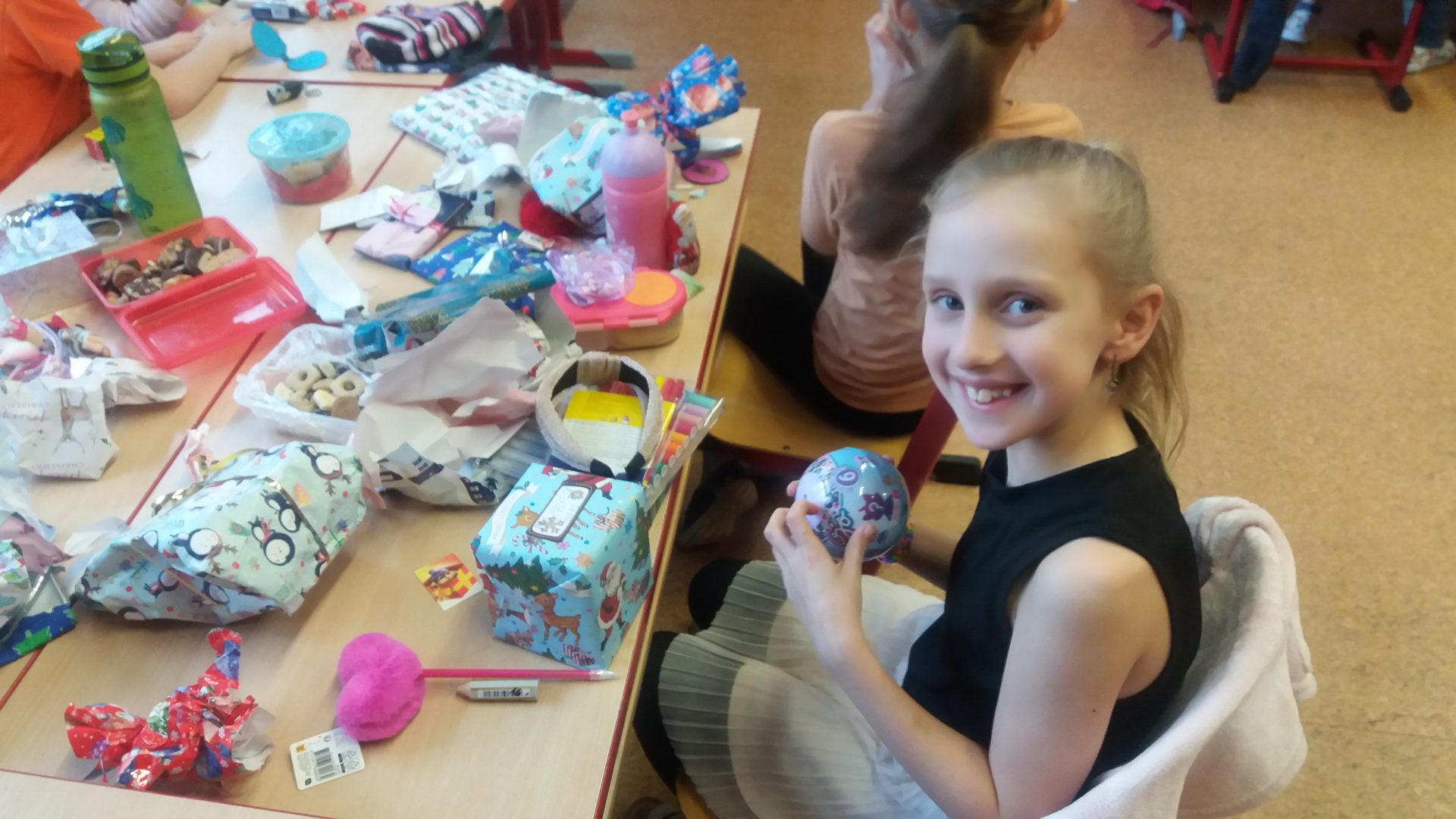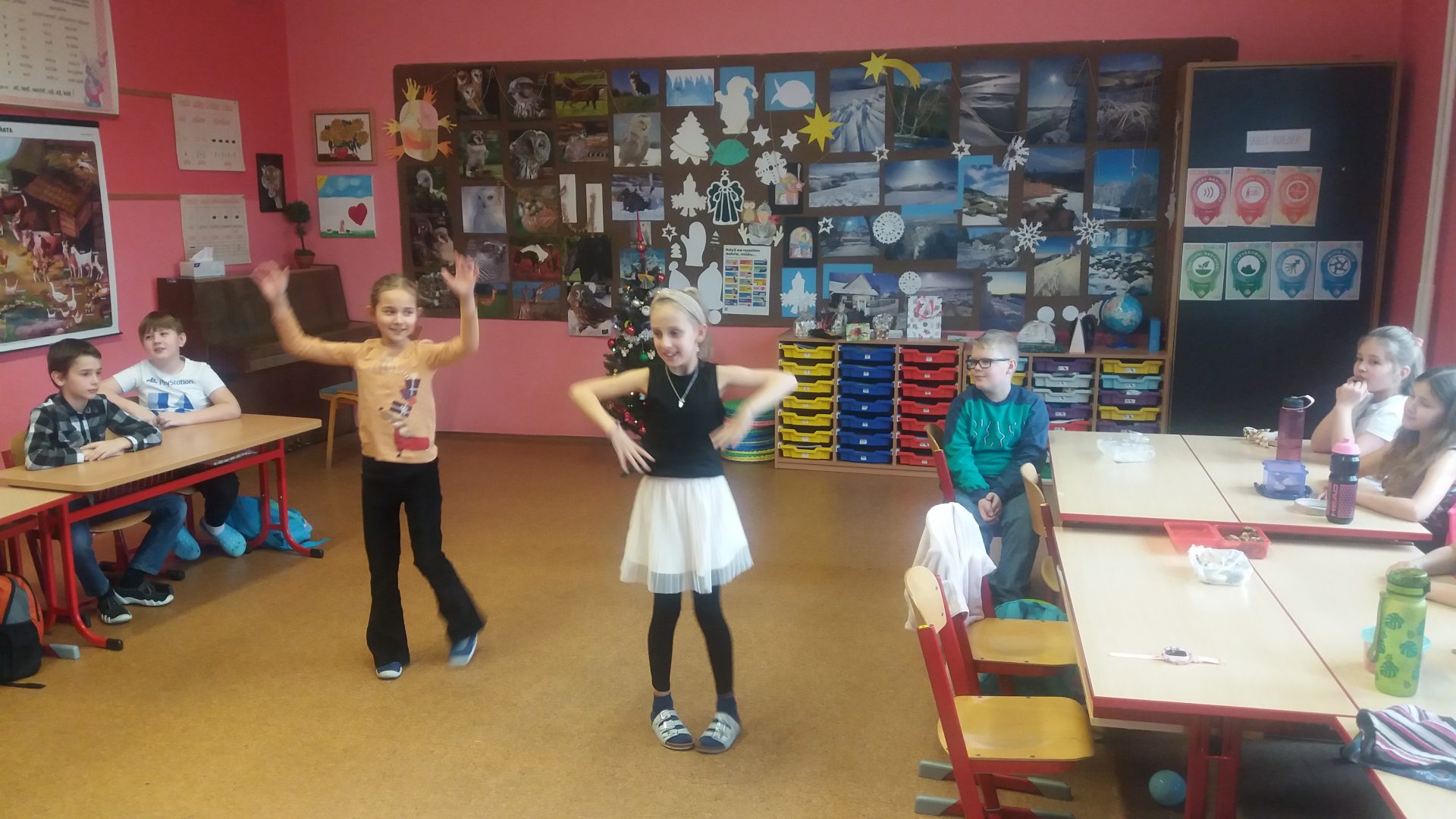 konečně přišla chvíle nadělování u stromečku v naší třídě. Nejdříve jsme otevřeli všechna zbývající okénka v adventním kalendáři, zazpívali si koledy a šli předávat dárky. Bylo jich hodně, asi jsme byli opravdu hodní. I paní učitelka byla moc překvapená a šťastná. To bylo radosti při rozbalování. Ježíšku děkujeme! Cukroví od maminek nám chutnalo a všechno jsme snědli. Některé děti si pro nás připravili vystoupení. Ani jsme nestihli všechny soutěže, čas uplynul velmi rychle a my museli před pohádkou ještě uklidit třídu.