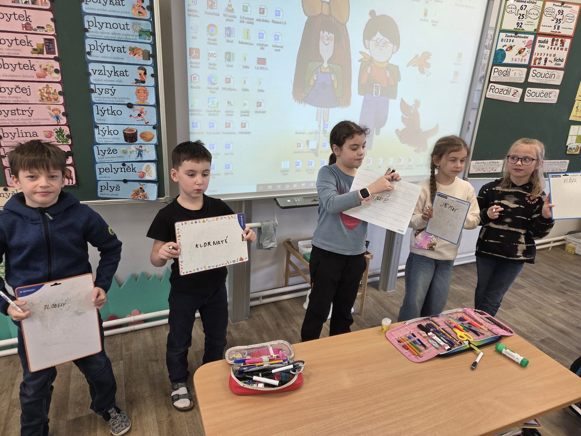 Začátek ledna jsme odstartovali královskou výzvou. Mít na hlavě celý den korunu nebyla žádná legrace, ale hravě jsme to zvládli 🙂 V lednu jsme toho stihli celkem dost – dvě sportovní dopoledne na Pekláku, seznámili jsme se s jednotkami délky a hmotnosti, podívali jsme se na zoubek koloběhu vody, zkusili jsme si ve třídě vyrobit déšť, opakovali jsme vyjmenovaná slova s novou deskovou hrou, připomněli si slovní druhy pomocí hry „Jedním slovem“, hodně toho spočítali a společně přečetli knížku o zloději kolečkových bruslí.