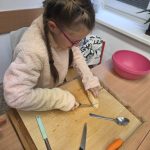 Kouzelné sluchátko vzalo děti ze 3. B do školní kuchyňky, kde díky vzájemné spolupráci vznikaly ty nejlepší „jednohubky“. Děti si organizovaly práci od nákupu surovin, přes postup, průběžný úklid pracoviště až po servírování úplně sami. Dokonce zvládli napsat i pracovní postup. Ochutnat jsme mohli celkem 5 pomazánek – vajíčkovou, avokádovou, sýrovou s česnekem, mrkvovou a tuňákovou.