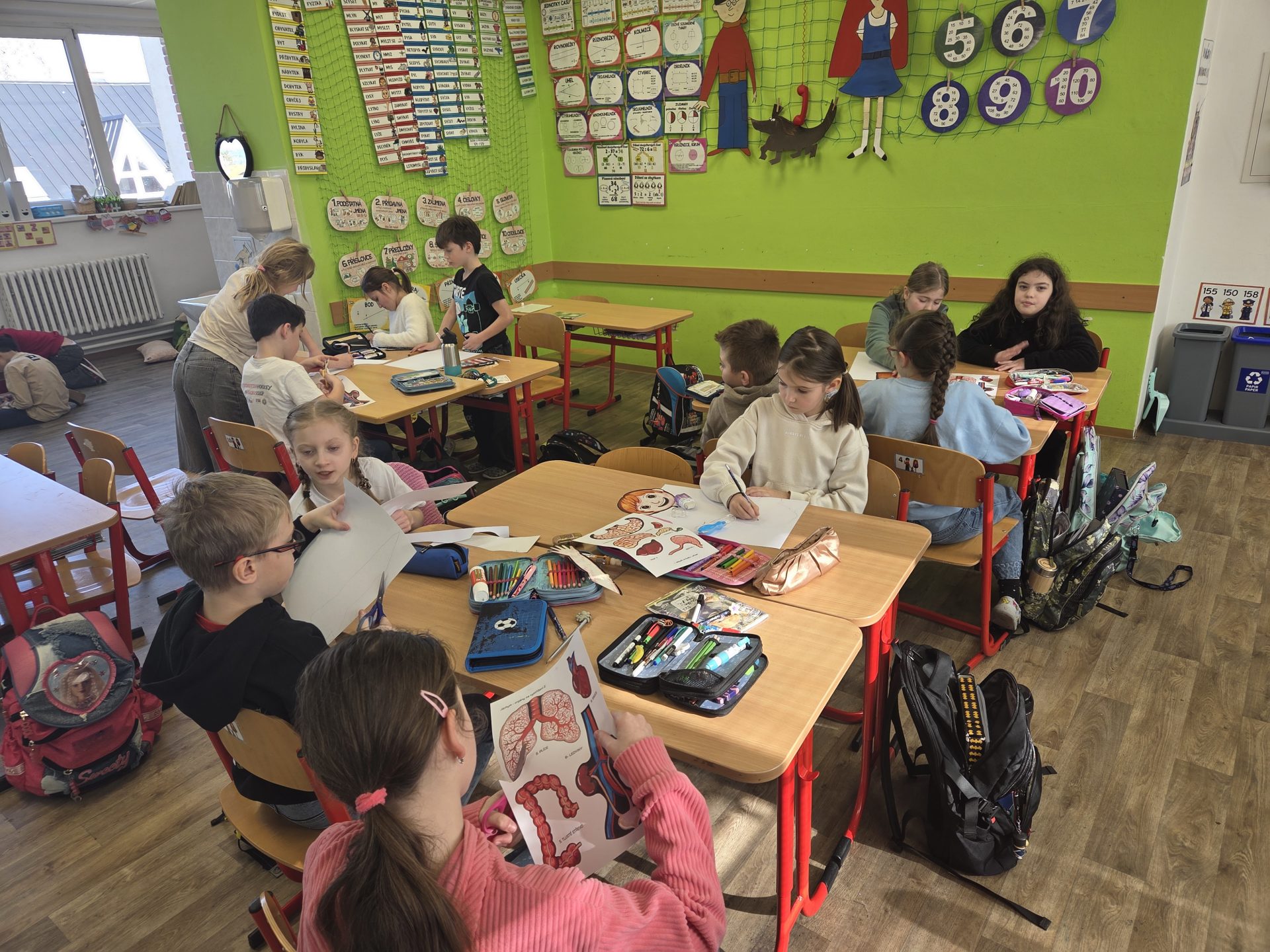 Únor ve 3. B utekl jako voda. Stihli jsme toho opravdu hodně. Využili jsme posledního sněhu a únorové tělocviky jsme strávili na bobech na bruslích. Na chvíli se z nás v Městské knihovně stali básníci na programu Básně z dásně nebo horolezci při preventivním programu Jsme tým. Hodně jsme malovali, stříhali, lepili a vyšívali, společně se v jídelně nasnídali, vesmírný lapbook vyrobili a papírového kamaráda vytvořili 🙂