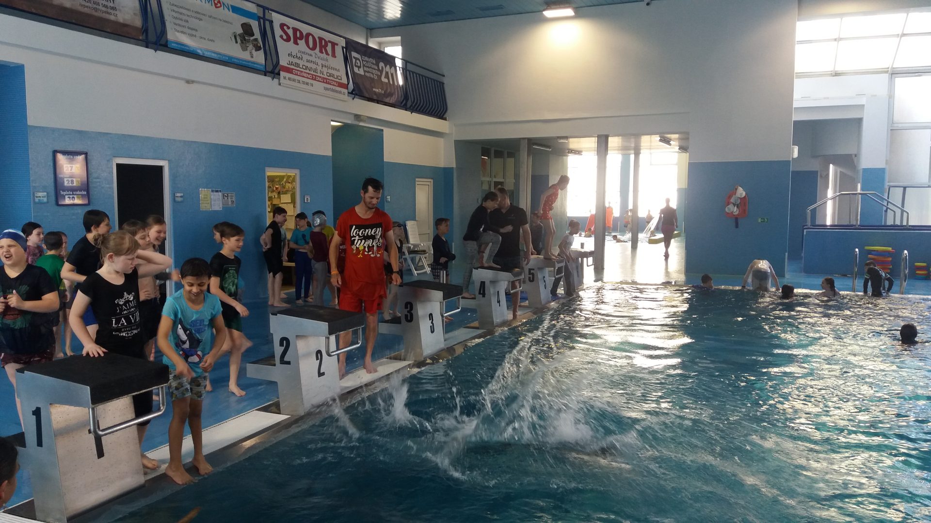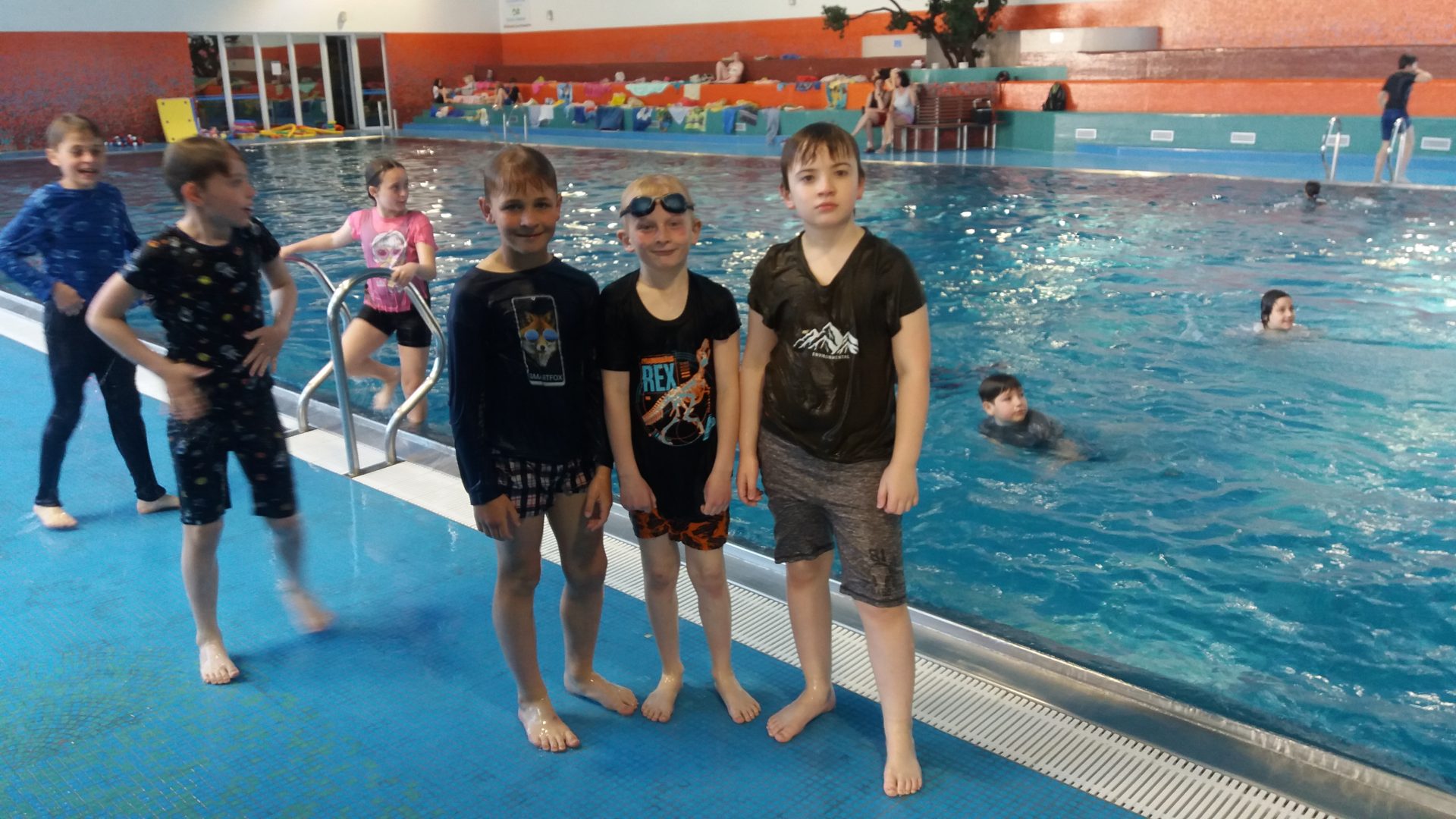 každý přece ví, že pyžamo je oblečení na spaní, ale my si ho vzali do vody v rámci plavání při nácviku pomoci tonoucímu. Cílem bylo si zkusit, jaké to je plavat v oblečení. I když jsme měli lehká pyžamka, všichni jsme pocítili, že je to zátěž a lépe se plave v plavkách. Při zachraňování člověka nebo zvířete či věci, je vždy lepší sundat si těžké oblečení a boty a tím se zbavit zátěže. Tyto nové poznatky jsou pro nás velmi důležité. V galerii se můžete podívat, jak nám to slušelo.