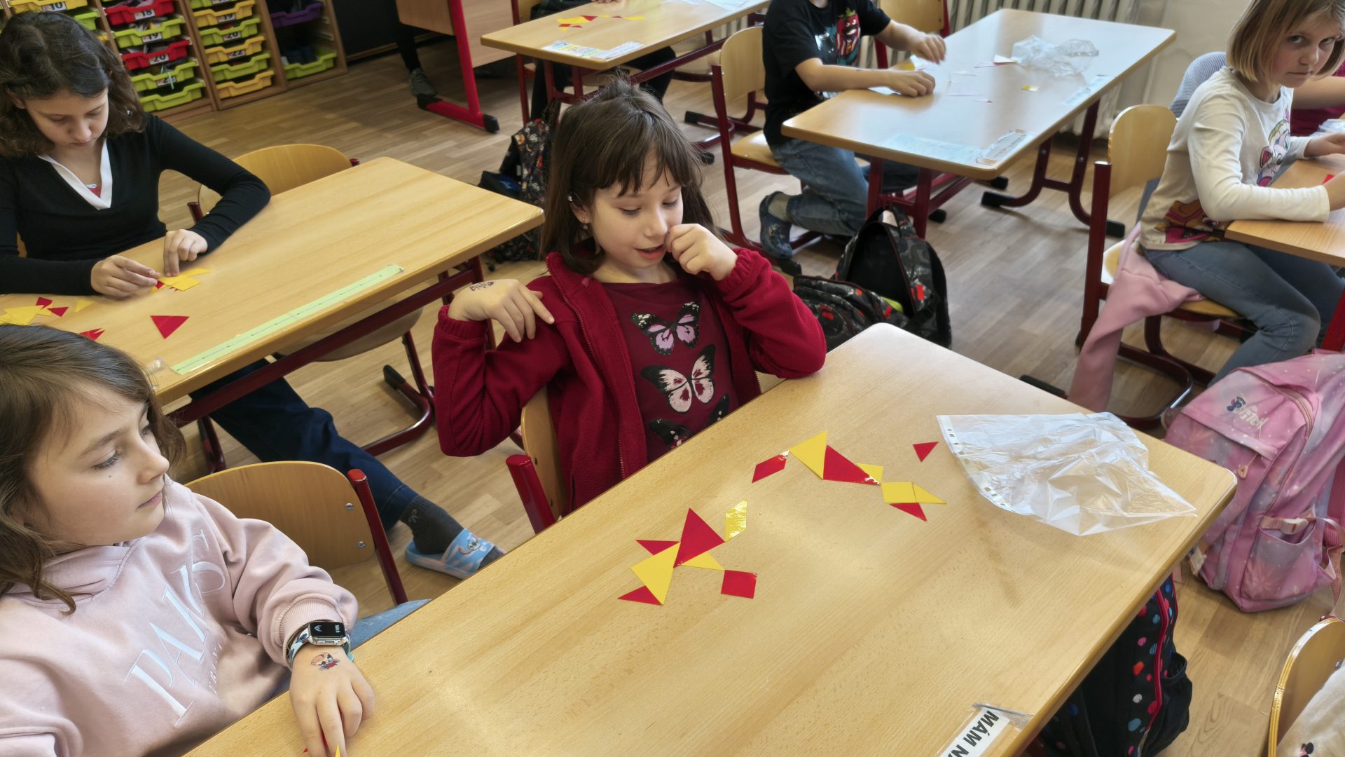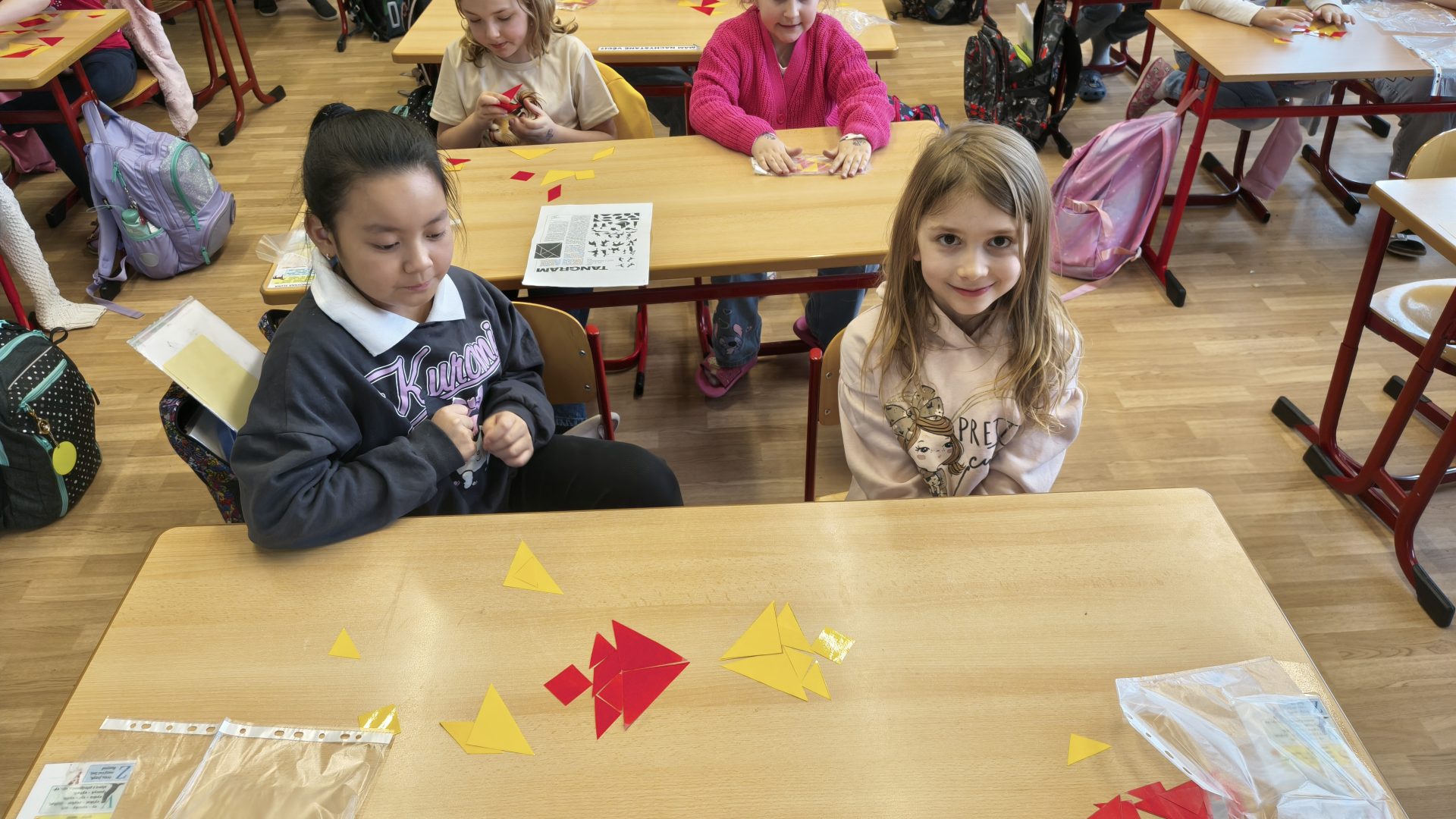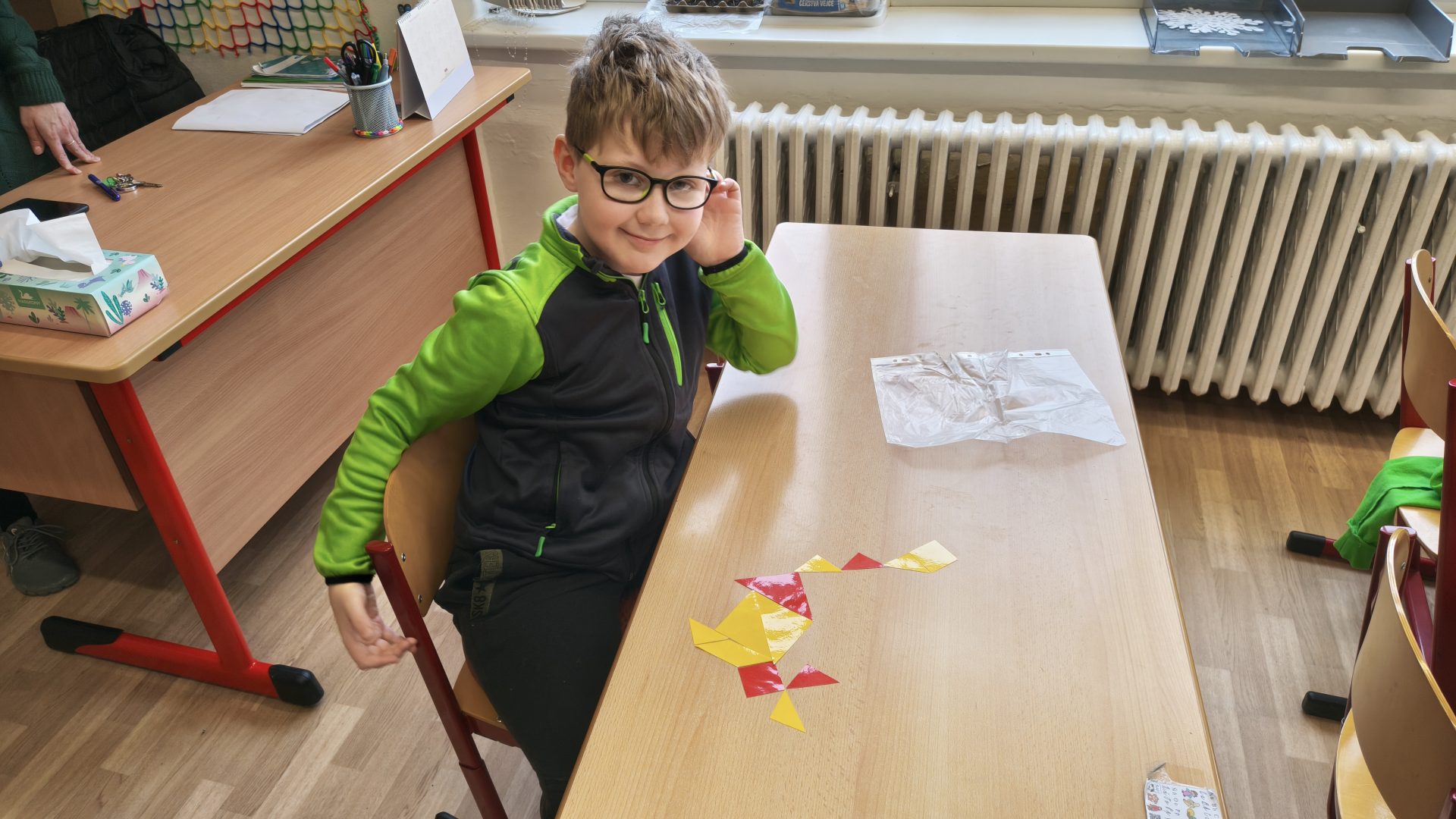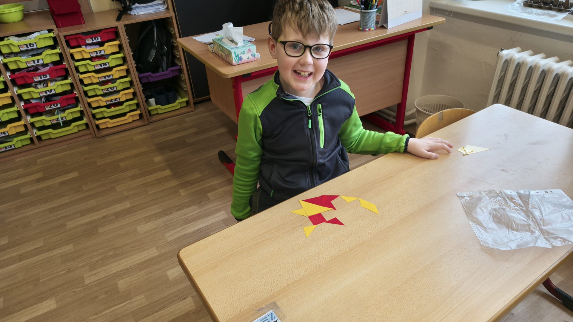 Tangram je hlavolam na principu puzzle složený ze sedmi destiček geometrických tvarů: pět trojúhelníků, jeden čtverec a jeden rovnoběžník, které společně vytvářejí základní čtverec. Kombinací těchto segmentů se skládají různé plošné obrazce: existuje minimálně 6500 možných variant.