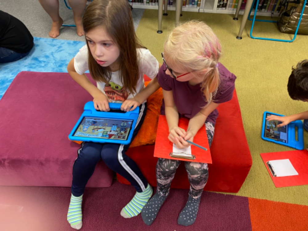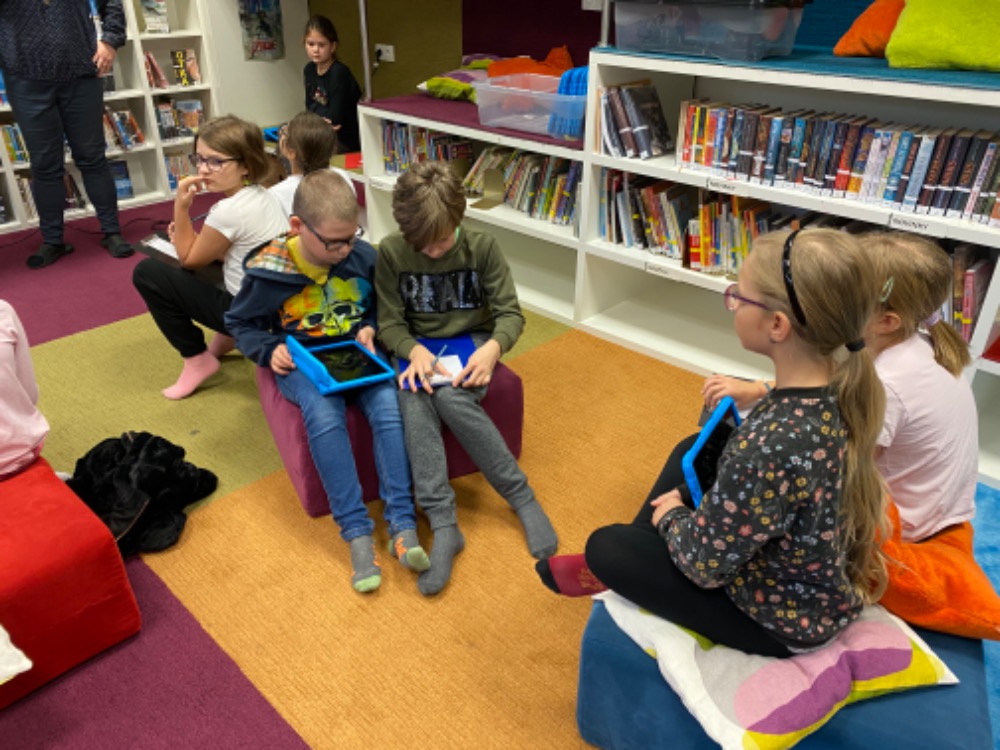 Dne 24.10. jsme navštívili vzdělávací program v Městské knihovně „Zachraň písaře!“.  Děti si vyzkoušely únikovou hru na motivy pověsti o Českotřebovském znaku. Na tabletu řešily úkoly vztahující se k České Třebové.