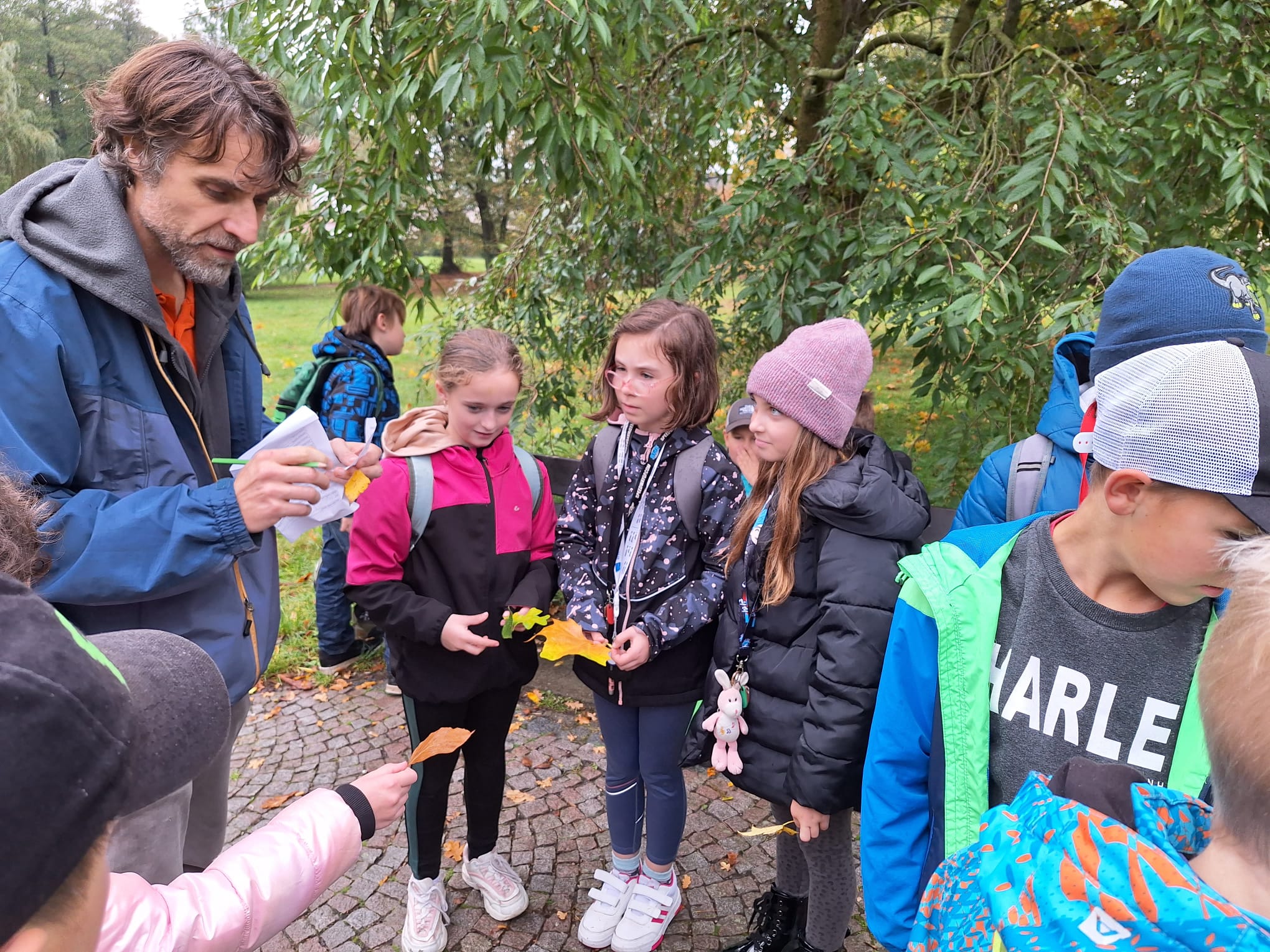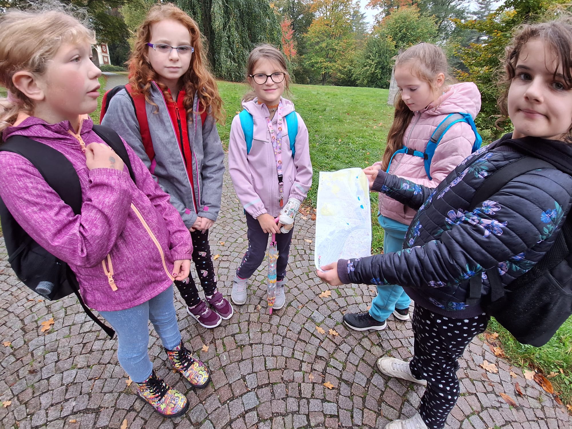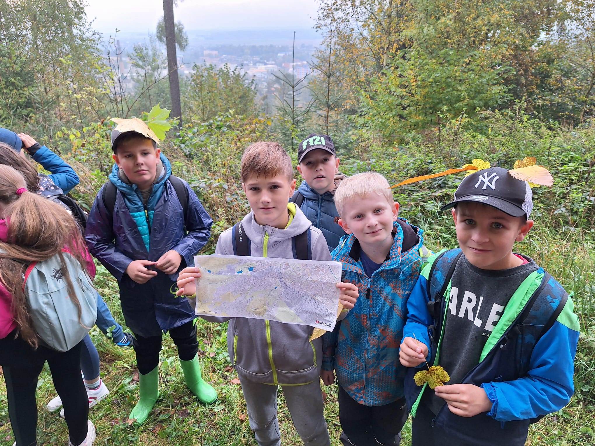 Dnes jsme se učili o přírodě v České Třebové trochu jinak. Zaměřili jsme se na krajinu a les. Ve škole jsme ještě trochu počítali. Porovnávali jsme výšku nejvyšších vrcholů v okolí České Třebové s vrcholem, který byl cílem naší vycházky – Robovým kopcem. Zorientovávali jsme se v mapách. Stihli jsme i krátký diktát, ve kterém jsme poslouchali a psali o tom, co se na takové podzimní lesní procházce v dešti může přihodit. Od výpravy do terénu nás neodradil ani nešťastný příběh z pracovního sešitu ani mírný déšť. Poznávání přírody naživo začalo už v parku Javorka, kde jsme poznávali listy různých listnatých stromů. Cestou na Robův kopec už jsme pozorovali i stromy jehličnaté – smrky, modříny a jedle bělokoré. Všimali jsme si ale i keřů a výtrusných rostlin. Našli jsme několik dřevokazných i jedlých hub. Nakonec jsme měli štěstí i na malého obojživelníka 🙂
