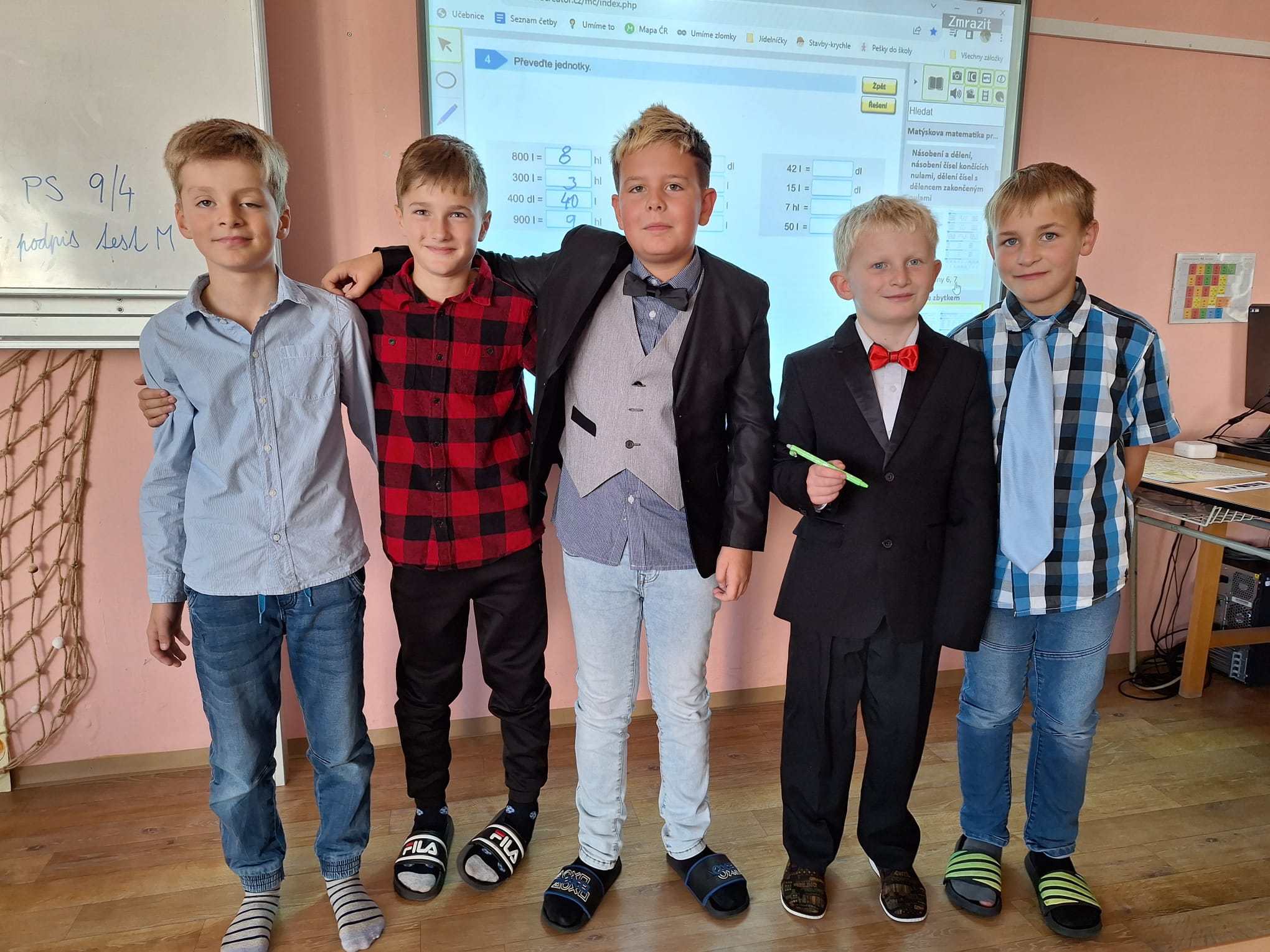 Hodně dětí z naší třídy se ve středu přidalo k celoškolní akci Suit up day. Byla to radost z elegance.