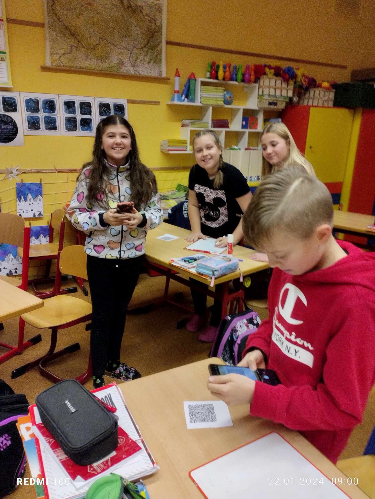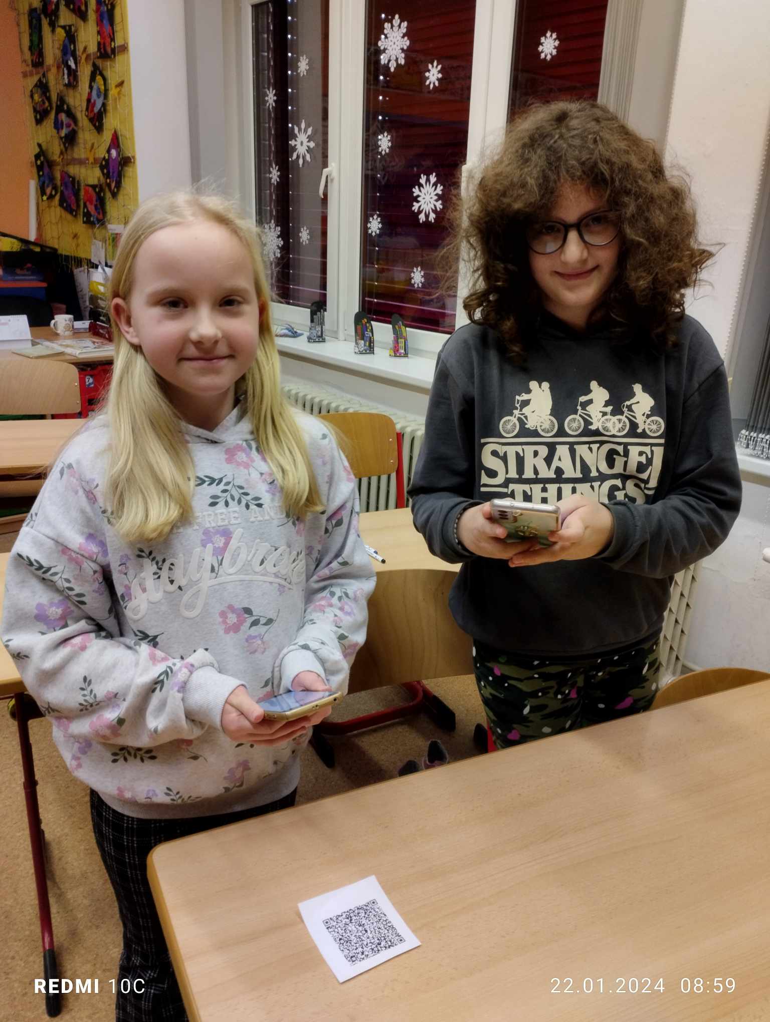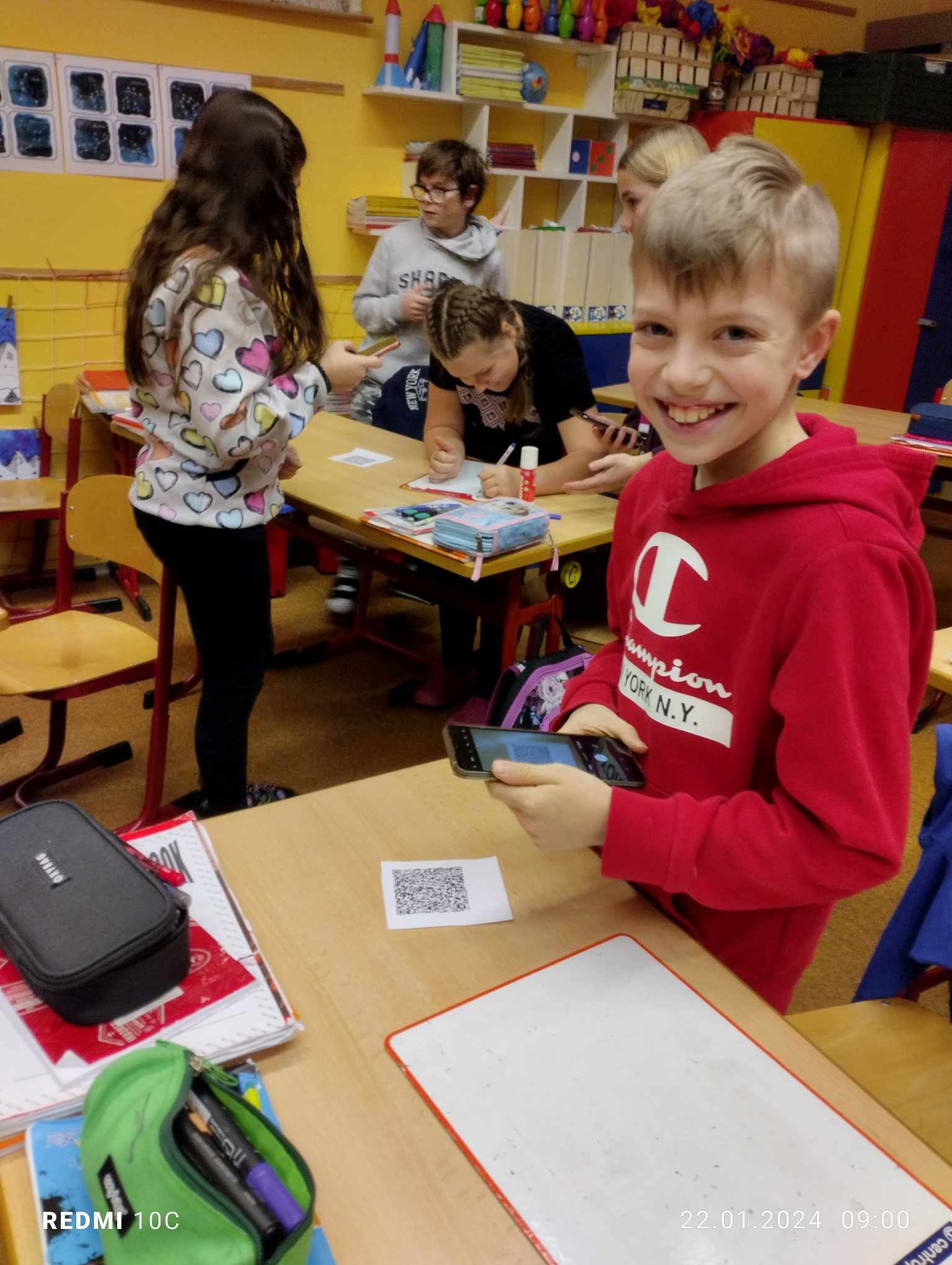 S tím, jak žáci stále více disponují chytrými mobilní telefony se objevuje možnost jejich využití ve výuce. Jednou z nejjednodušších cest je nasazení QR kódů. A jak fungují? Jakým způsobem je možné je použít v běžné výuce? K tomu, aby mohl být kód přečten je potřeba, aby měl uživatel mobilní telefon, který má softwarově ovládanou kameru a nainstalovanou čtečku. Kdo čtečku ve svém mobilu neměl nainstalovanou, připojil se ke školní wifi a čtečku si zdarma stáhl. Hned jsme se mohli pustit do plnění úkolů, který nám QR kód zadal.