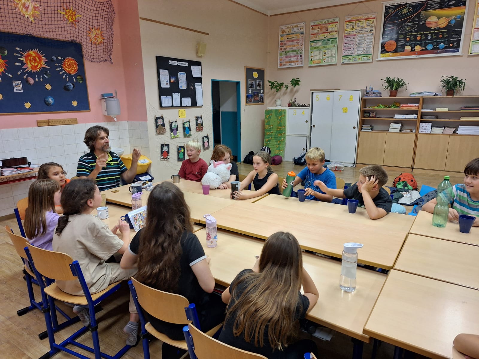 Letošní zahajovací třídní schůzky  pojali v 5.C trochu jinak. Táborák, prezentace informací rodičům spolu s dětmi, zpívání písniček, vyhodnocení soutěže o nejlepší prázdninový deník. Pro děti pak následoval večerní program s přespáváním ve škole. Nakonec snídaně jako sladká tečka 🙂