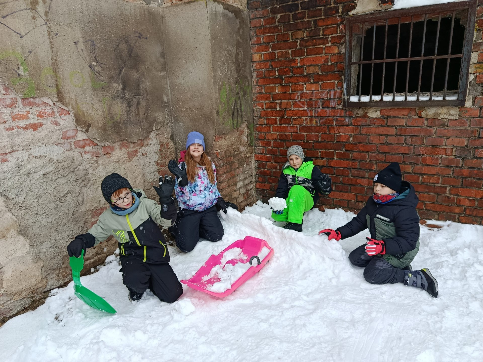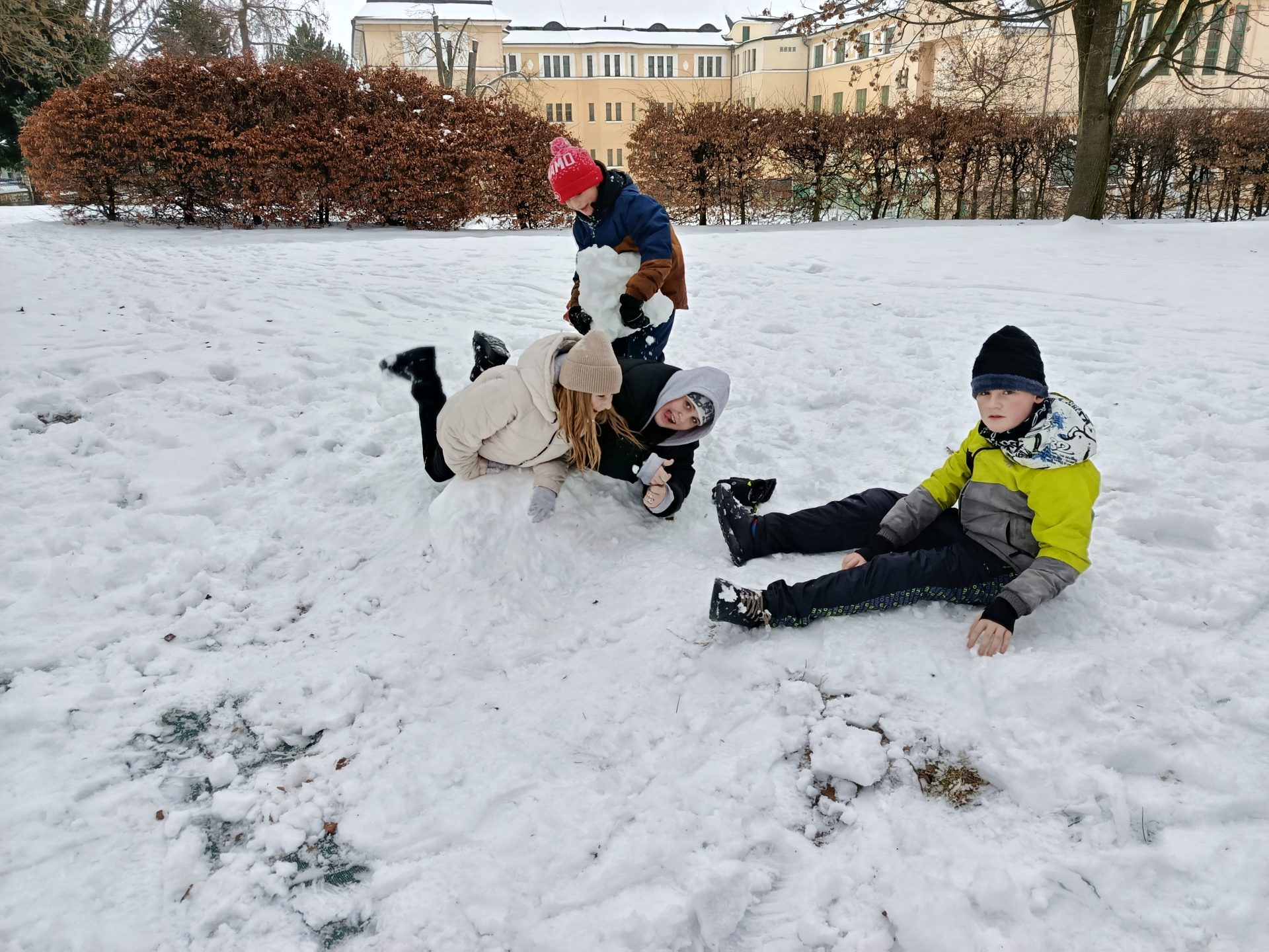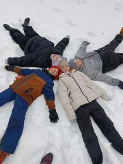 Také jsme postavili stavby nejrůznějšího druhu, dokonce jsme zhotovili i sněžné lože. Nezapomněli jsme se ve sněhu i vyválet a pro objektiv vytvořit i hvězdicovou mandalu. Jen ať nám sníh vydrží co nejdéle !