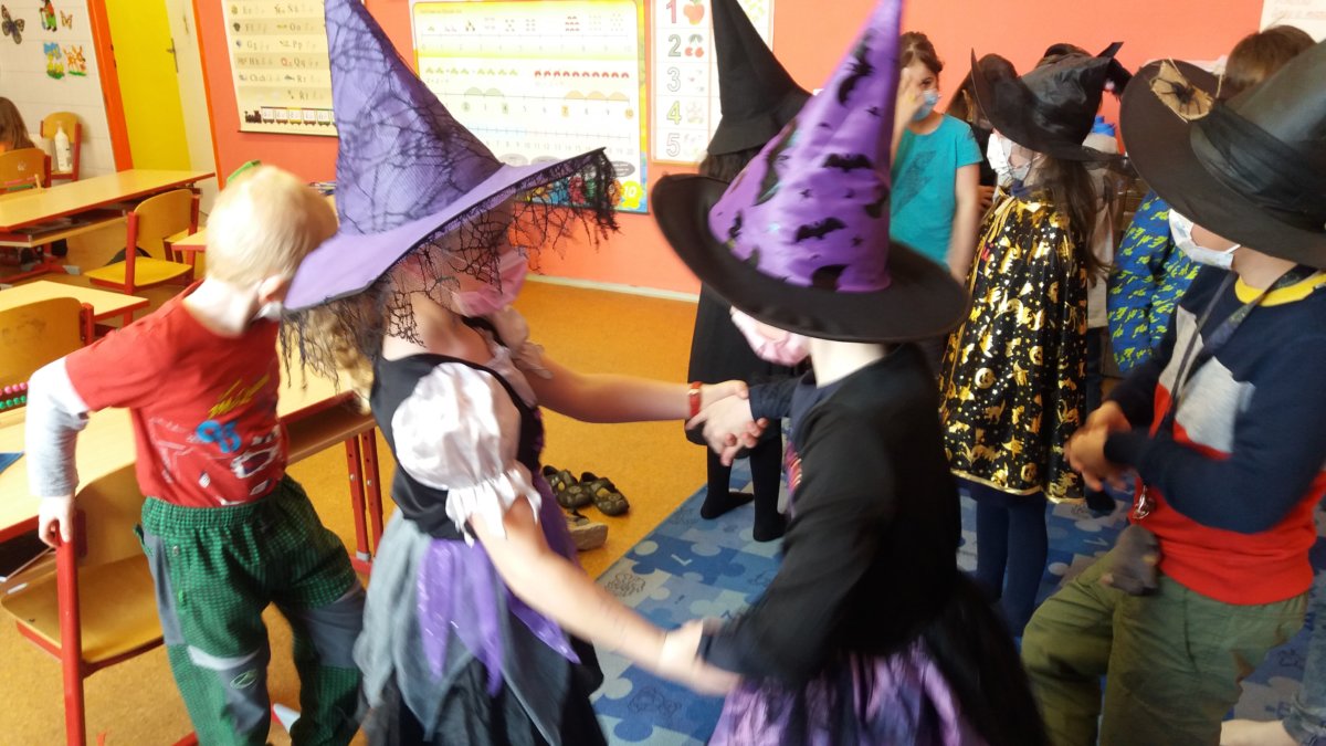 poslední dubnový den v rámci projektového vyučování jsme měli ve třídě vzácnou návštěvu. Přiletěla se na nás podívat čarodějnice Filoména a Harry Potter, Pověděli nám o kouzlech nadcházející filipojakubské noci. My jsme jim ukázali, jak umíme číst, počítat a nakreslili jsme pěkné čarodějnice pro jejich kamarádky. Během dopoledne jsme si užili hodně legrace. Paní Filoména neuměla hezky psát a chtěla nás proměnit na myši a žáby. Přivezla nám na koštěti něco k svačince – pečené červy, sušené brouky a smažené motýly. Docela nám to chutnalo, hlavní je, že je to bio a moc zdravé. Jsme rádi, že jsme si zase užili pěkný společný týden a máme i druhou matematickou královnu. Všichni se společně uvidíme až 10. května.