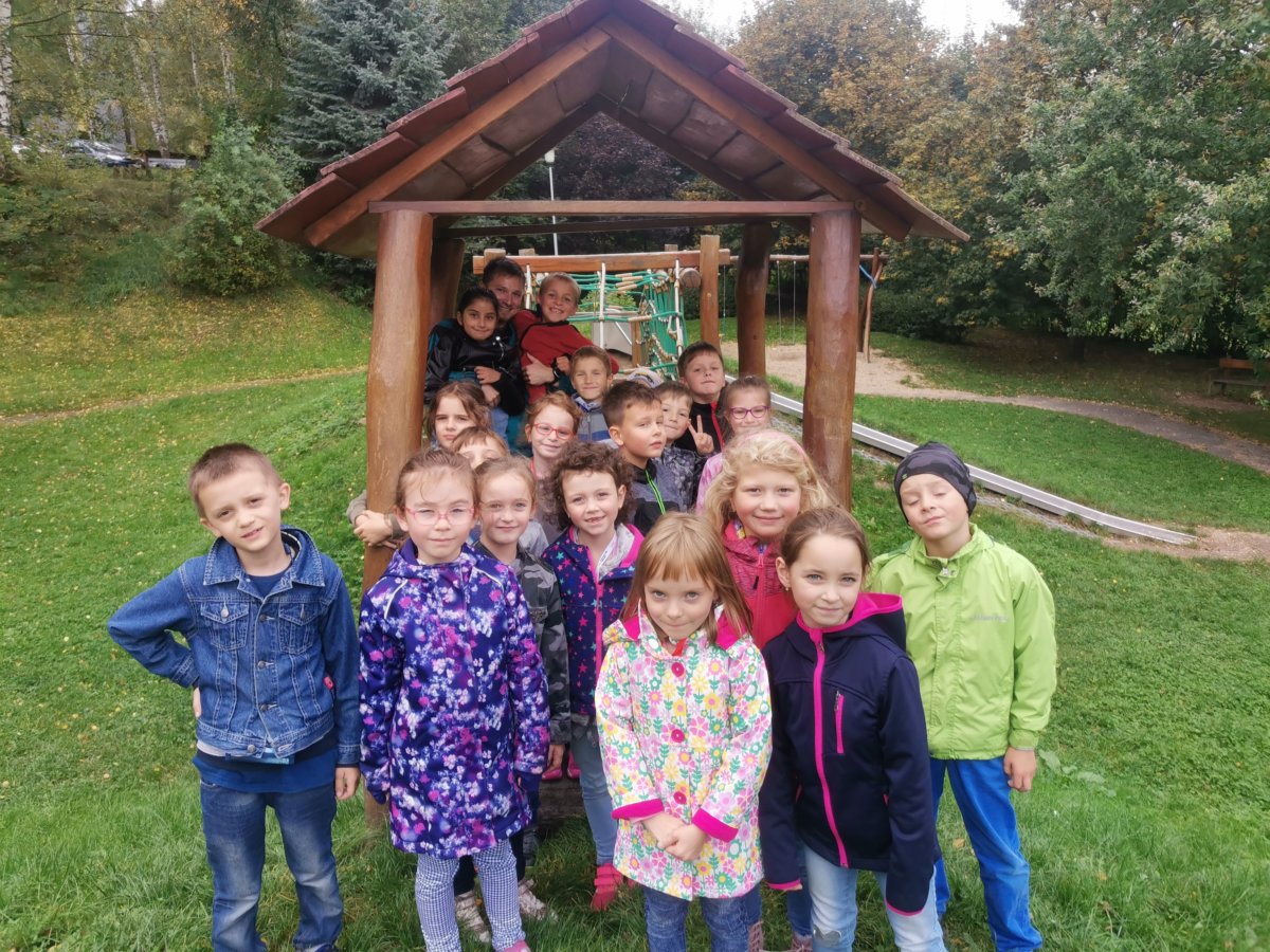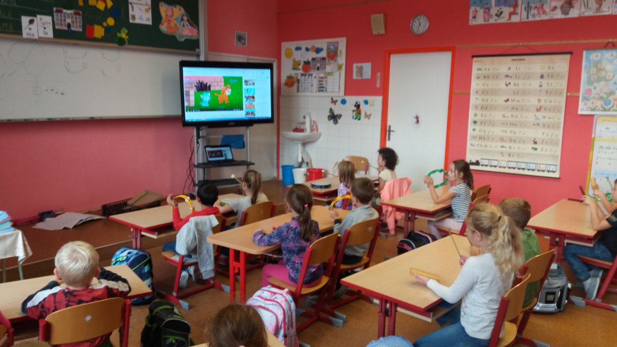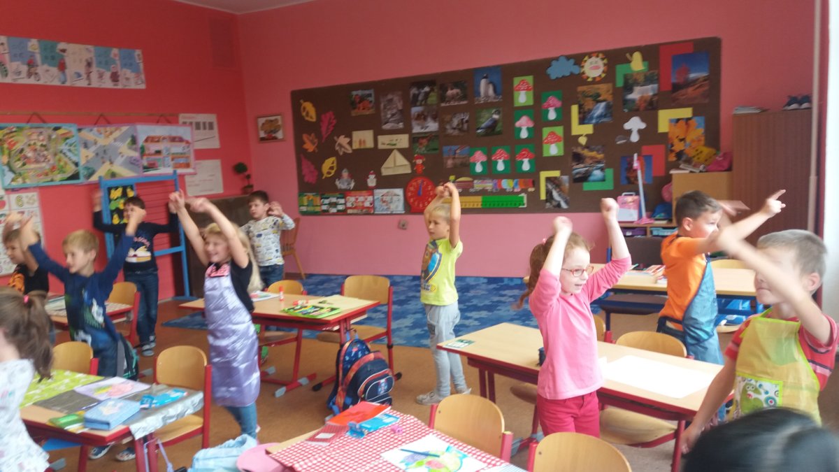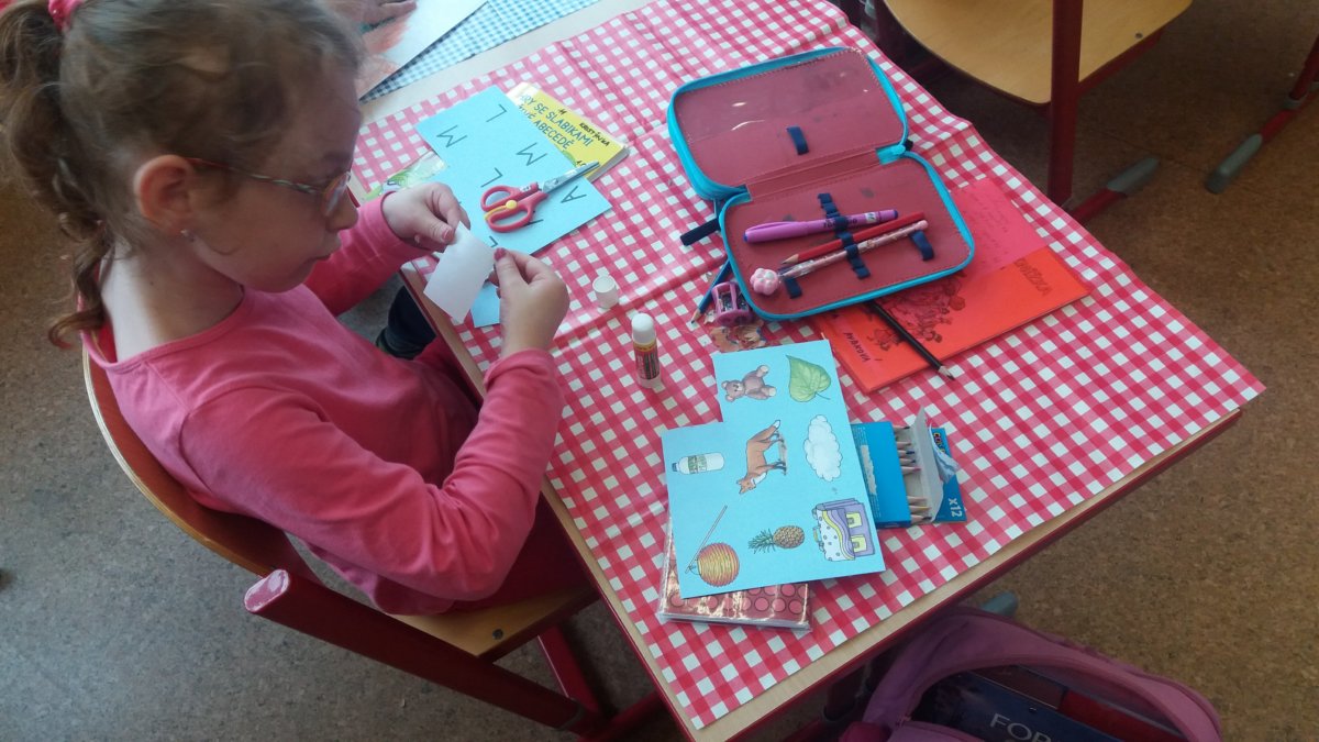 Místo do malé tělocvičny jsme na Tělesnou výchovu vyrazili do areálu Pod Jelenicí, kde jsme se pěkně protáhli a užili si hodně zábavy. Výsledek našeho prvního diktátu písmen byly samé jedničky. Abychom si nepletli písmenka, vystříhali jsme si kartičky s obrázky a slabikami. A na závěr jsme sklízeli ovoce, které jsme nakreslili na pěknou mísu.