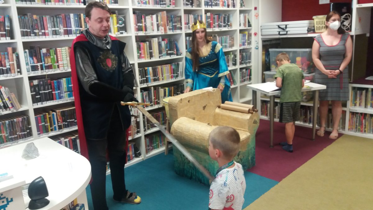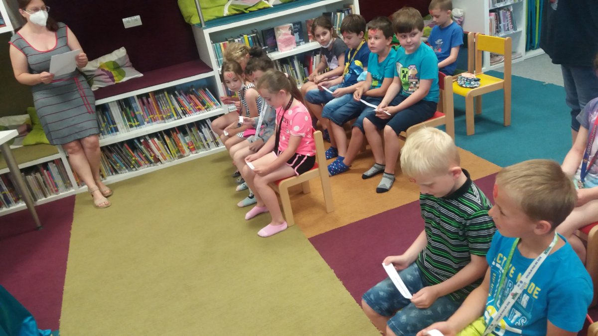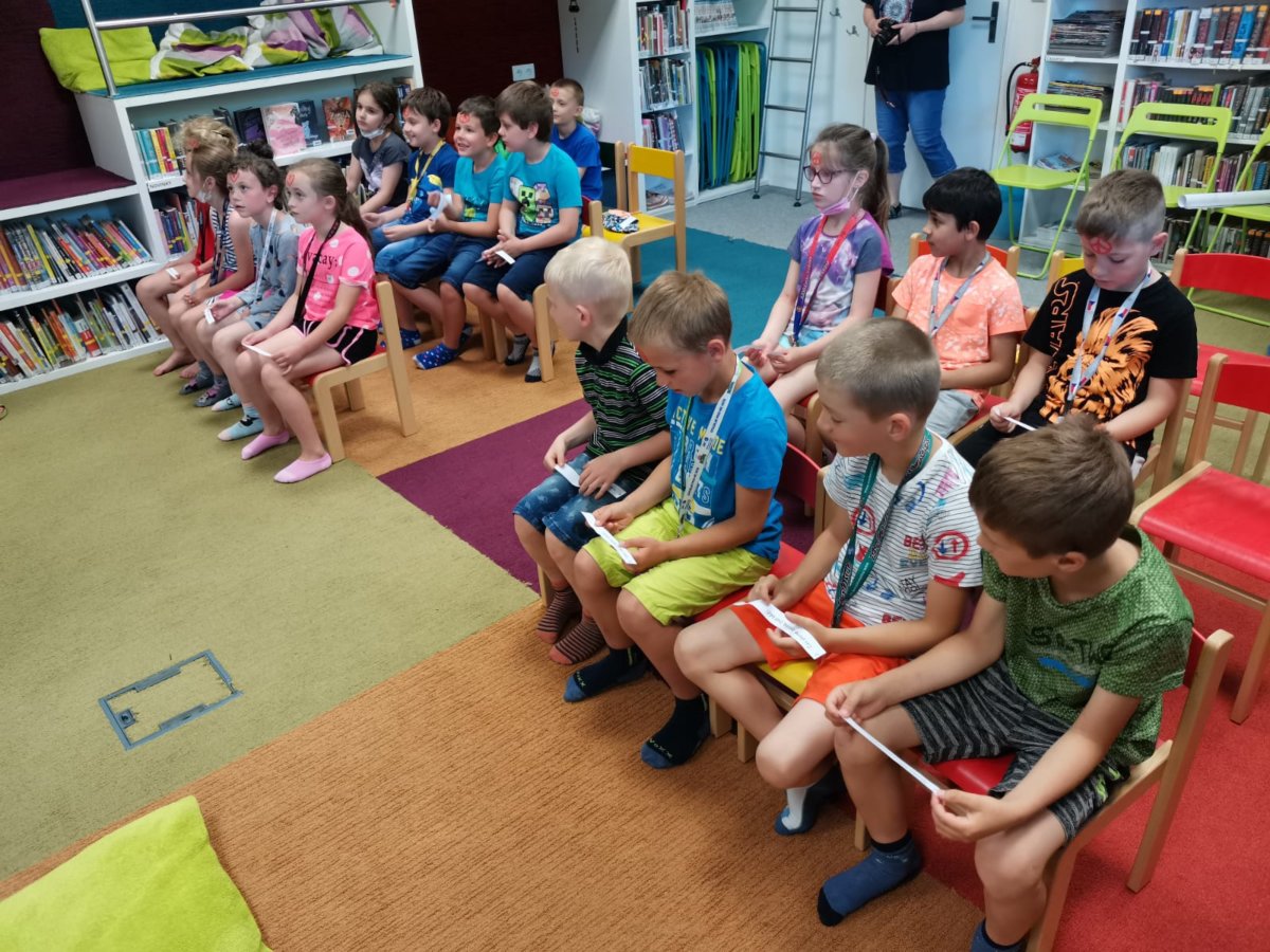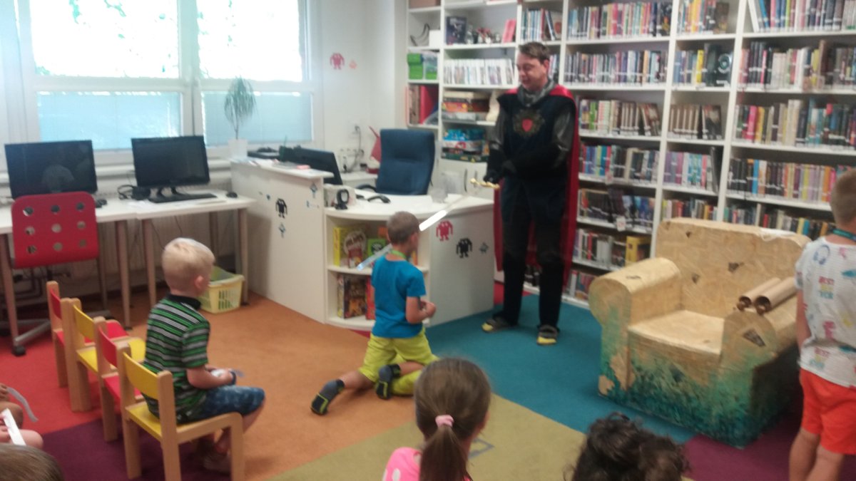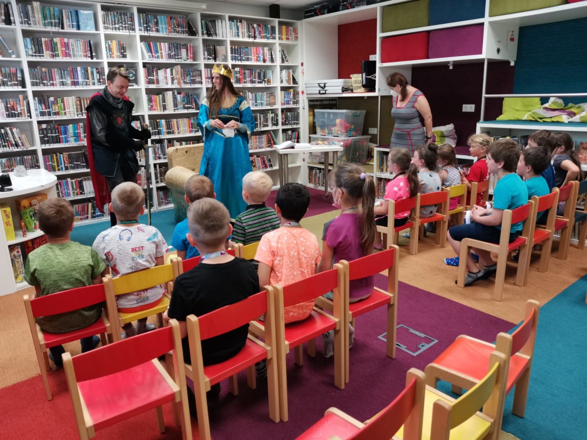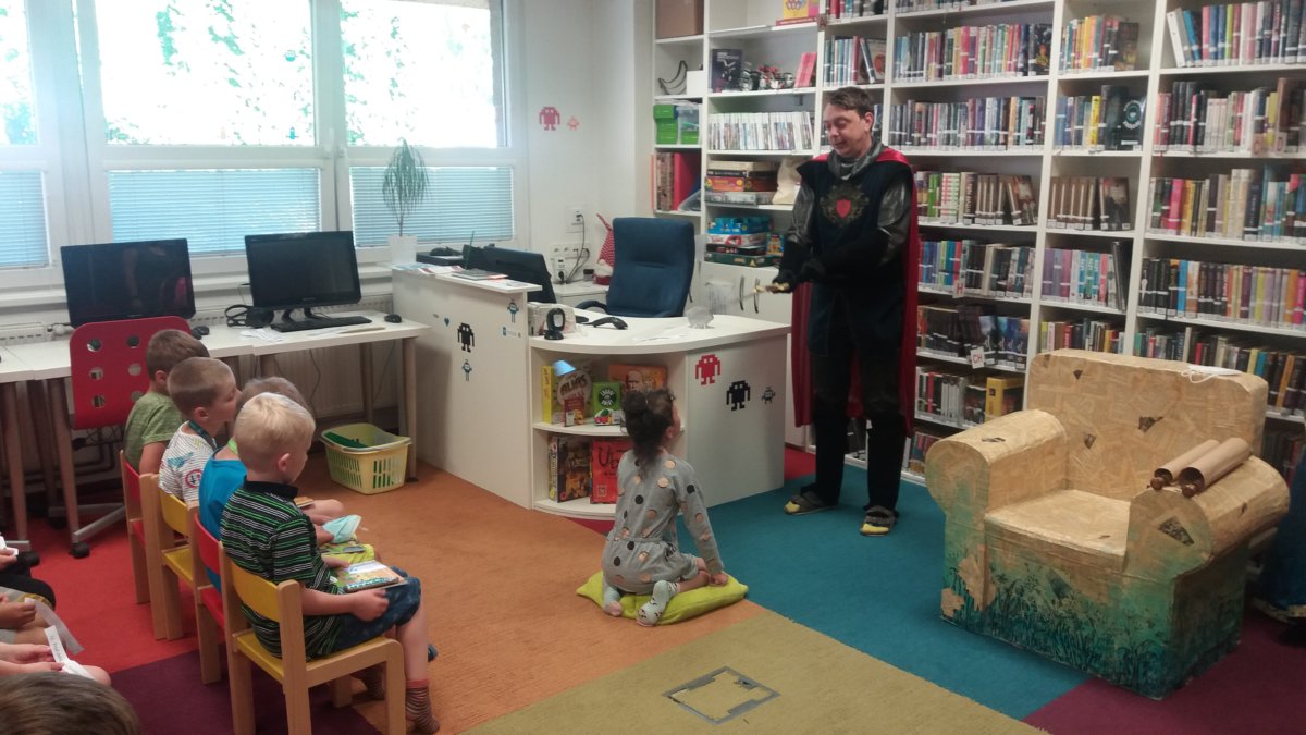 Také jsme se vrátili do knihovny na besedu se spisovatelem. Byla s ním velká legrace. Píše veselé knížky, které si někteří z nás objednáme. Vyrobili jsme si do knížky záložky myšky. Všichni jsme se těšili na obřad Pasování na čtenáře, kde jsme předvedli své čtení princezně Anně a jejímu rytíři. Všichni jsme uspěli a jsme přijati do království čtenářů. Za odměnu jsme dostali knížku a perníček. Knížku si přečteme o prázdninách a perníček už máme v bříšku…..