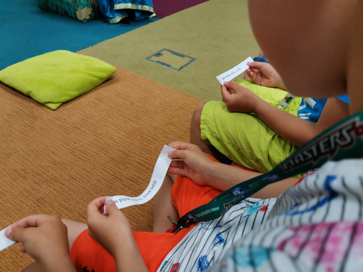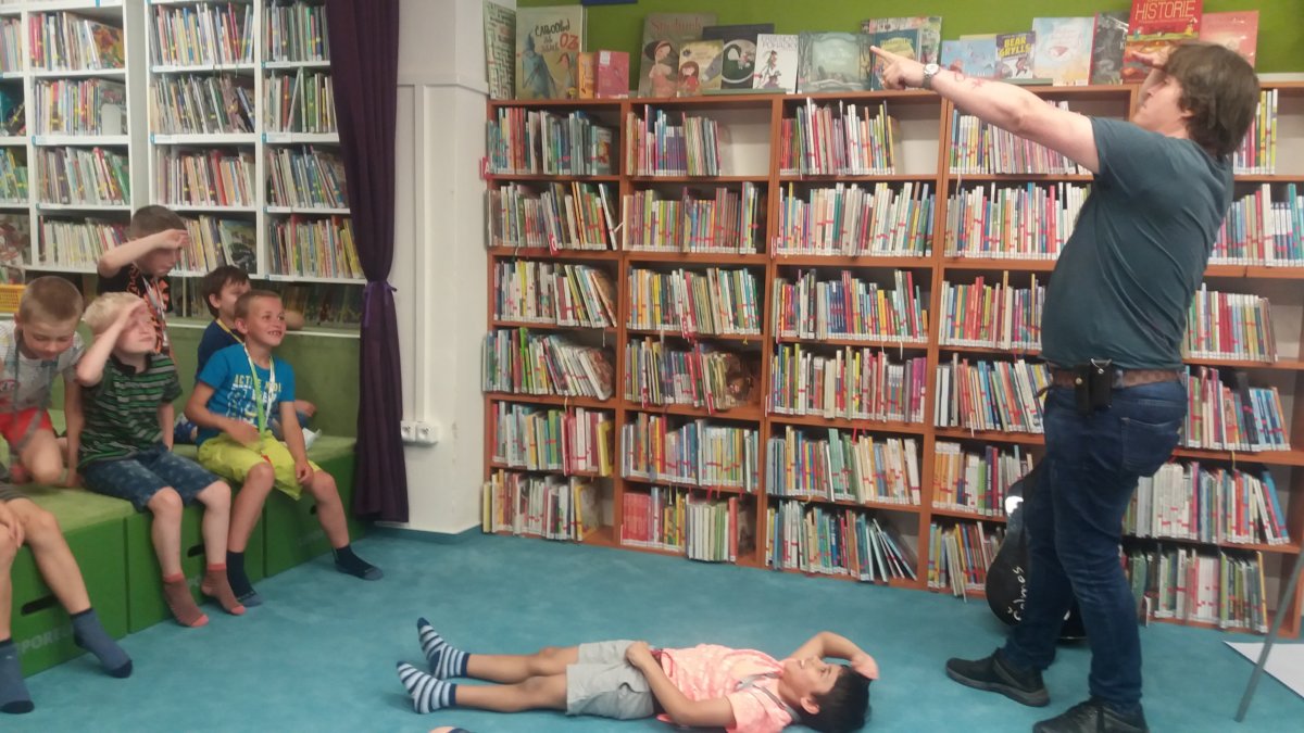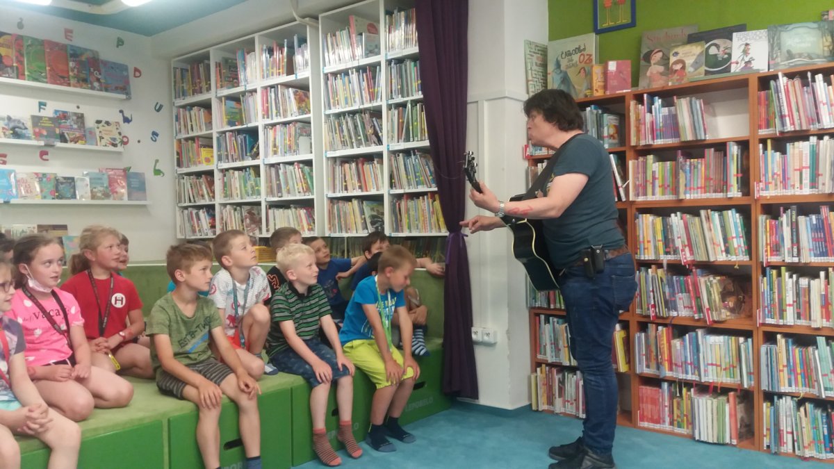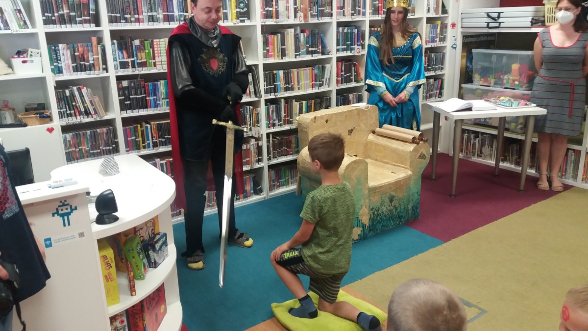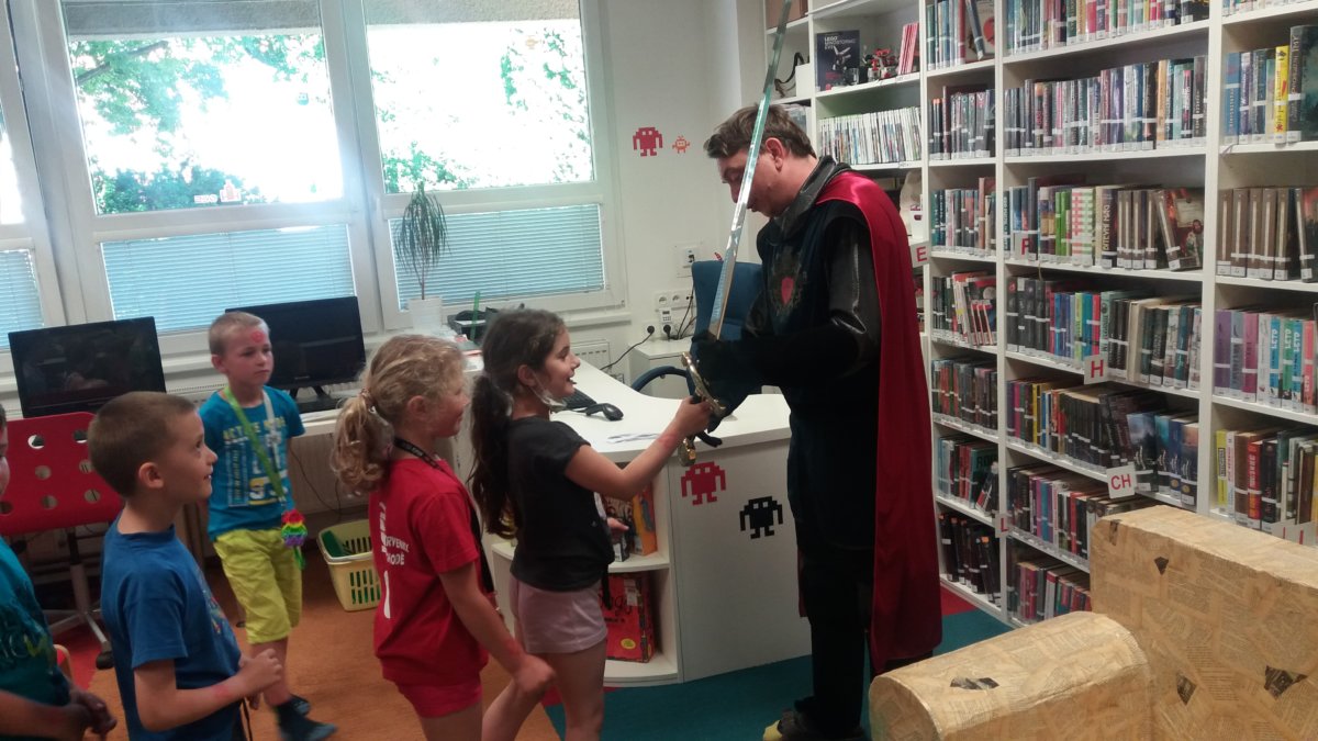 Také jsme se vrátili do knihovny na besedu se spisovatelem. Byla s ním velká legrace. Píše veselé knížky, které si někteří z nás objednáme. Vyrobili jsme si do knížky záložky myšky. Všichni jsme se těšili na obřad Pasování na čtenáře, kde jsme předvedli své čtení princezně Anně a jejímu rytíři. Všichni jsme uspěli a jsme přijati do království čtenářů. Za odměnu jsme dostali knížku a perníček. Knížku si přečteme o prázdninách a perníček už máme v bříšku…..