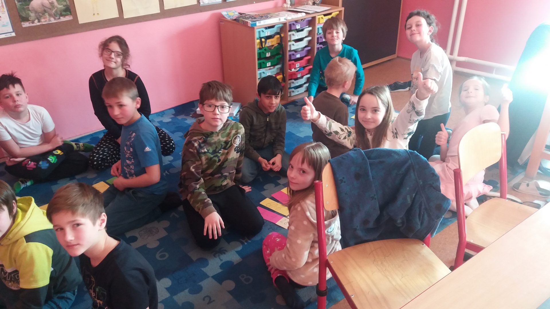 zdravíme vás a sdílíme s vámi naše tradiční páteční hry. Většinou se nám podaří do pátku zvládnout naplánované učivo, takže máme čas na hry a soutěže ve družstvech, které nás velmi baví. Soutěže jsou zaměřeny na  upevnění získaných znalostí. V galerii se můžete podívat na naši nástěnku s valentýnskými srdíčky, na soutěže na koberci a digitální výuku.