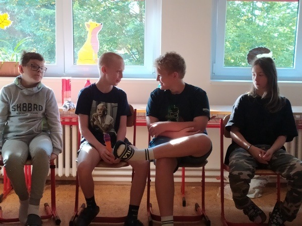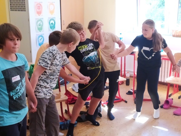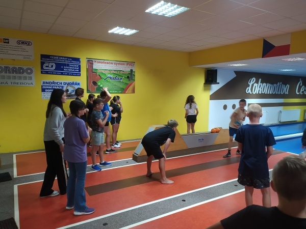 První den dopoledne se na tyto aktivity zaměřily pracovnice z Pedagogicko-psychologické poradny Ústí nad Orlicí. Vše probíhalo v uvolněné atmosféře a hry na seznámení děti bavily. Po obědě jsme vyrazili na kuželky. Zde jsme soupeřili proti sobě jak v jednotlivcích, tak i v týmech. Byly to dvě hezky strávené hodiny. Po návratu do školy měl každý na výběr, co bude chtít dělat. Někdo odešel do tělocvičny, další hráli stolní tenis nebo společenské hry a komu se nic nechtělo, tak si jen povídal se svým kamarádem. K večeři jsme si opekli špekáčky a večer jsme po dlouhém výběru zhlédli film. A pak už byl nejvyšší čas jít spát. Ve třídě jsme rozložili karimatky a spacáky a učitelé doufali, že děti brzo usnou …