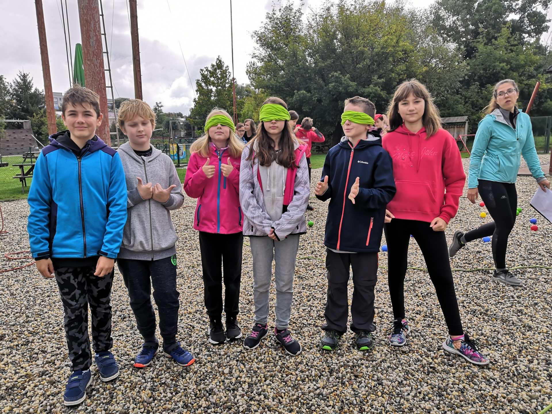 Zde jsme nejdříve plnili skupinové aktivity v rámci soutěží mezi jednotlivými družstvy. Poté jsme se již učili základy lezení, jištění a slaňování.