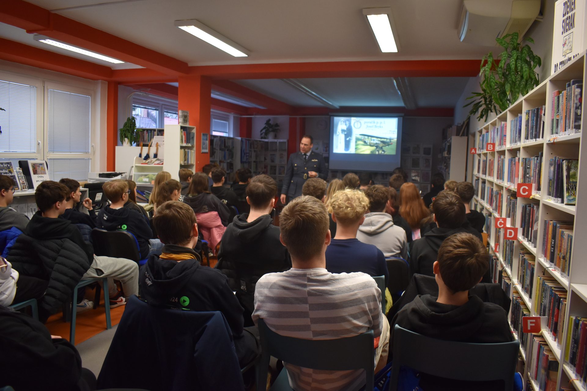 V českotřebovské knihovně se žáci 9. tříd zúčastnili přednášky o hrdinech letecké bitvy o Anglii v řadách britského Královského letectva (RAF).