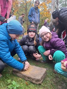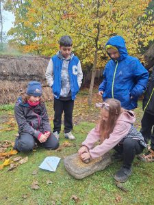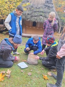 V pátek 17.10. se 4.C vypravila do Pravěké osady Křivolík. Začala tak její exkurze do pravěku, o kterém se učí v rámci tématického okruhu Lidé a čas. Je skvělé, že toto nejstarší období lidských dějin si měla možnost doslova osahat a zažít na vlastní kůži. Každému z dětí prošlo rukou velké množství pravěkých nástrojů z kamene, bronzu i železa. Děti měly možnost okusit námahu pravěkých zemědělců a zkusit si připravit z hrsti pšeničného zrna trochu mouky, ze které by se dal upéct chleba. To vše díky tomu, že v blízkém okolí našeho města vybudovalo několik nadšenců do historie a archeologie ze spolku Bacrie, v čele s Davidem Maršálkem, experimentálně archeologické centrum.