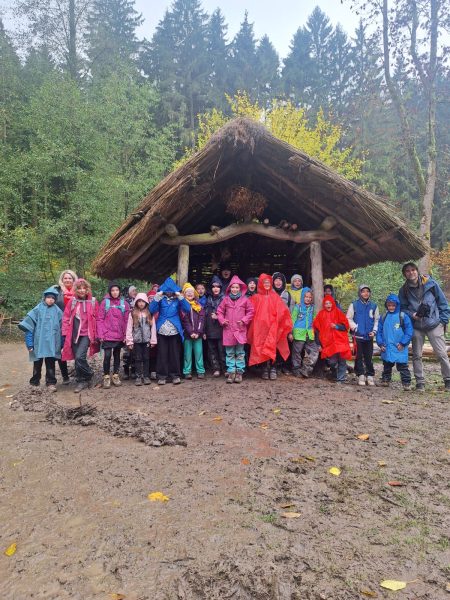 V pátek 17.10. se 4.C vypravila do Pravěké osady Křivolík. Začala tak její exkurze do pravěku, o kterém se učí v rámci tématického okruhu Lidé a čas. Je skvělé, že toto nejstarší období lidských dějin si měla možnost doslova osahat a zažít na vlastní kůži. Každému z dětí prošlo rukou velké množství pravěkých nástrojů z kamene, bronzu i železa. Děti měly možnost okusit námahu pravěkých zemědělců a zkusit si připravit z hrsti pšeničného zrna trochu mouky, ze které by se dal upéct chleba. To vše díky tomu, že v blízkém okolí našeho města vybudovalo několik nadšenců do historie a archeologie ze spolku Bacrie, v čele s Davidem Maršálkem, experimentálně archeologické centrum.