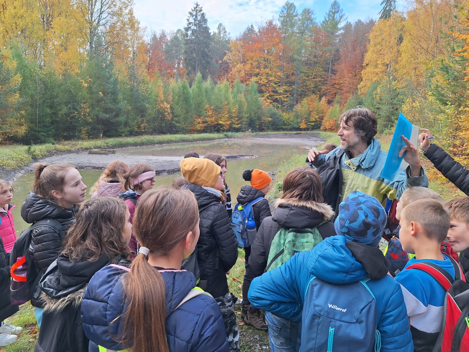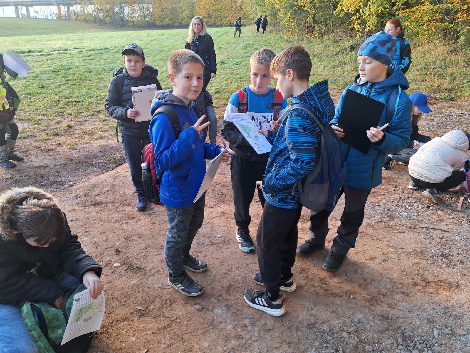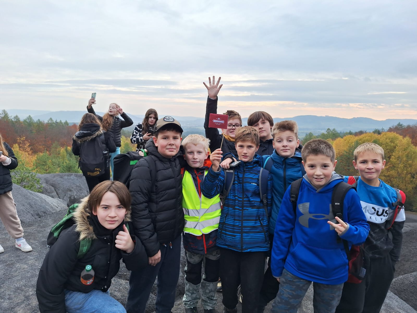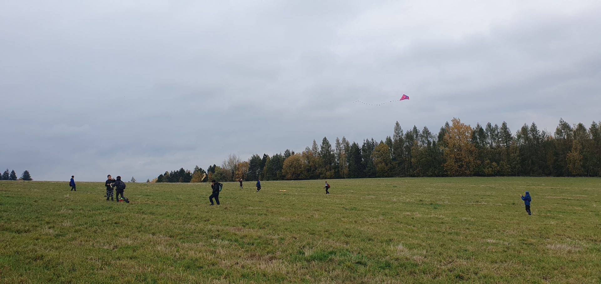 Jako američtí astronauti Neil Armstrong a Edwin Aldrin si chvíli připadaly děti z 5.B a 5.C, když zdolávaly výstup do prostoru bývalých dolů na Hřebči. Jejich dobrodružství bylo součástí exkurze po Hřebečských důlních stezkách a k prameni Třebovky. Vedle seznámení se s pramenem řeky protékajícím našim městem a přírodním bohatstvím Hřebečovského lesa spolu s tamní historií důlní těžby, byla pro mnohé největším zážitkem právě procházka Měsíční krajinou s krásným výhledem na Moravskou Třebovou. Na památku své výpravy zde páťáci zanechali vlaječku naší školy, se kterou se ještě před tím stihli vyfotit. V blízkosti pramene Třebovky zbyla i krátká chvilka na pouštění draků nebo stavění lesních domečků.